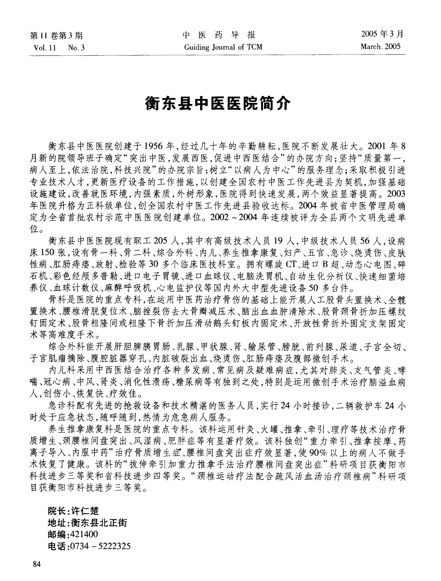 ··合临床年月第卷第江西省九江市中医医院简介有先进的设备有;四层螺旋日本电子胃肠镜、西门子光机美国进机、进血球仪机、全自动生化分析仪、全自动血凝仪、骨密度测定仪尿、粪沉渣仪多功能三维牵引床多功能监护仪椎问盘镜气化电切刀腹腔镜和自制的太空熏蒸器等人型医疗设备医院管理实现计算机网络化全院医疗设备固定资产多万元。多年来医院始终坚持科学发展观不断深化医院改革使医院整体发展驶快车道。充分突出中西医结合特色以肾病科为龙头骨伤科、肛肠科、糖尿病等重点专科优势口益明显专科建设呈现欣欣向荣的局面形成了“大专科大综合强综合”的医疗格局。微创外科是医院一支新兴全国优秀医院院长周泽甫主任医师生力军;泌尿外科、心胸外科、矫形外科百花齐放从同种异九江市中医医院创建于年位于九江市中心风景体肾移植到动静脉造医瘘、从断肢再植到肺叶切除、从食道秀丽的南门湖畔。医院占地面积余亩建筑面积万多平癌的根治到肿瘤的体内粒子植入治疗;中药薰蒸治疗中心治方米医院环境幽雅宁静是一所集医疗、预防、康复、科研、病健身作用明显;“椎间盘超市”多渠道多方面解决病人痛教学为一体的现代化综合性中医医院、中西医结合医院