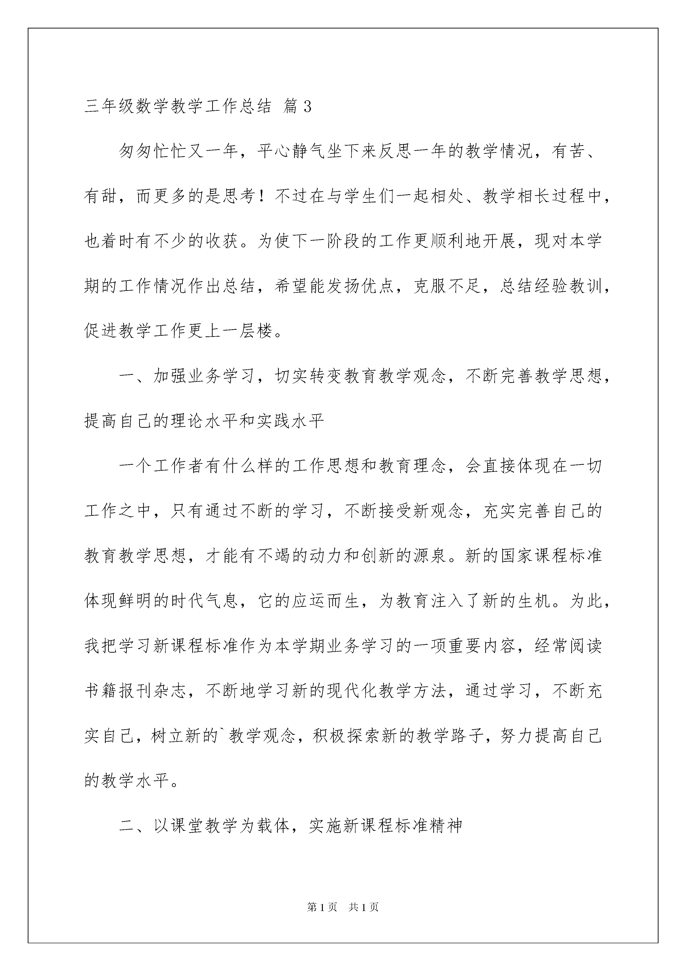 2022实用的三年级数学教学工作总结范文合集5篇实用的三年级数学教学工作总结范文合集5篇总结是对过去一定时期的工作、学习或思想情况进行回顾、分析,并做出客观评价的书面材料,它可以给我们下一阶段的学习和工作生活做指导,不如我们来制定一份总结吧。你想知道总结怎么写吗?以下是我为大家整理的三年级数学教学工作总结5篇,供大家参考借鉴,希望可以帮助到有需要的朋