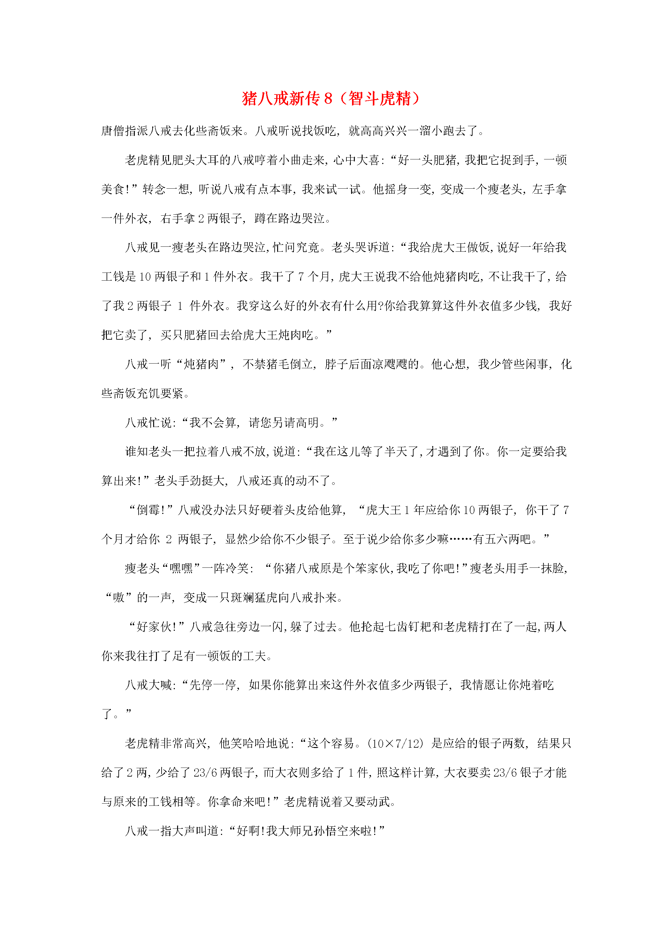 小学数学数学故事猪八戒新传8智斗虎精.doc