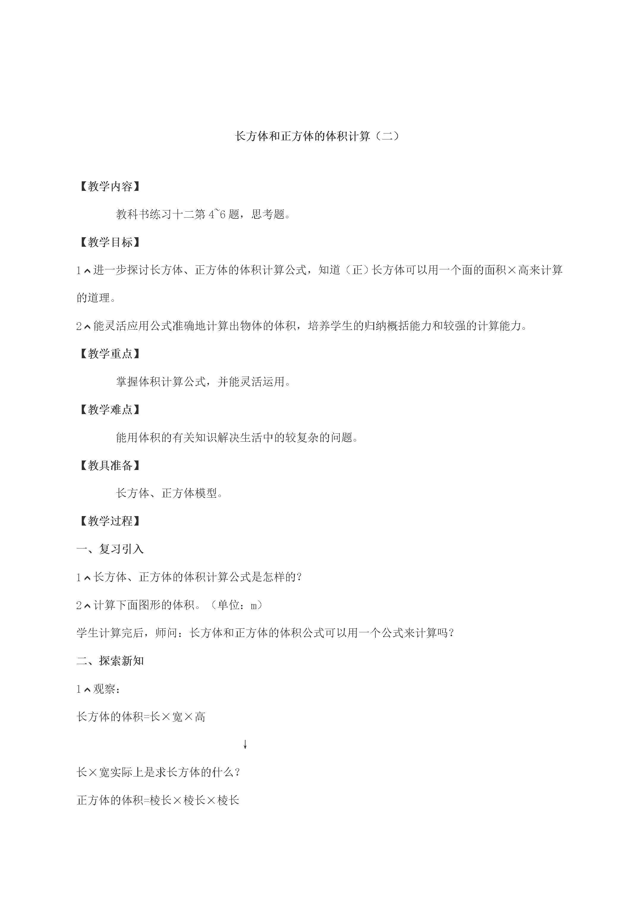 西师大版五年级下册《长方体和正方体的体积计算》数学教案.doc
