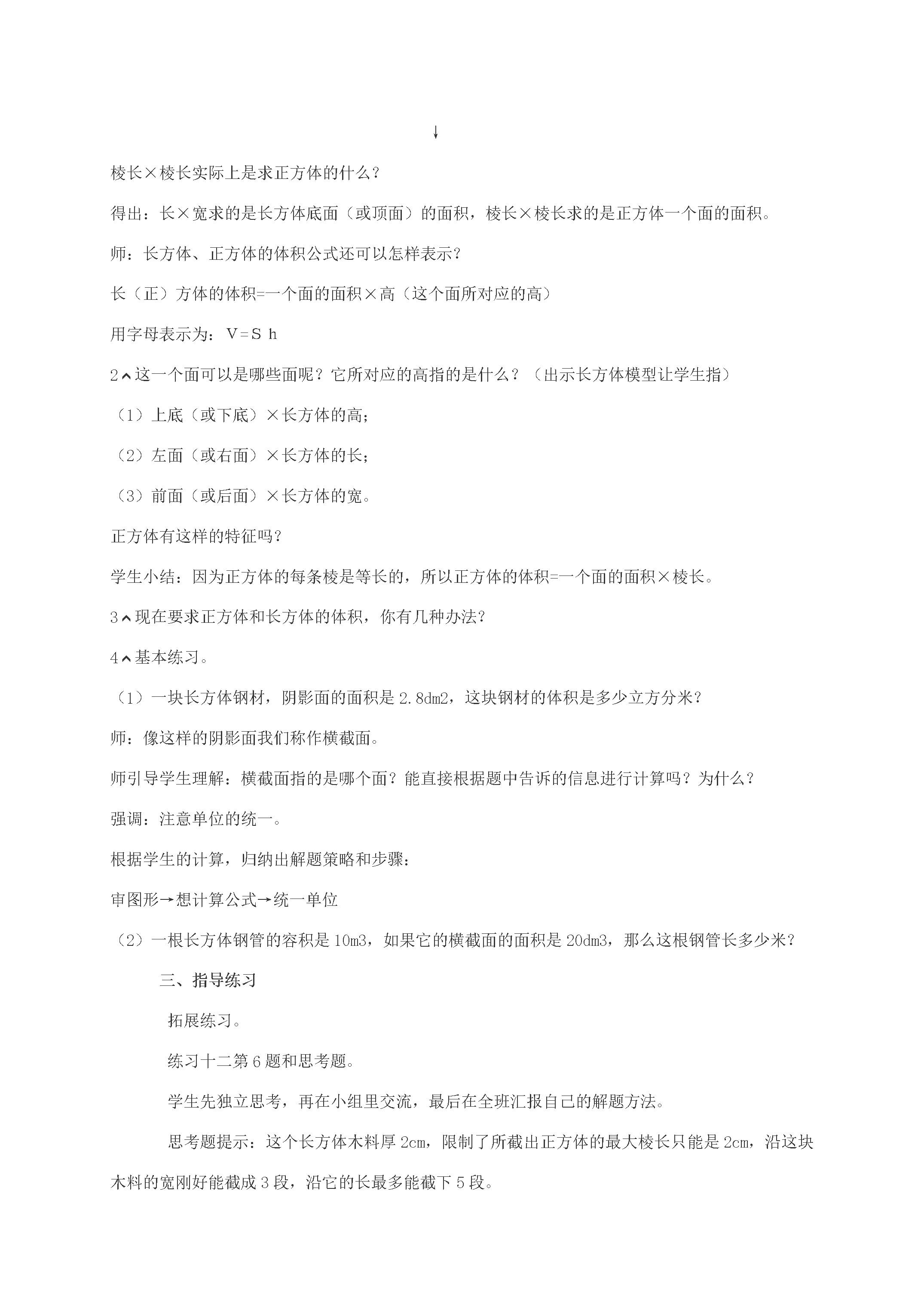 五年级数学下册 长方体和正方体的体积计算教案1 西师大版 教案.doc
