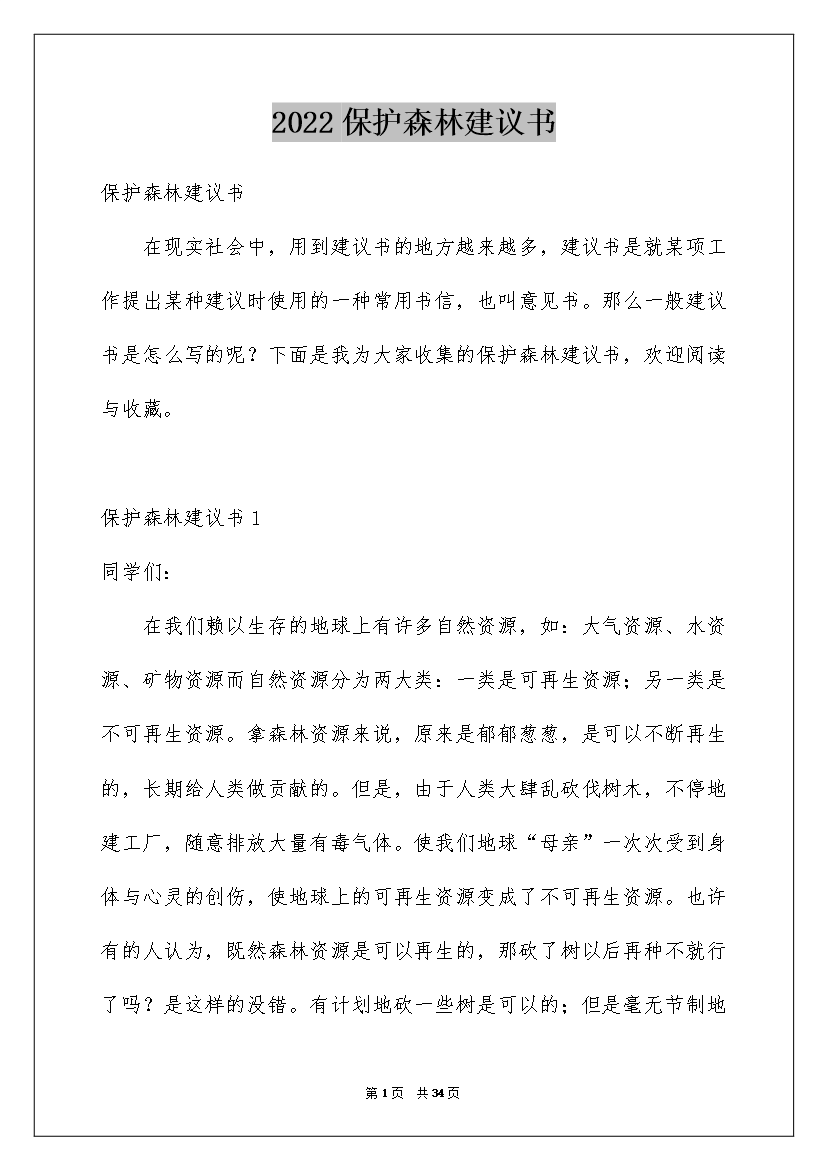 2022保护森林建议书保护森林建议书在现实社会中用到建议书的地方越来越多建议书是就某项工作提出某种建议时使用的一种常用书信也叫意见书。那么一般建议书是怎么写的呢?下面是我为大家收集的保护森林建议书欢迎阅读与收藏。保护森林建议书