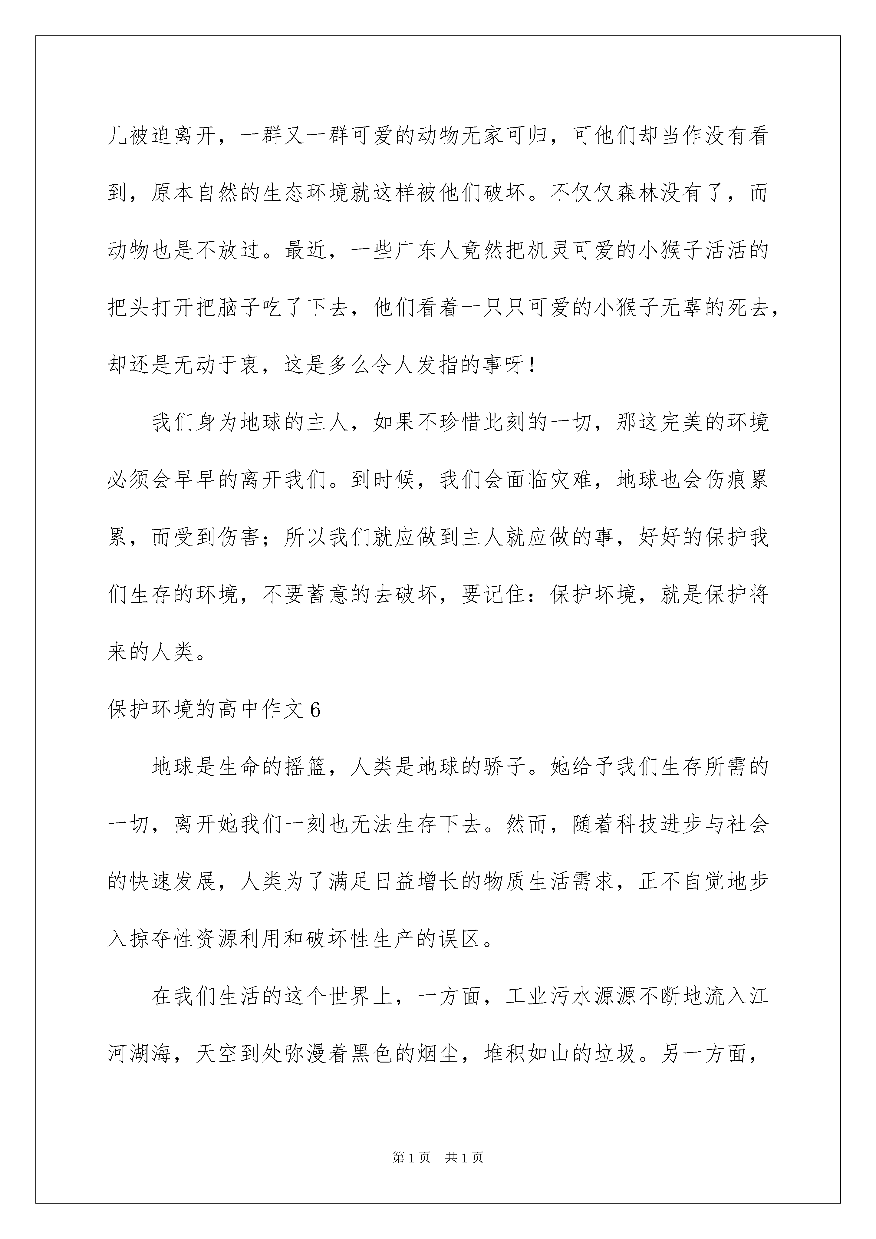 2022保护环境高中作文.docx