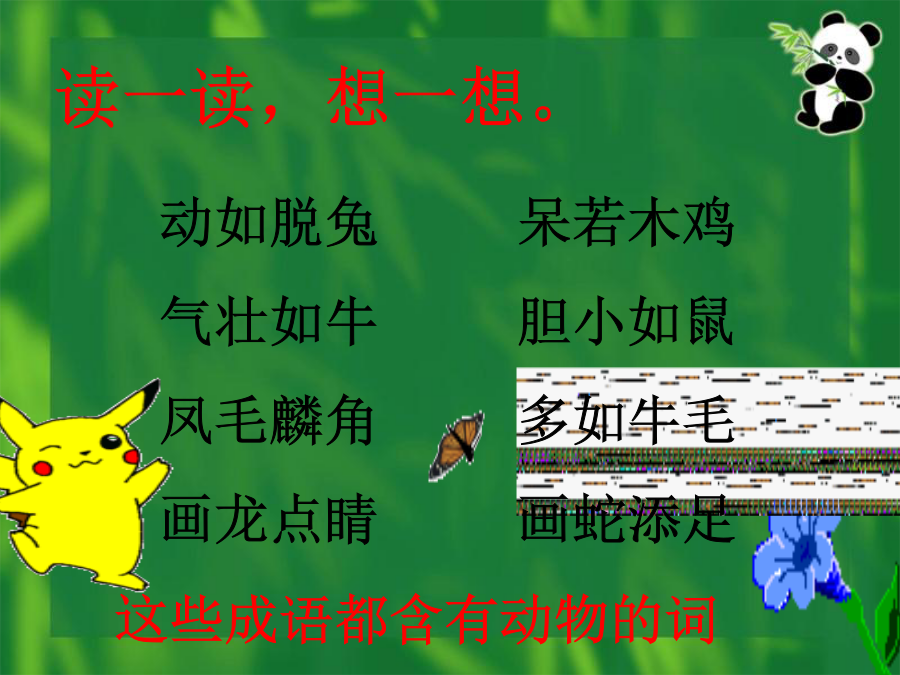 语文乐园(四)第一课时读一读蝴蝶昆虫动物生物国画图画美术艺术双塘小区洪山区武汉市湖北省读一读,想一想。守株待兔有些句子会告诉我们深刻的道理,那就是格言警句,这些句子不仅要会读会写会背,还要理解它的意思,一起读一读。写一写,背一背。天高任鸟飞,海阔凭鱼跃。第二课时从上卫生课的第一天开始,教室的墙上就挂了一幅人体解剖图,并标明了身体骨骼肌肉的名称和部位。整个学期那幅图都留在那里,不过老师从没有提起它。最近一次测验,我们一进教室,就看见黑板上面写了一道试题:“列举人体各主要骨骼的名称和部位。”大家马上往墙上看,