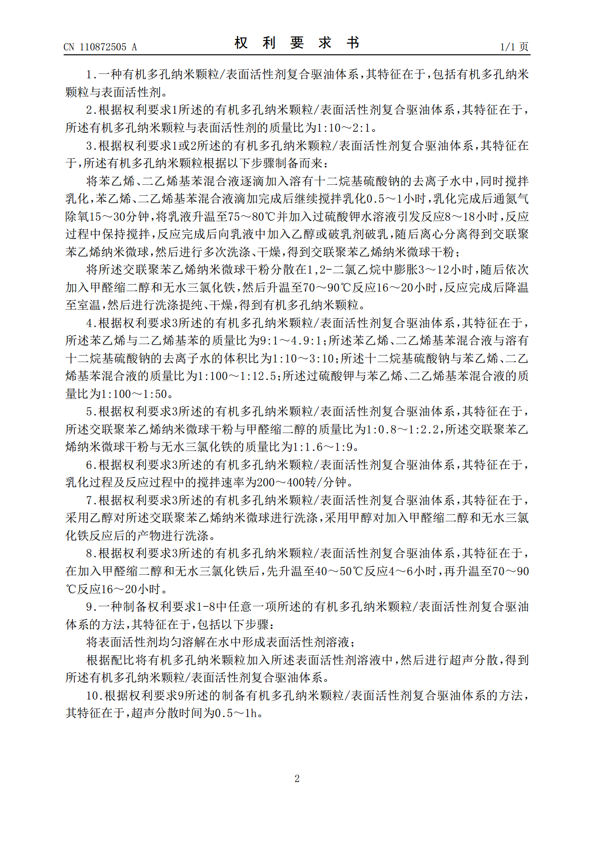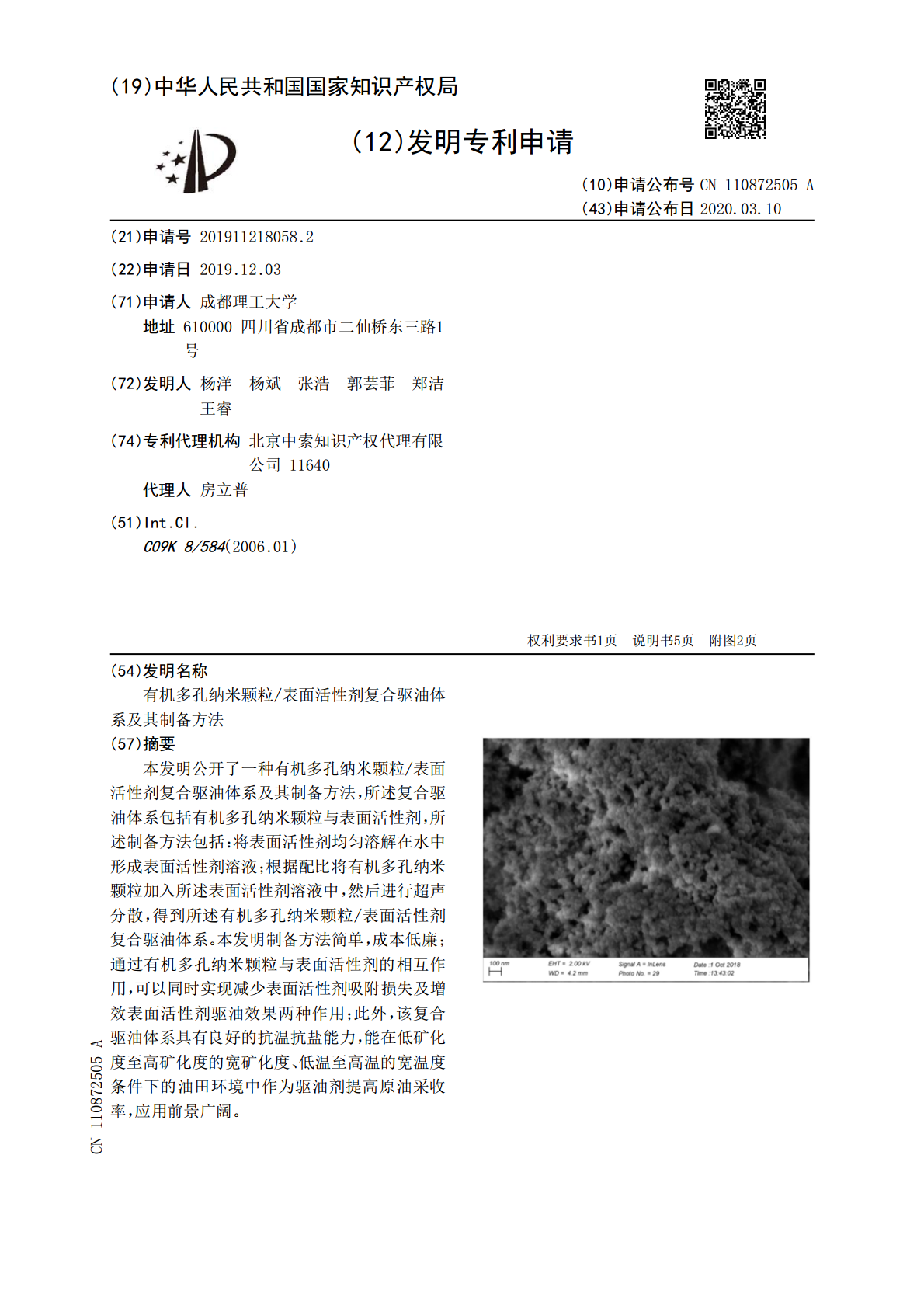 有机多孔纳米颗粒/表面活性剂复合驱油体系及其制备方法.pdf
