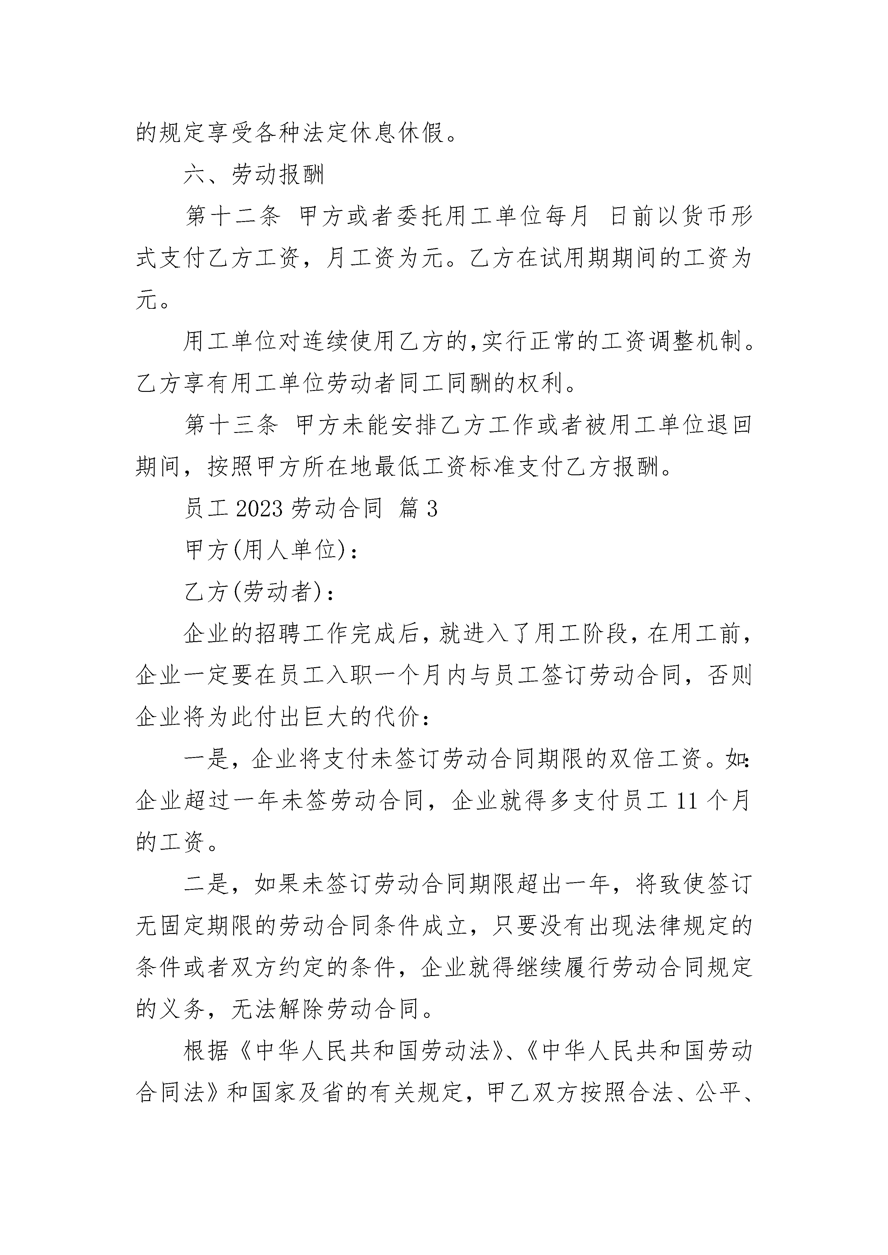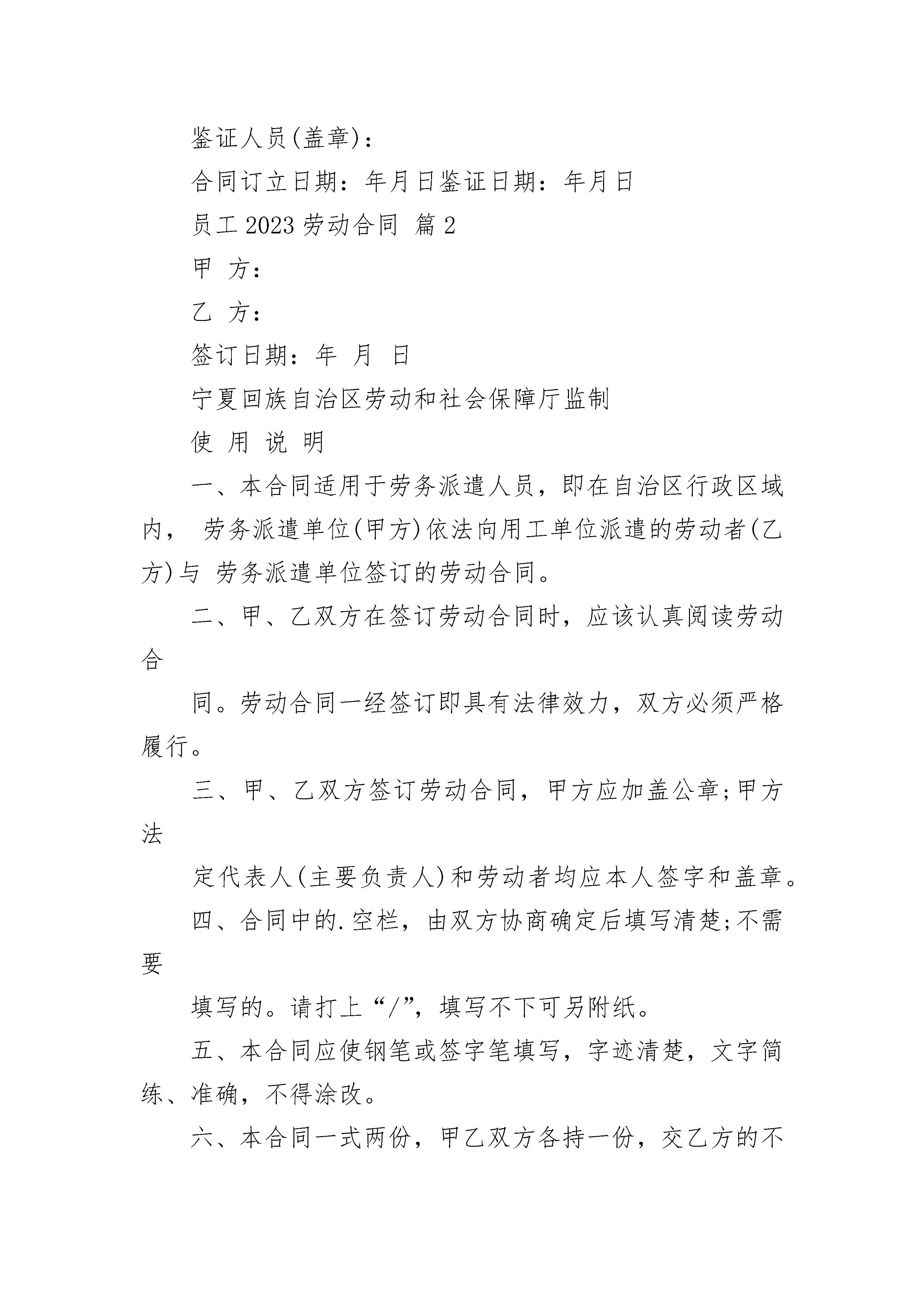 员工2023劳动合同员工2023劳动合同(通用24篇)员工2023劳动合同篇1甲方(用人单位)名称:乙方:(劳动者)姓名:法定代表人:性别:出生年月:民族:所有制性质:文化程度:地址居民身份证号码:根据《中华人民共和国劳动法》以及有关法律、法规、规章和政策的规定,经双方平等协商,乙方为甲方城镇(农民)合同制职工,并订立本合同。(一)本合同为有固定期限的劳动合同。合同期从年月日起至年月日止。其中熟练期(培训期、见习期)从年月日起至年月日止;试用期从年月日起至年月日止。(二)本合同为无固定期限的劳动合同。
