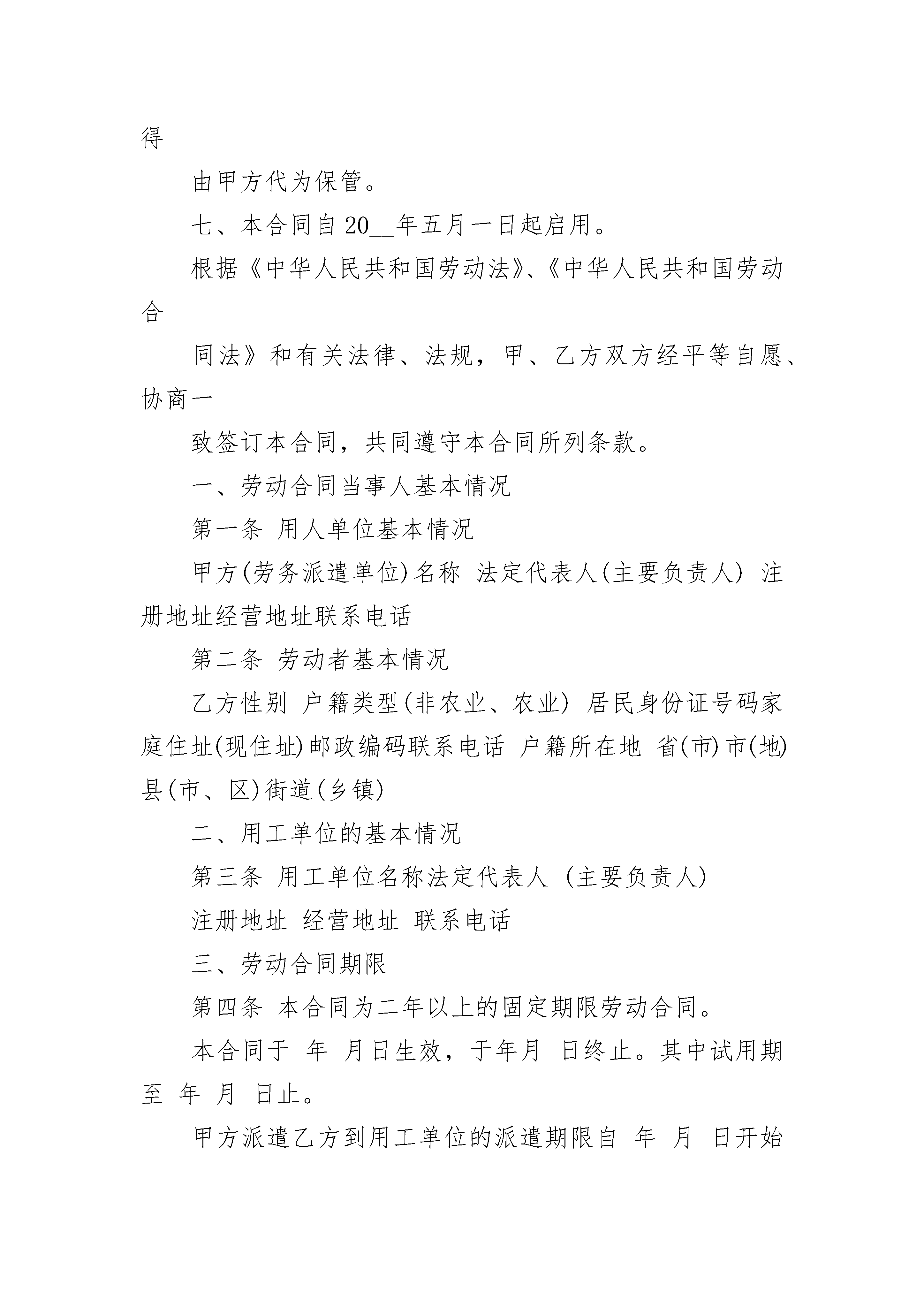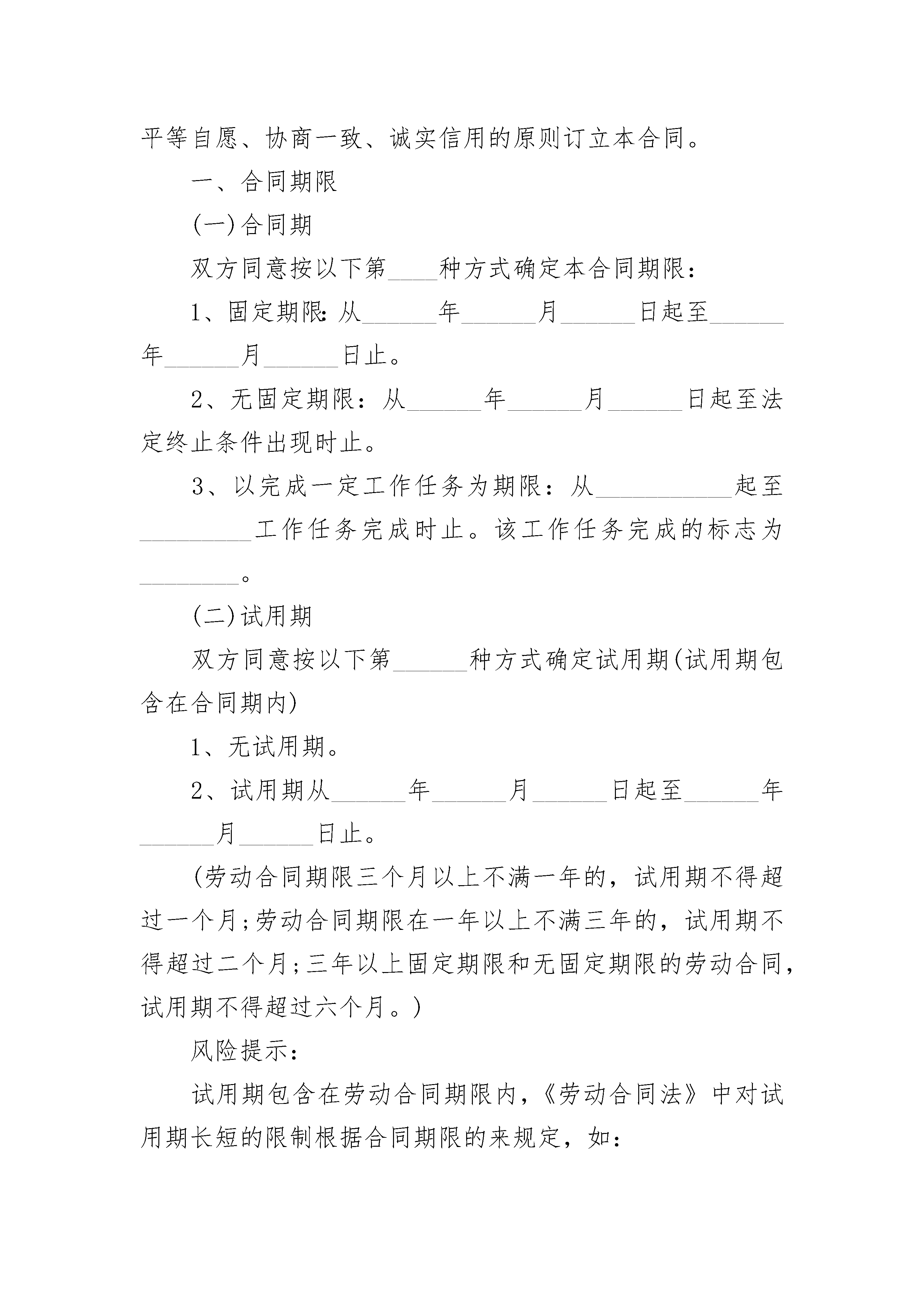 2023进厂员工劳动合同2023进厂员工劳动合同优秀5篇小编精心整理2023进厂员工劳动合同,希望这份2023进厂员工劳动合同优秀5篇能够帮助大家,给予大家在写作上的思路。更多2023进厂员工劳动合同资料,在搜索框搜索2023进厂员工劳动合同篇1甲方(用人单位)名称:____________乙方(劳动者)姓名:______________根据《中华人民共和国劳动法》和《天津市实施劳动合同制度规定》等规定,甲乙双方在平等自愿、协商一致的基础上签订本合同。第一条合同期限本合同期限执行下列________款。一
