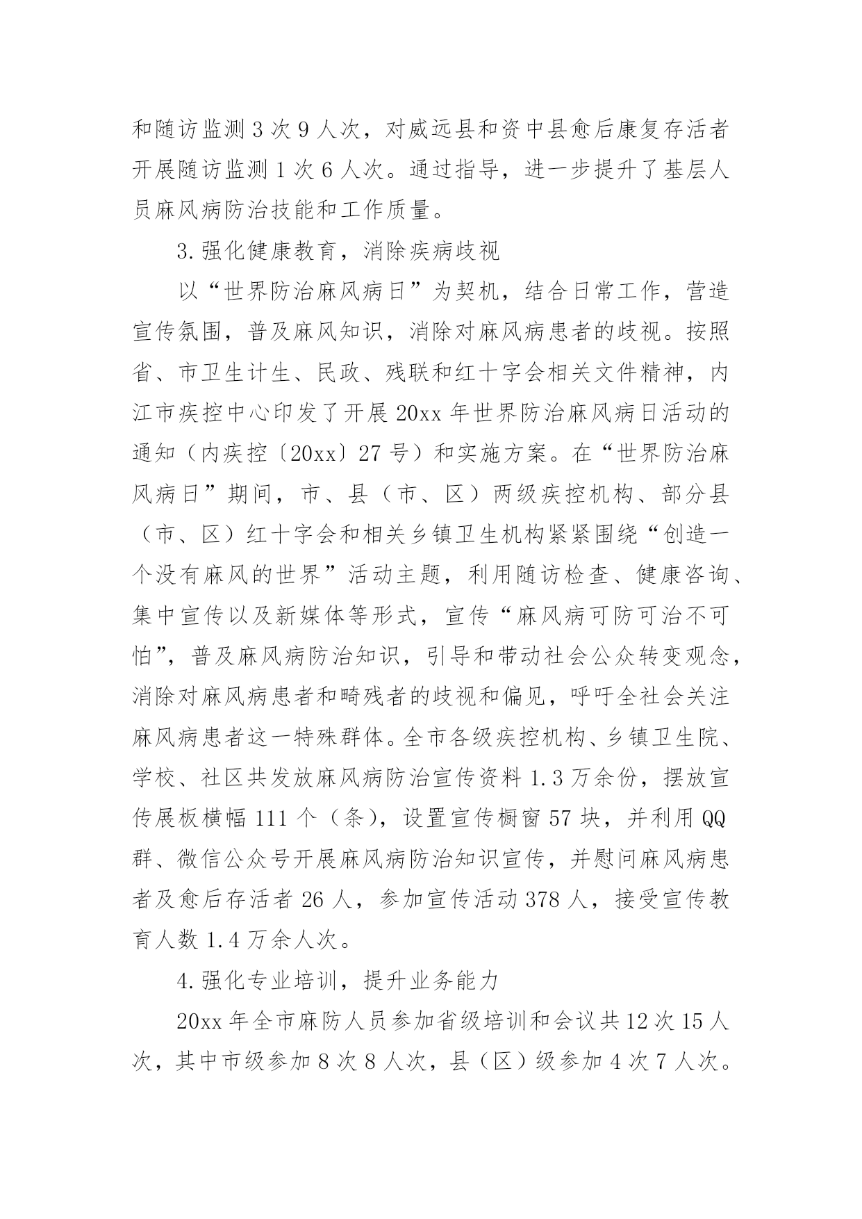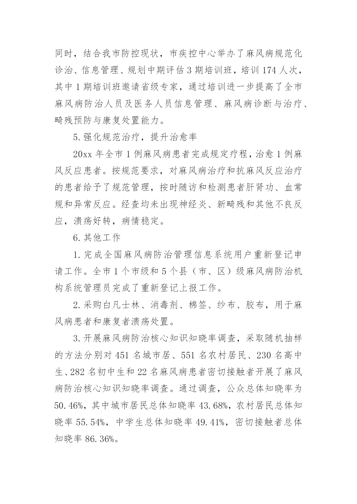 麻风防治工作年度总结麻风防治工作年度总结范文(通用13篇)时间不知不觉,我们后知后觉,辛苦的工作已经告一段落了,回顾这段时间中有什么值得分享的成绩呢?是时候认真地做好工作总结了。那么写工作总结真的很难吗?下面是小编为大家整理的麻风防治工作年度总结范文(通用13篇),欢迎阅读,希望大家能够喜欢。麻风防治工作年度总结120xx年1月27日是第xx届“世界防治麻风病日”暨第xx届“中国麻风节”,为进一步宣传普及麻风病防治知识,营造良好社会氛围,扎实推动各项防治措施的全面落实,呼吁全社会共同关注麻风病患者及畸残者