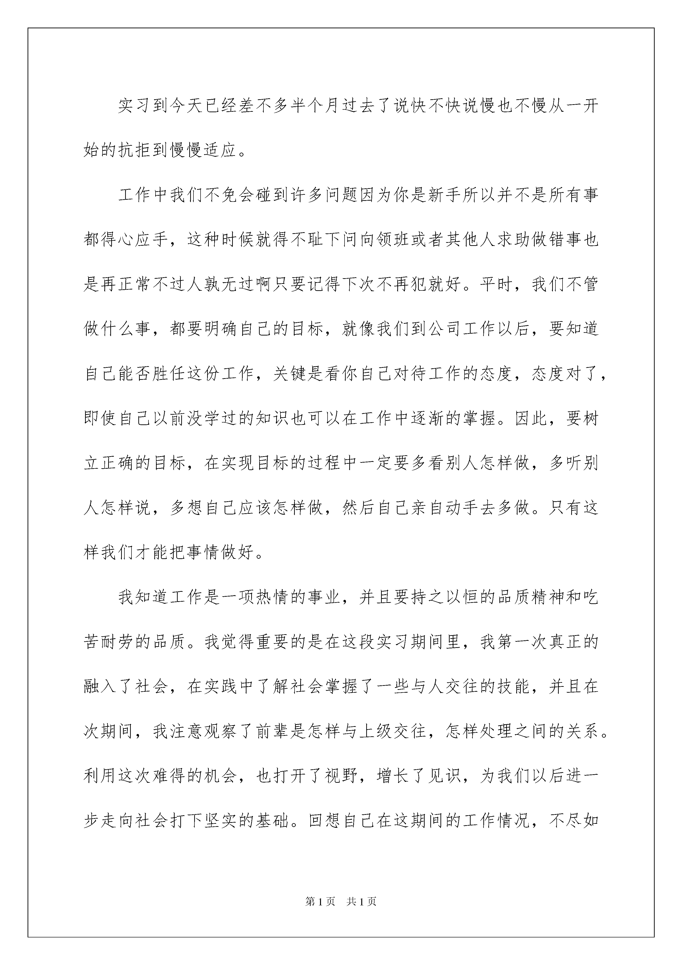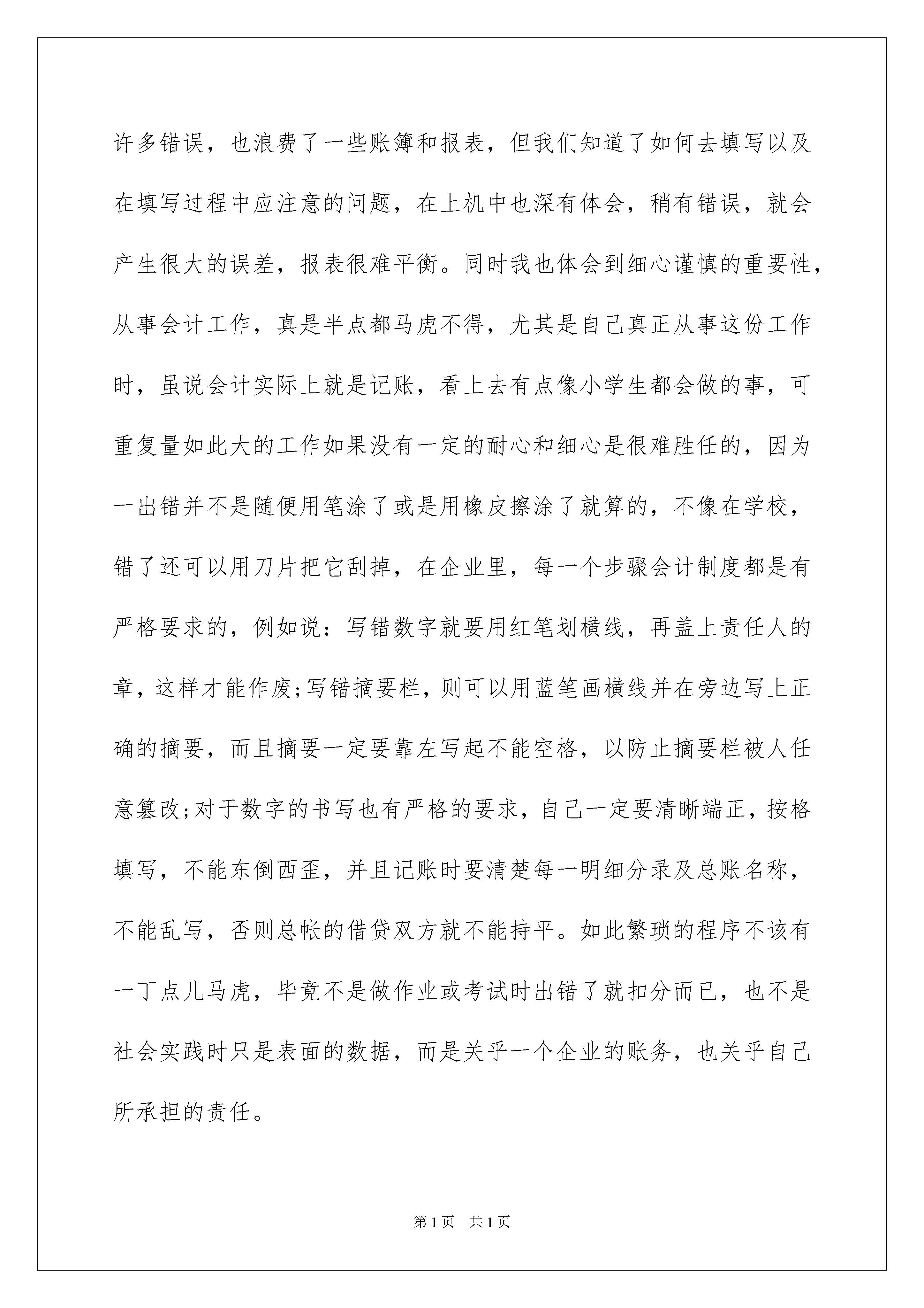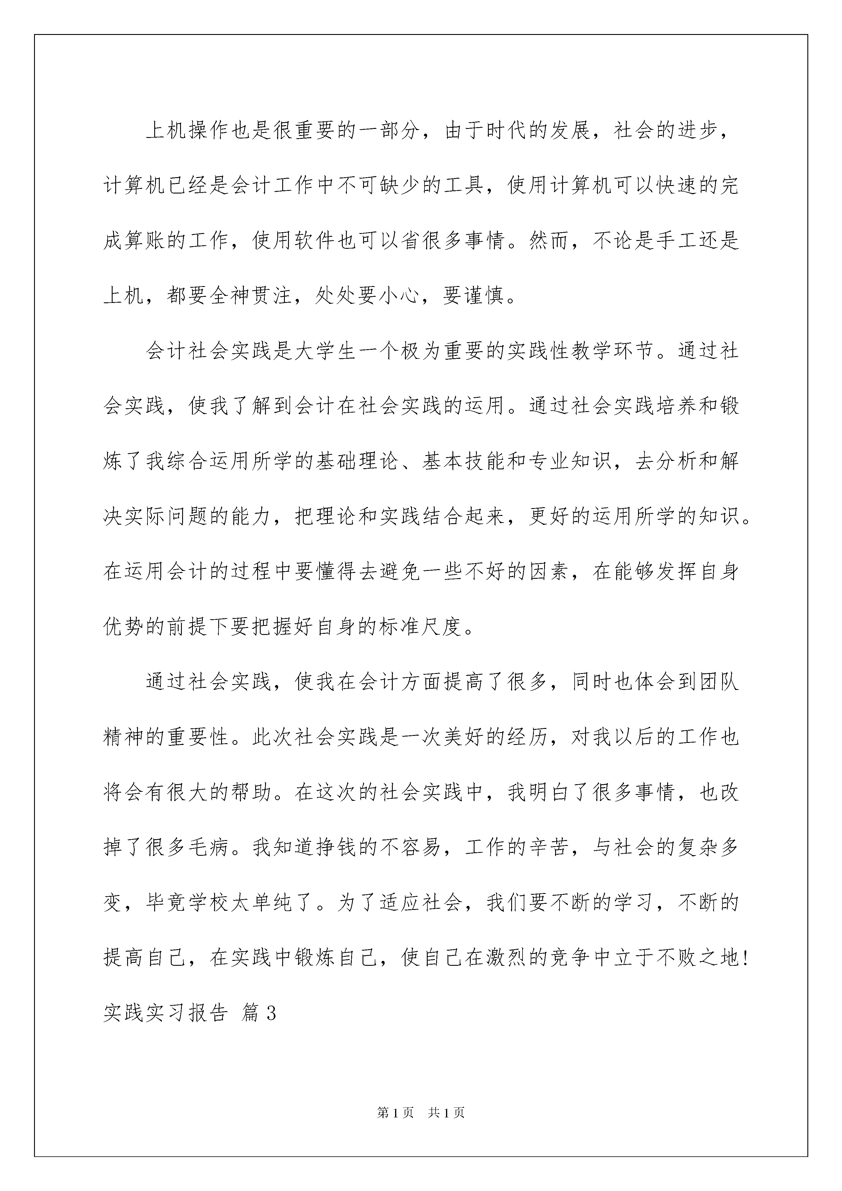 2022实践实习报告范文合集10篇实践实习报告范文合集10篇在经济飞速发展的今天,需要使用报告的情况越来越多,我们在写报告的时候要注意语言要准确、简洁。为了让您不再为写报告头疼,下面是我为大家收集的实践实习报告10篇,仅供参考,大家一起来看看吧。实践实习报告篇1今年暑期,我参到红海公司进行暑期社会实践实习,从7月15日至8月24日,历时40天。此次实习,本人分配到省公司招聘部实习,自感在工作中认真、虚心、抱学习心态,在其中也有困难、不顺利,也曾犯错误、知错后改、将功补过……通过此次实习,开阔了自己的眼界、收获了知识和经验,同时也体验到许多在学校很少涉及的社会经历,坚信对于自己的职业生涯甚至人生都会是一笔丰厚的财富。本次实习的主要工作如下:一、岗前培训二、招聘工作三、电话营销工作四、办公室日常工作有困难才会有挑战,才会有锻炼。的确在这些工作的过程以及事后的思考当中,自己锻炼出了能力以及掌握了许多的经验,尽管所学到的专业理论知识不多,但学到了许多实战的经验和做人做事的准则、技巧,主要表现在以下几方面:一、所学理论与实际实战理论、与实战运用的差距。一个是学校所学经典理论与工作所需理论的差距,在学校时都是学习劳动力的供需、影响因素,人力资源管理的主要模块等十分经典的理论,而在工作中发现工作所接触、学习的理论都是很少的一部分,而且要求十分的精细。另外一个是理论与实战运用的差距,除了与劳务派遣的相关法律,此次实习工作更多时候是靠临场的应变、靠口才、靠谈判能力。二、要立足社会需要沟通,需要与人、物建立各种联系。在我们设点做招聘时,需要先与居委、城管沟通获得许可,如此招聘工作开展起来会顺利很多;之后又要与当地店铺交涉、建立合作关系;以及与职业中介机构谈判时的口才、沟通能力等,都是成功与否的关键。三、人都会犯错误,但要知错后改、将功补过。在做外出设点招聘的后期,因为我们需要与当地店铺建立长期的合作关系,需要集体外出到各个点进行协商和确定合作关系,而恰恰当天我犯了一个低级的错误,致使本来可以顺利完成的工作悬而不决。事后我首先跟组长承认错误,其次说明了自己在犯错后也曾做过哪些措施补救,最后表示自己愿意承担责任并提出善后方案,最终组长答应了我的请求并表示非常赞赏我的处事方式。四、职场存在潜规则,工作需要谦虚和学习。说潜规则,更贴切地说应该是规矩,需要我们慢慢去领悟和有技巧地处理,因此需要谦虚和学习。此次的社会实践的确给了自己一个很好的理论与实践结合的平台,使我更加了解自身,也明白了以后需要努力的地方,比如知识面的拓展、人脉的建立等方面,也相信这段日子的所学所感必将受用一生。实践实习报告篇2一、社会实践目的通过本次社会实践我了解到在单位里能够学习到很多在学校学习不到的知识。拓宽了我的知识面,扩大了与社会的接触面,对于我来说收益良多。并且为以后毕业社会实践打下了良好的基础。二、社会实践时间、地点时间:xx月x日至18日地点:a楼505、e楼实验室三、社会实践单位概况四、社会实践具体内容本次模拟社会实践是以济南通力机械厂XX年xx月份的经济业务为例,进行了为期两周的手工模拟和用友财务软件模拟社会实践。xx月x日:发放社会实践指导书、凭证、帐页、报表等,建账;xx月8日:编制会计分录;xx月9日:填制记账凭证;xx月10日:填制记账凭证,进行成本计算;xx月11日:审核记账凭证,登记日记账和明细账;xx月14日:编制科目汇总表,登记总账;xx月15日:对账、结账;xx月16日:编制会计报表(资产负债表);xx月1x日:编制会计报表(利润表、现金流量表);xx月18日:撰写社会实践报告。五、社会实践总结社会实践是每一个大学毕业生必须拥有的一段经历,他是我们在实践中了解社会、在实践中巩固知识;社会实践又是对每一位大学毕业生专业知识的一种检验,他让我们学到了很多在课堂上根本就学不到的知识,既开阔了视野,有增长了见识,为我们以后进一步走向社会打下坚实的基础,也是我们走向工作岗位的第一步。然而,我现在虽只是一名大二学生,也经历了为期两周的会计社会实践,虽然是在学校的教室里,却也令我受益颇多。企业概况是从老师发给我们的《企业会计社会实践指导书》上了解到的,是一家股份制企业。首先会计分录要先做出来,为以后其他工作打下基础。在做会计分录的过程中,可以说是遇到了很多困难,有时漏写,有时又写不明白,弄得迷迷糊糊的,此刻,我才发现自己还有许多欠缺的地方,还有很多要去学习。虽然过程有点迷糊,但还是成功的完成了。其实只要做好基础工作,填好会计凭证,剩下的就很容易了。尤其是当资产负债表和利润表全平时,心里说不出有多高兴了,原来完成