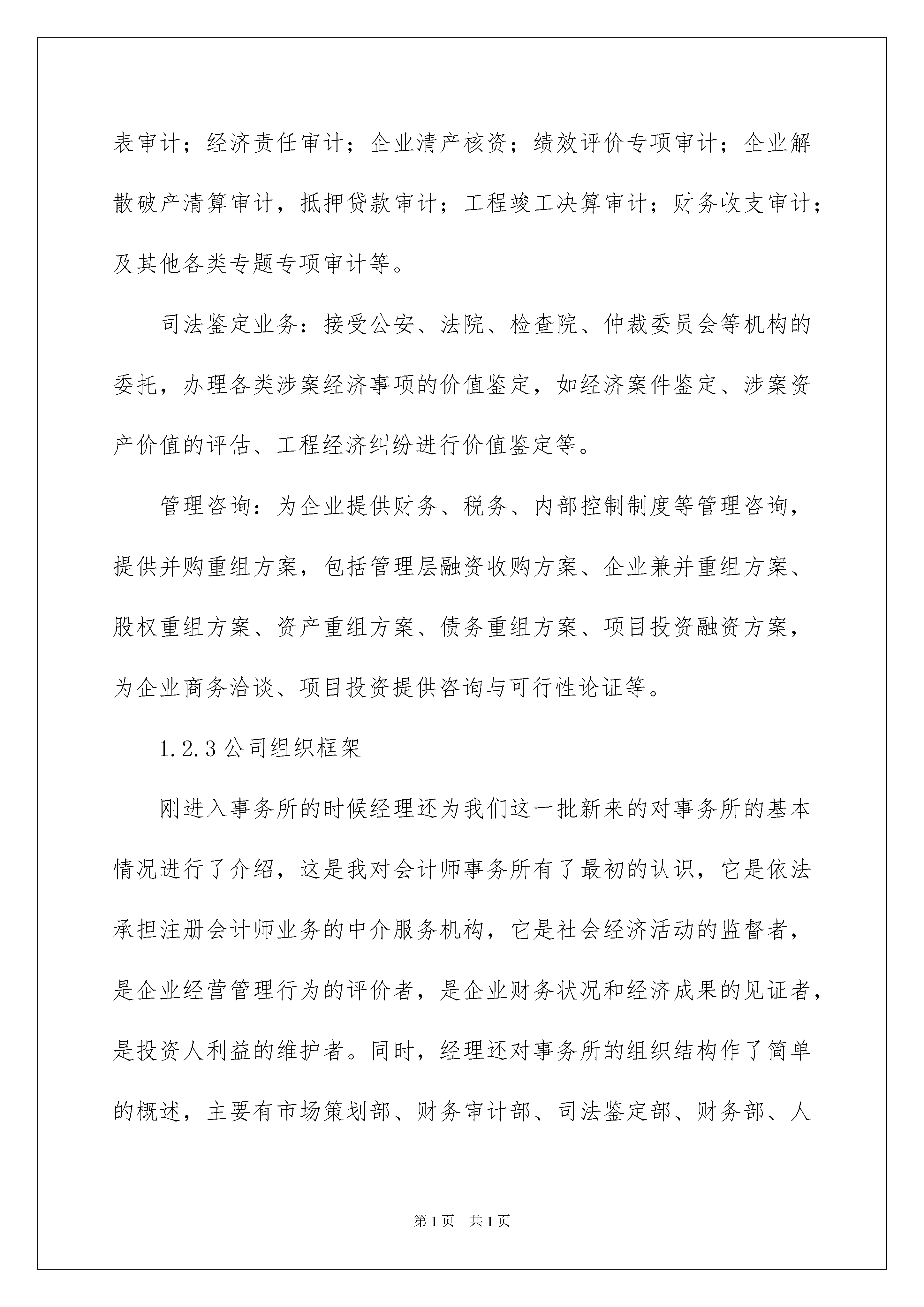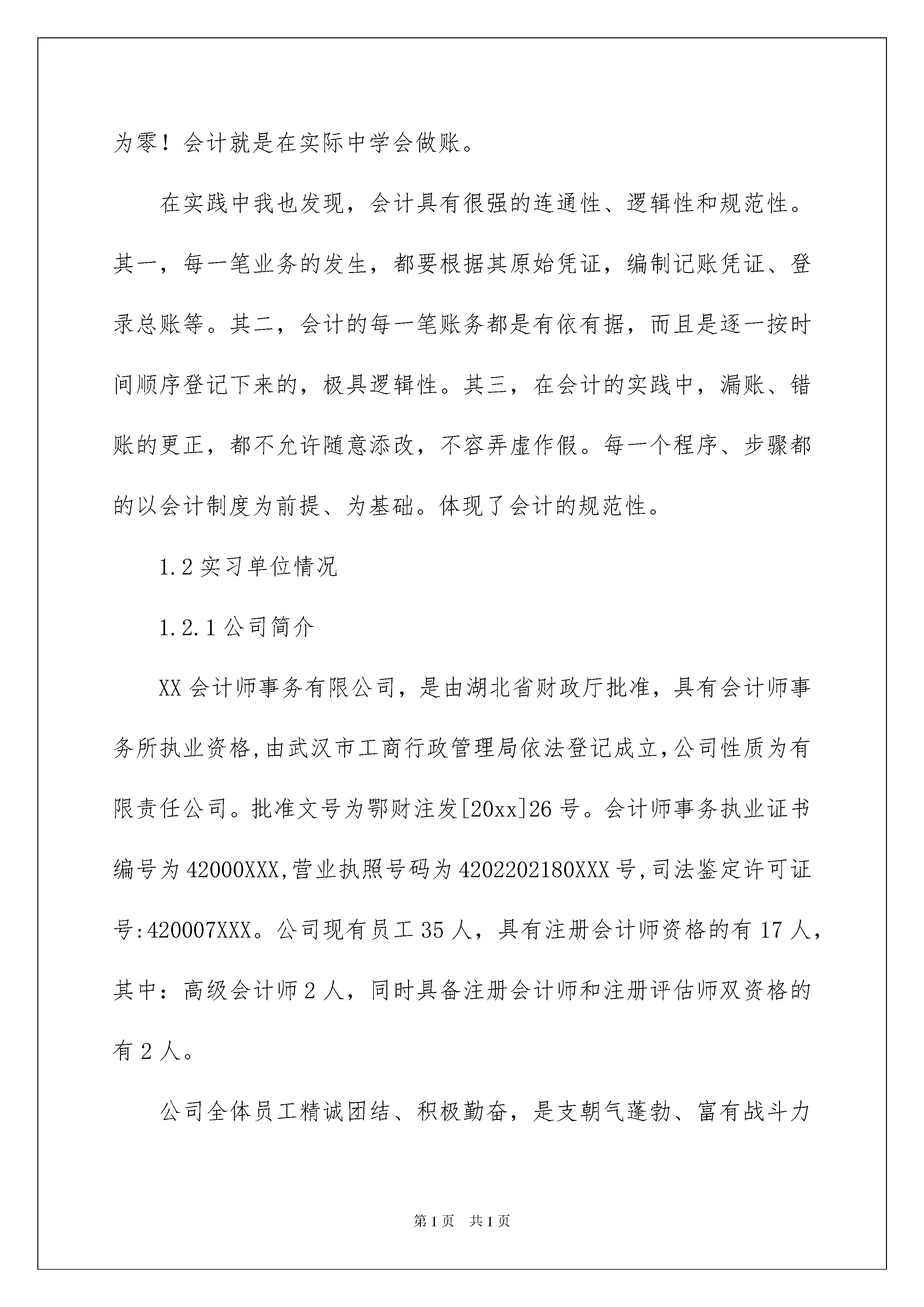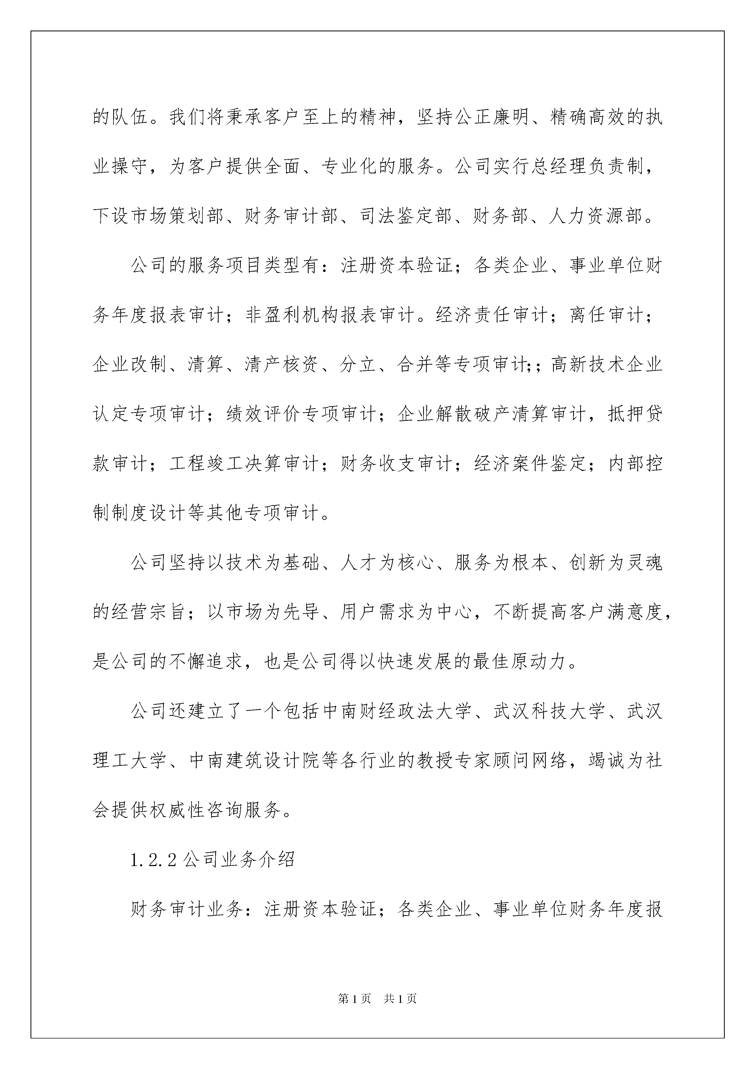 2022审计的实习报告三篇审计的实习报告三篇在不断进步的时代,我们都不可避免地要接触到报告,报告具有双向沟通性的特点。写起报告来就毫无头绪?下面是我收集整理的审计的实习报告3篇,仅供参考,希望能够帮助到大家。审计的实习报告篇1实习时间:20xx年7月21日——20xx年8月12日实习地点:市审计局实习目的:通过暑假在审计局实习,巩固专业知识,更深的了解和掌握相关课程理论,加强对审计局工资的管理和业务方面的了解,把理论知识充分合理的运用到实践操作中去,用已经学到的专业知识对审计局的各项业务能做出合理的初步分析,善于发现问题,分析问题和解决问题,在实习中发现自身的不足之处,在日后的学习工作中尽尽量避免并改善,为将来踏入社会打下坚实的基础。实习单位概况:市审计局隶属于国家的审计单位,编制人数约有一百多人,是国有企业,日常工作量不是特别的大。所以,这次的实习机会对我来说是宝贵的。实习内容:暑假在审计局实习中,我明白了一个网络审计系统有三个重要的组成部分。分别是:软件基础、硬件基础、操作和管理人员。要做到审计信息全面科技化,这三方面要求是必须要达到的。刚到审计局实习的时候,我对一切事物都懵懵懂懂,一个初出茅庐的大学生,来到一个陌生的环境,和一些陌生的人群相处,难免会有一些不适应,幸好有指导老师的帮助,在他的带领下,我熟悉了审计局的环境,也和同事们做了下自我介绍,大家看起来都很欢迎我,这让我心里的压力没那么大了。指导老师跟我说了下实习期间要遵守的规章制度,安排了下我的实习任务。实习最初的那段时间我就是跟着指导老师学习,通过观察指导老师是如何工作的,做下详细的记录,有什么不懂的问题就请教指导老师,老师也会很耐心的给我一一分析,解答,这让我很快就了解了整个审计工作的流程,很快就能上手工作了,但是我大部分时间还是协助指导老师完成审计工作,偶尔工作之余我也会看看书籍,全方面的充实自己。我经常和指导老师沟通交流,老师会把他多年的审计工作经验拿出来和我分享,这让我为老师的无私奉献精神所感动,我也没有辜负指导老师的期望,实习期间得表现都很优秀,得到了领导和同事们的一致认可。实习心得体会:暑假在审计局的实习机会是难得的,是宝贵的,我也没有辜负这次机会,在实习中收获了很多的知识,明白了很多的道理,这次实习让我终身受益。审计的实习报告篇2前言实习是每一个大学生必须拥有的一段经历,它使我们在实践中了解社会、在实践中巩固知识;实习又是对每一位大学生专业知识的一种检验,它让我们学到了很多在课堂上根本就学不到的知识,即开阔了视野,又增长了见识,为我们以后进一步走向社会打下坚实的基础,也是我们走向工作岗位的第一步。自从走进大学校园,开始接触会计专业,我就对注册会计师这个神秘的行业充满了好奇,也了解到它是大多数会计人员梦想的目标。在学习中,通过进一步的认识,更是激起了我对于这个职业的极大兴趣。会计是一门实践性很强的学科,经过两年多的的专业学习后,在掌握了一定的会计基础知识的前提下,为了进一步巩固理论知识,将理论与实践有机地结合起来。在一个偶然的机会中我得知湖北中德秦会计师事务所正在招收实习生,为了满足我对于会计师事务所强烈的好奇心。我投了简历去应聘,最后顺利进入该事务所。社会与校园是不同的两个世界,也许我们不能完全立刻适应这激烈竞争的社会。但我们要学会逐步适应这个社会,我想我这几个月的时间是我一个即将开始大学生活迈向社会的第一步。1.概述1.1实习目的会计是对会计单位的经济业务从数和量两个方面进行计量、记录、计算、分析、检查、预测、参与决策、实行监督,旨在提高经济效益的一种核算手段,它本身也是经济管理活动的重要组成部分。会计专业作为应用性很强的一门学科、一项重要的经济管理工作,是加强经济管理,提高经济效益的重要手段,经济管理离不开会计,经济越展会计工作就显得越重要。在学校学的这四年,可以说对会计已经是耳目能熟了,所有的有关会计的专业基础知识、基本理论、基本方法和结构体系,我都基本掌握了,但这些似乎只是纸上谈兵,倘若将这些理论性极强的东西搬上实际上应用,那我想我肯定会是无从下手,一窍不通。自认为已经掌握了一定的会计理论知识在这里只能成为空谈。于是在坚信“实践是检验真理的唯一标准”下,认为只有把从书本上学到的理论知识应用于实际的会计实务操作中去,才能真正掌握这门知识。因此,我作为一名会计专业的学生,就必须亲自动手去做,去实践。只有这样才能真正了解会计究竟是做什么的。作为学习了这么长时间会计的我们,可以说对会计基本上耳目能熟了。有关会计的专业基础知识、基本理论、基本方法和结构体系,我们都基本掌握了。但通过实践了解到,这么