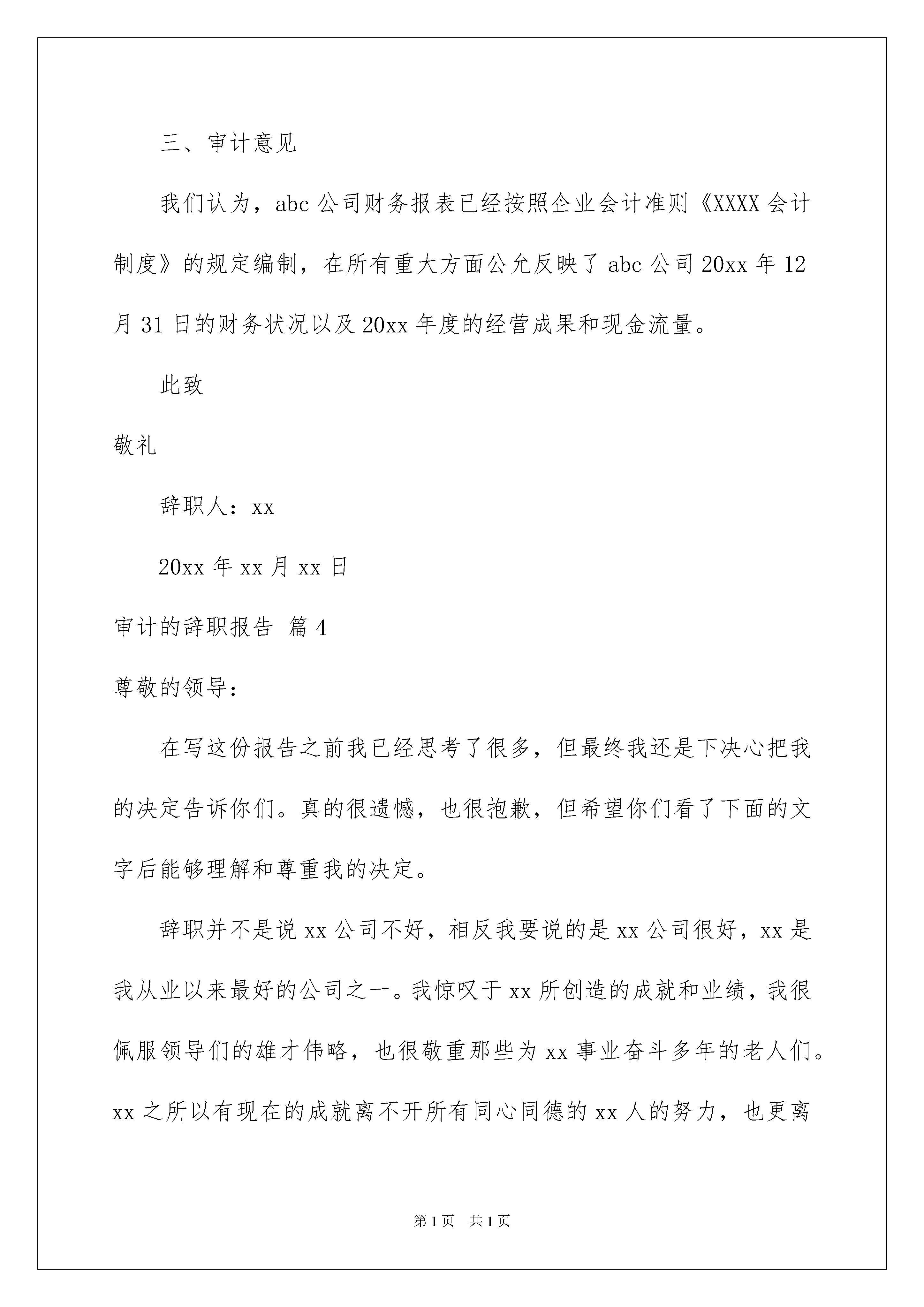 2022审计的辞职报告3篇审计的辞职报告3篇企业员工离职,属于一种正常的现象,我们或许会因为寻求更好的地方而选择离职,这时候有可能会要求我们写辞职报告。辞职报告应该包括什么内容?下面是我精心整理的审计的辞职报告3篇,欢迎阅读,希望大家能够喜欢。审计的辞职报告篇1abc股份有限公司全体股东:我们审计了后附的abc股份有限公司(一下简称abc公司)财务报