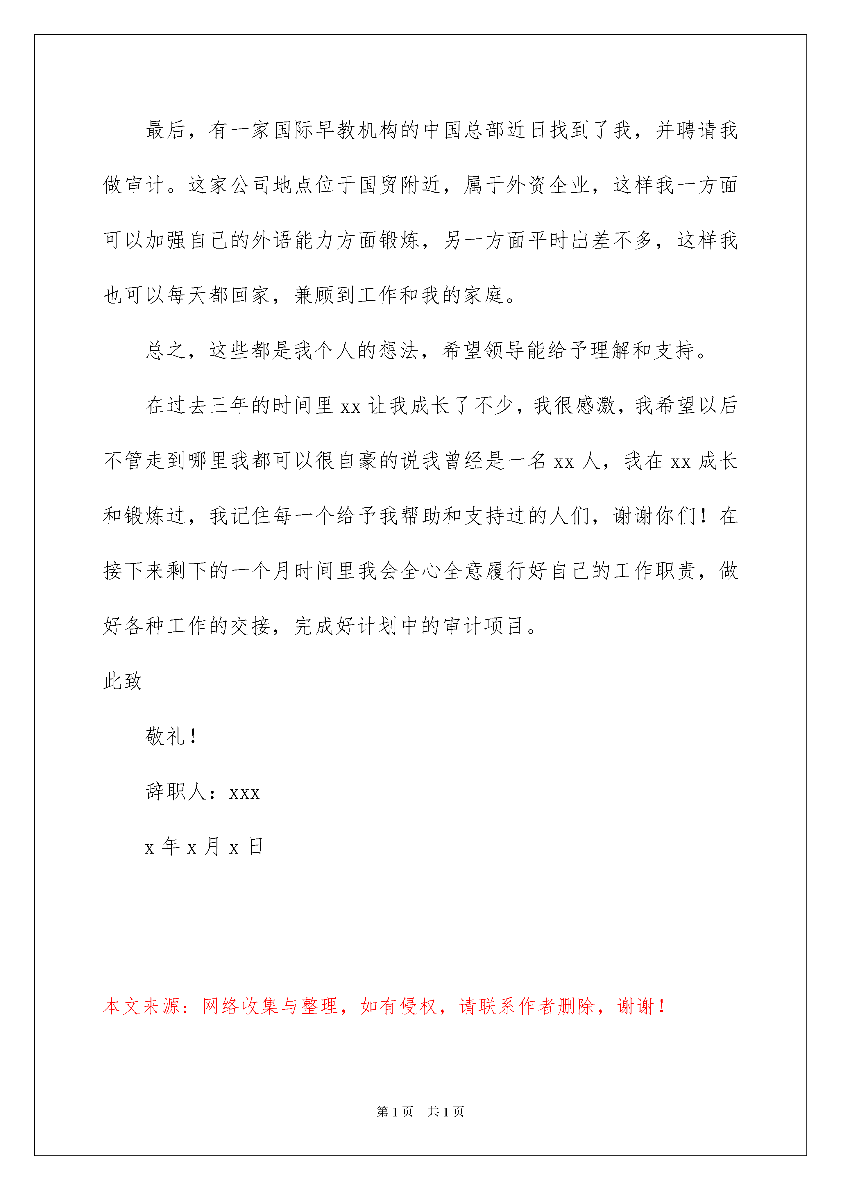 2022审计辞职报告审计辞职报告在生活中我们都不行避开地要接触到报告报告成为了一种新兴产业。那么报告究竟怎么写才合适呢?下面是我整理的审计辞职报告欢迎阅读希望大家能够喜爱。审计辞职报告1敬重的事务所领导:首先感谢事务所领导