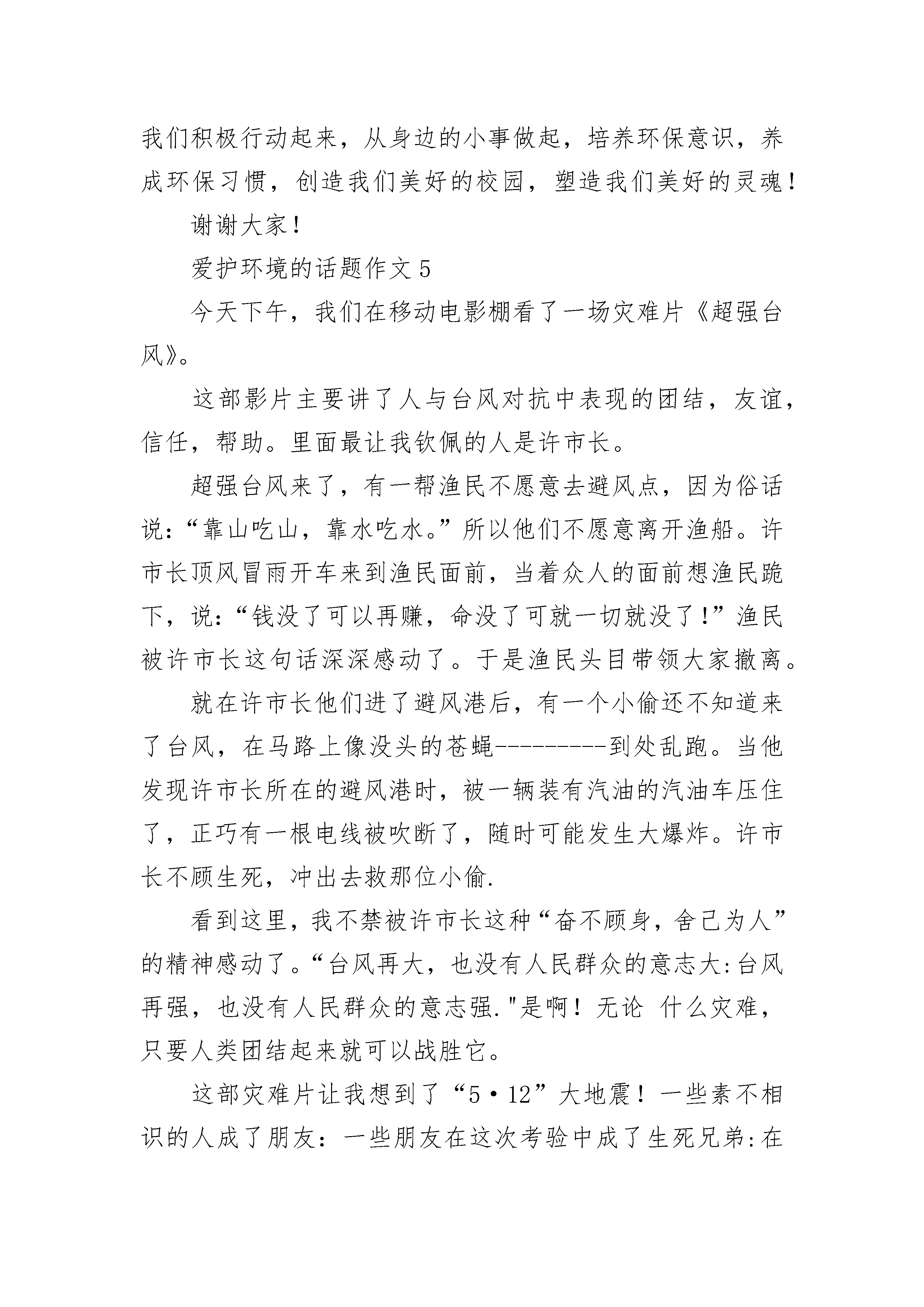 《爱护环境》初中优秀作文精选以爱护环境为话题的作文5篇.docx