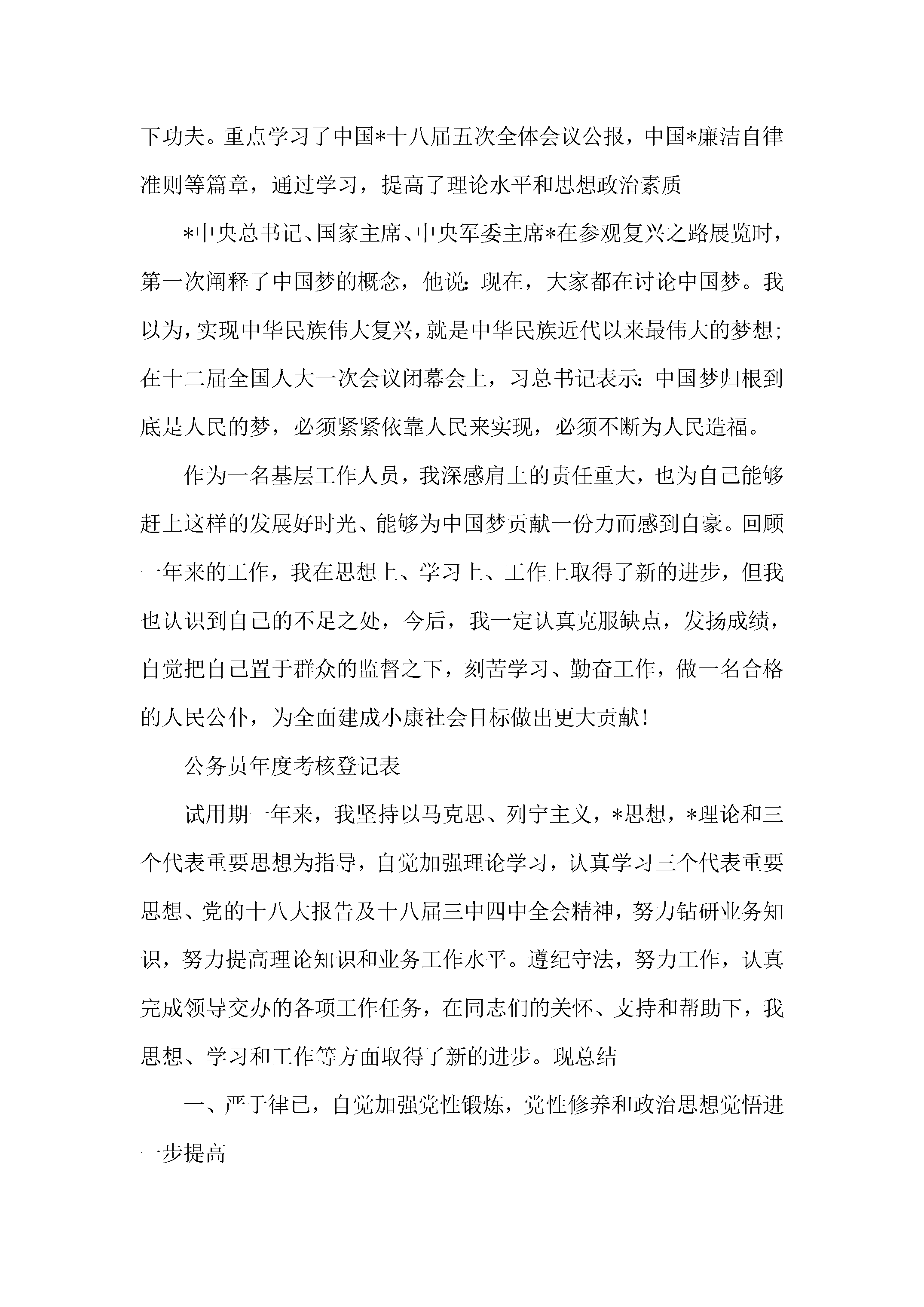《【公务员年度考核登记表 个人总结】公务员年度考核登记表模板》.doc