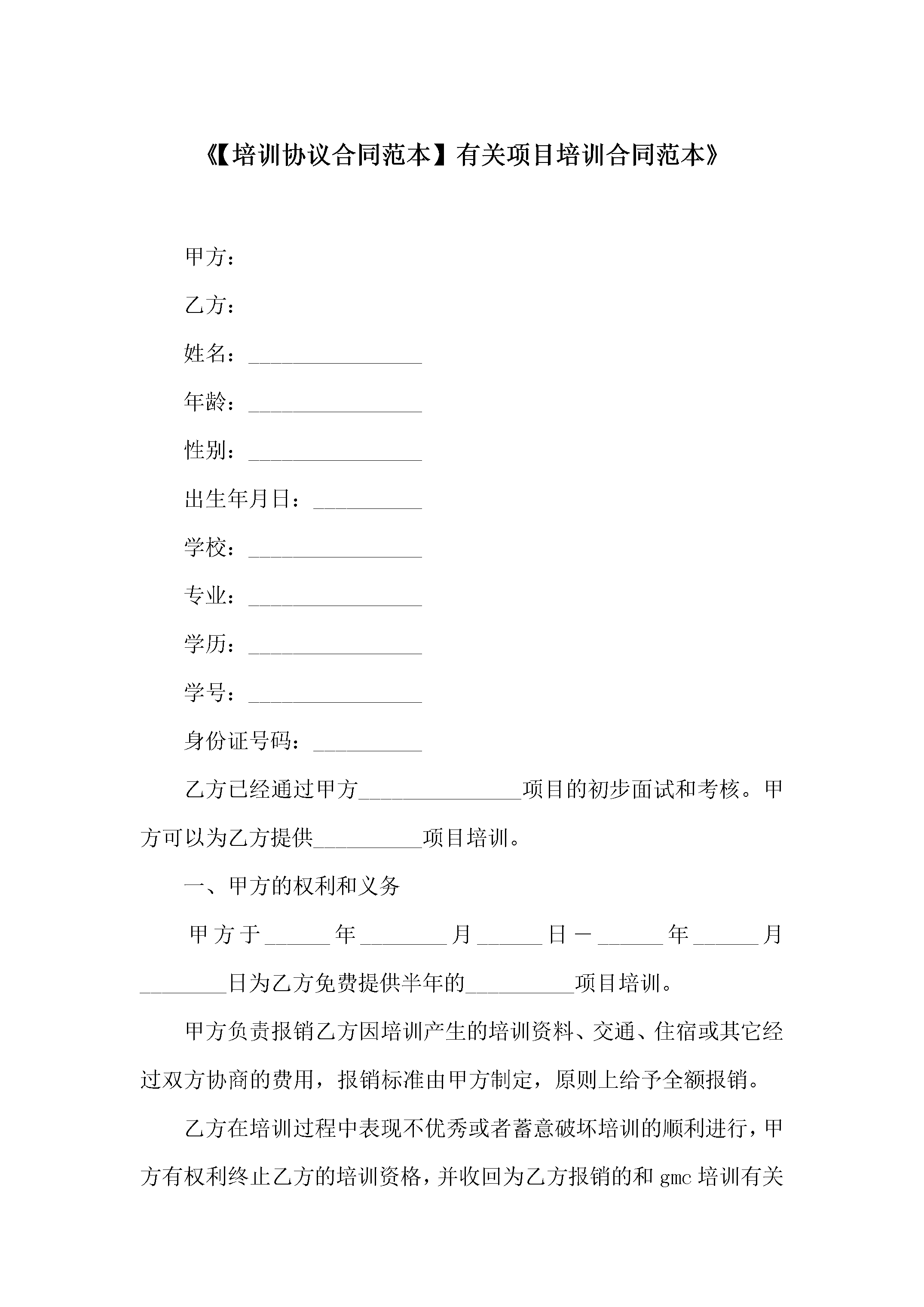 《【培训协议合同范本】有关项目培训合同范本》.doc