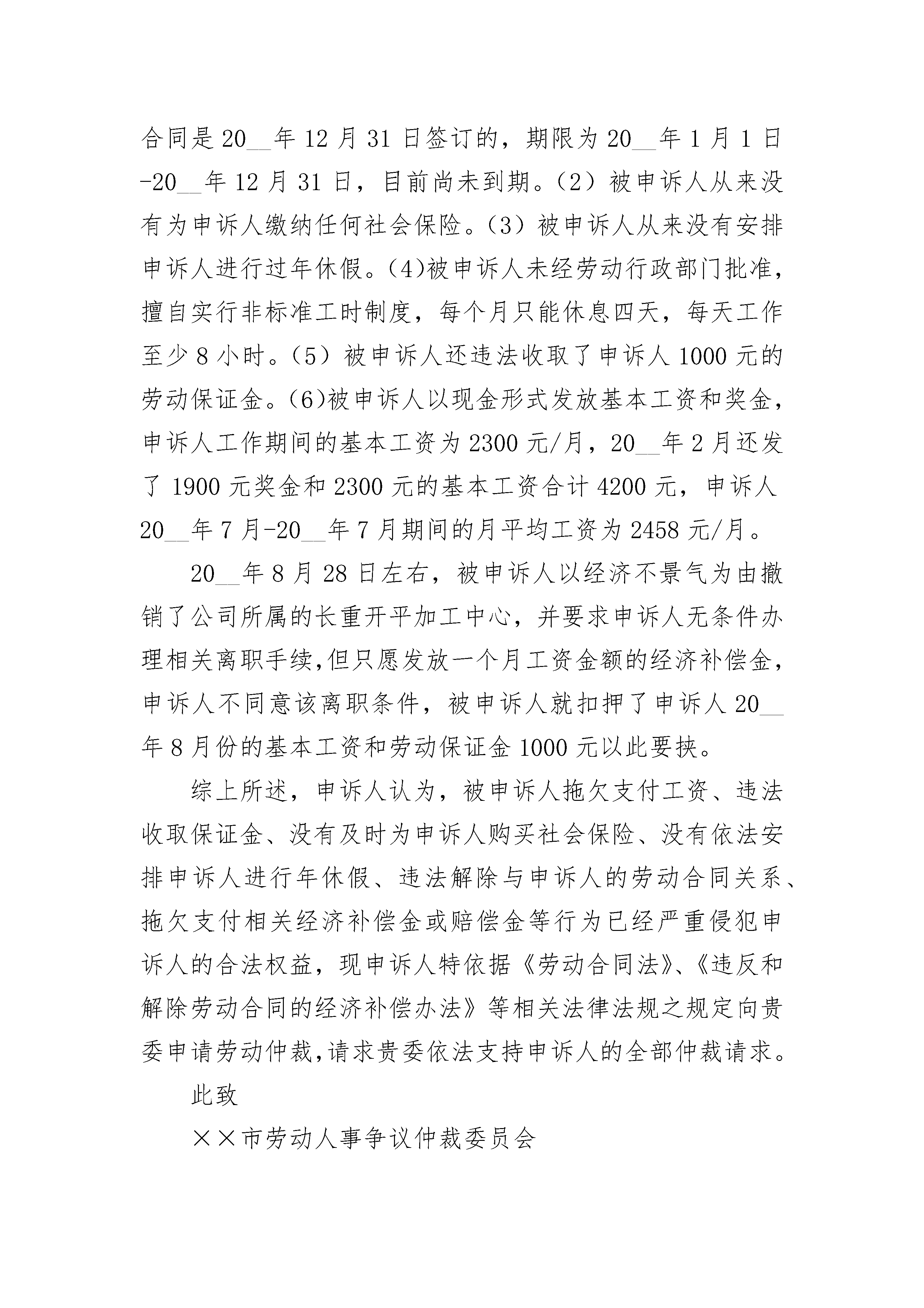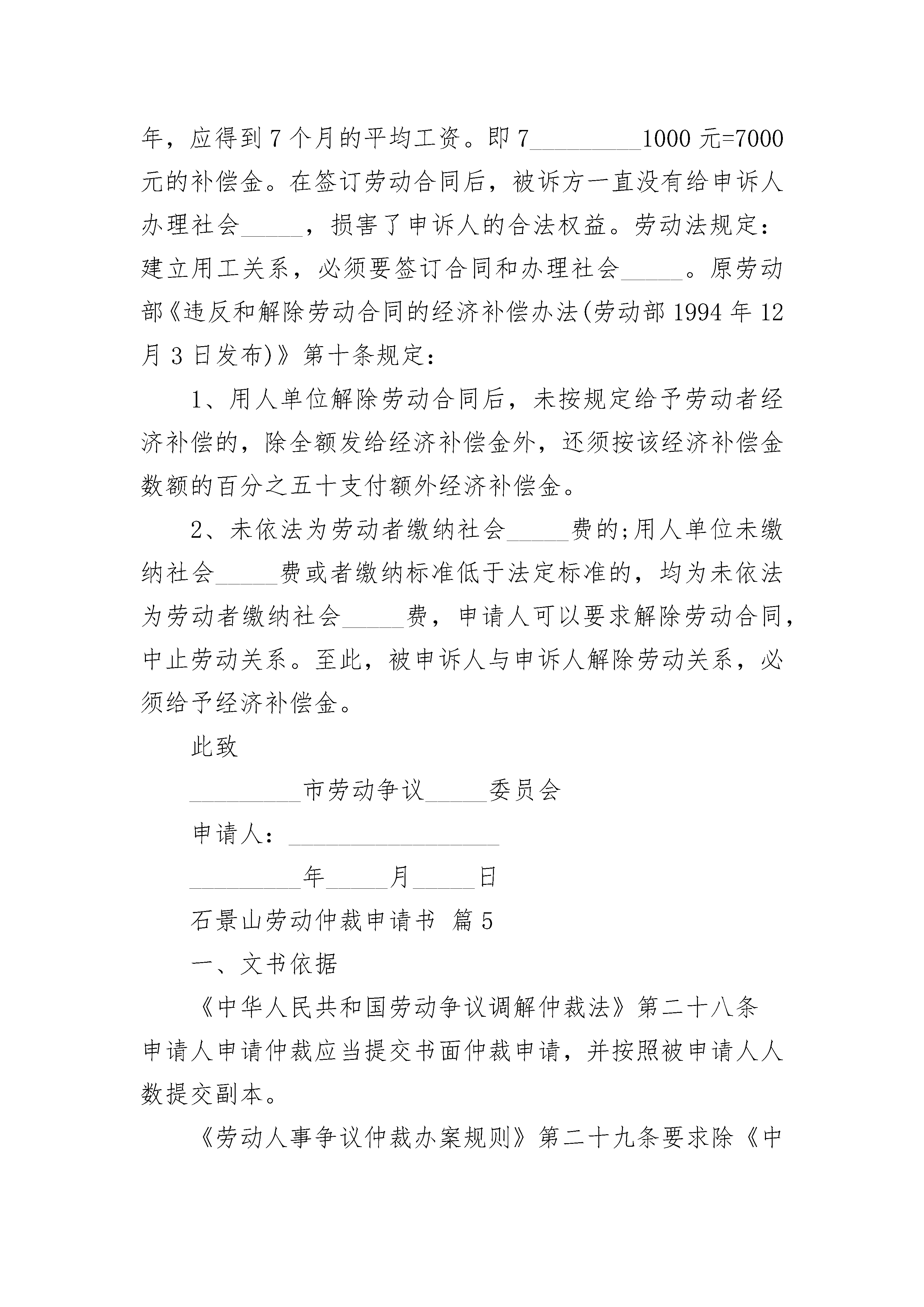 石景山劳动仲裁申请书.docx