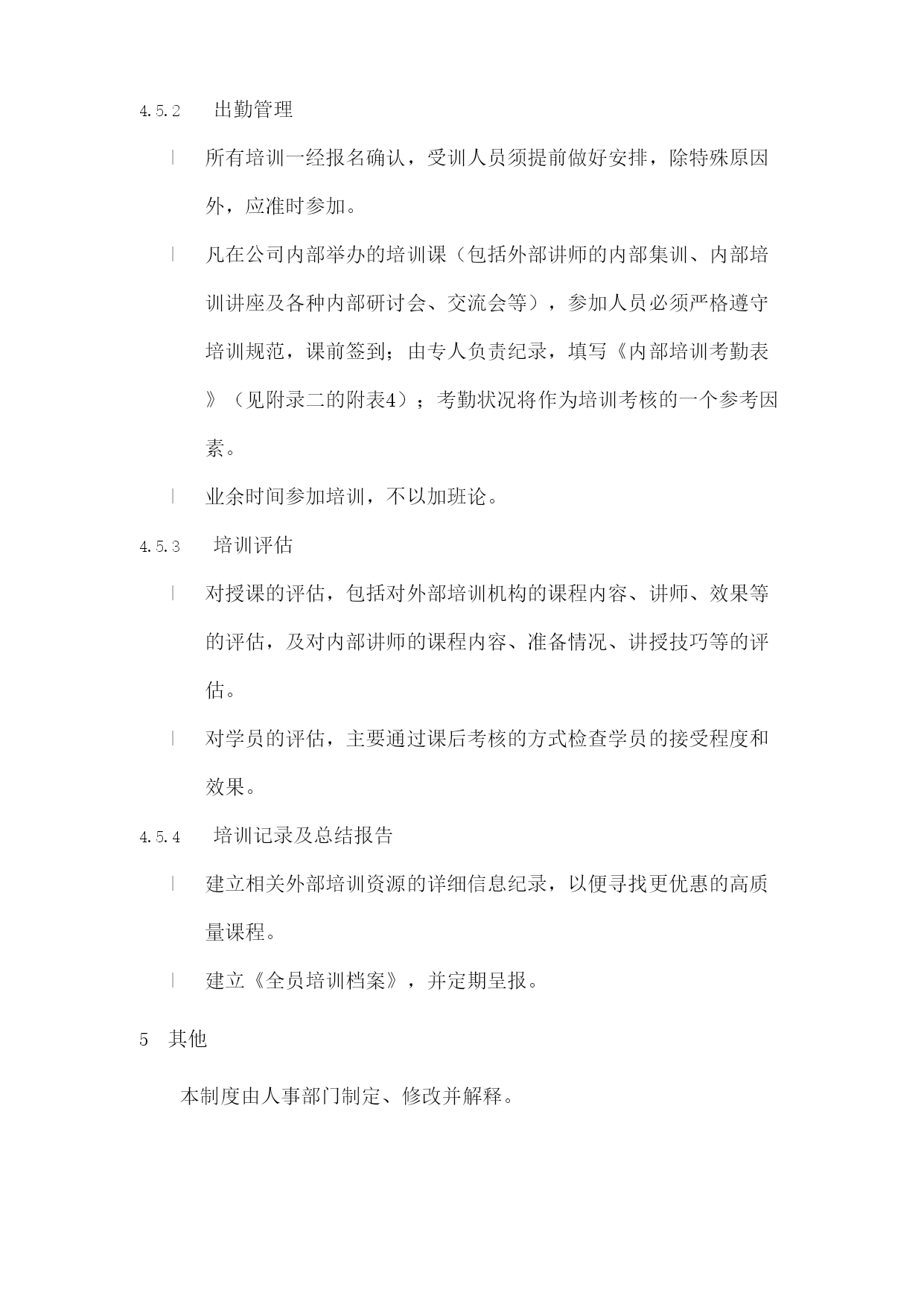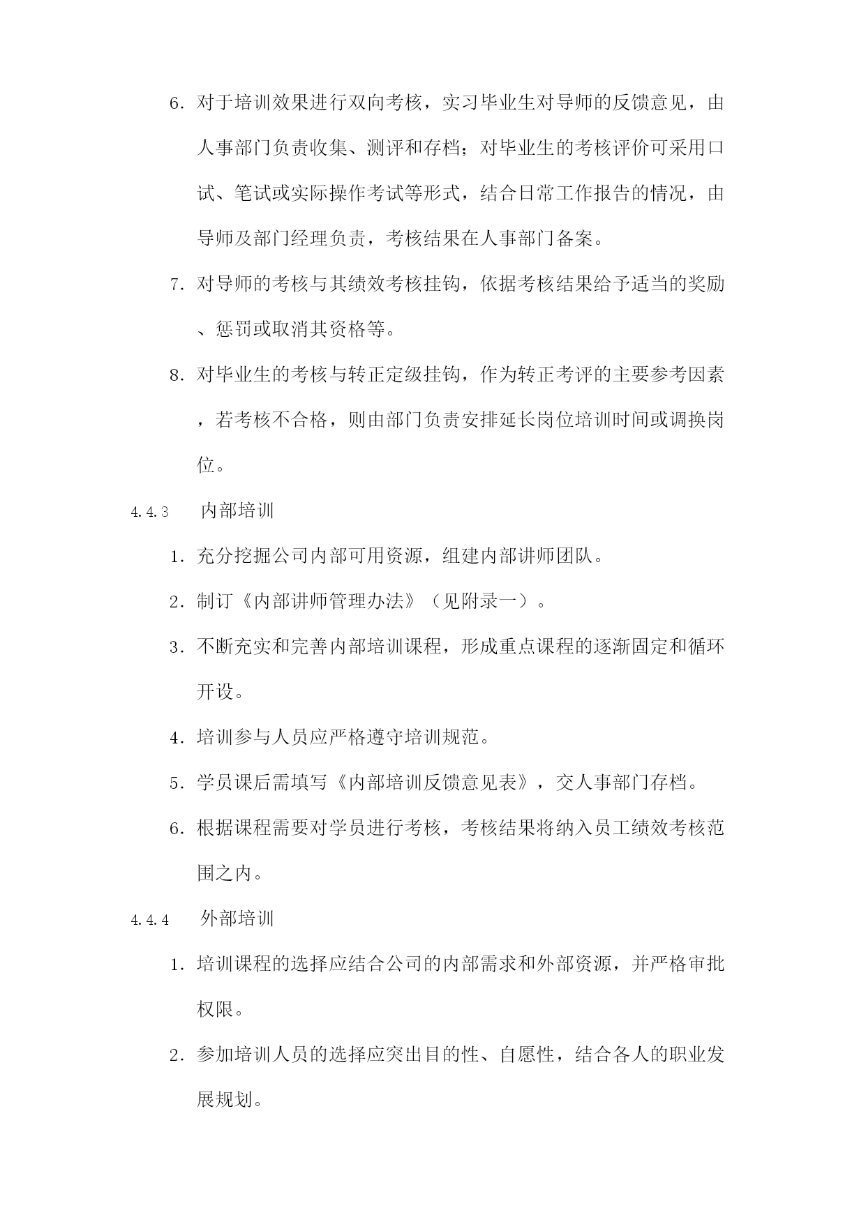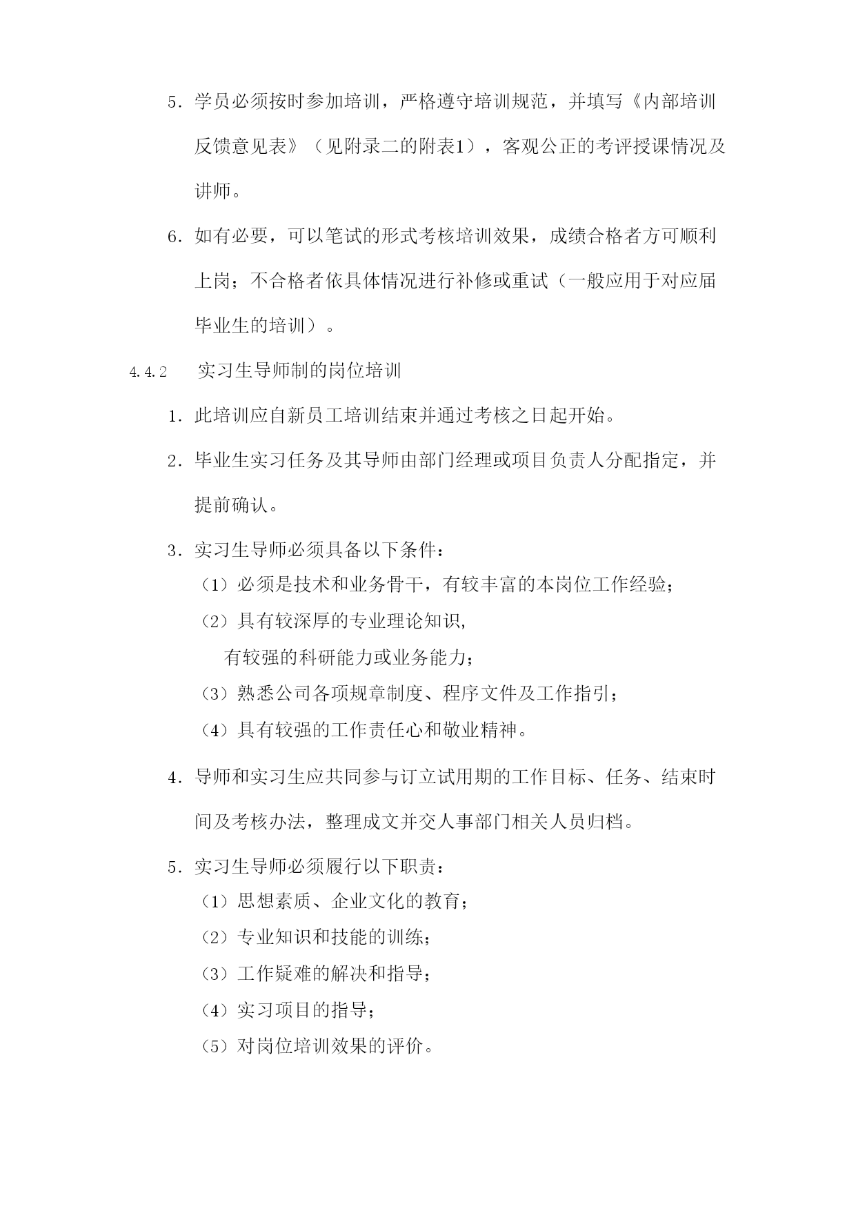 培训管理制度1.目的:为促进和规范公司培训工作持续、系统的进行,通过各级员工在知识、经验、能力等方面的积累、传播、应用与创新,达到提升员工职业技能与职业素质之目的,使之适应公司业务发展的需要。2.原则:以符合业务发展与组织能力提升为基本原则,并适度注意前瞻性和系统性。3.制定依据:3.1公司发展战略3.2公司人力资源规划3。3各岗位说明书中任职资格条件3。4绩效考评后差距评估4.适用范围:本制度适用公司所有培训活动的规划、实施、效果评价等相关的部门与员工。5.制度内容5。1培训需求分析5。1.1需求分析的