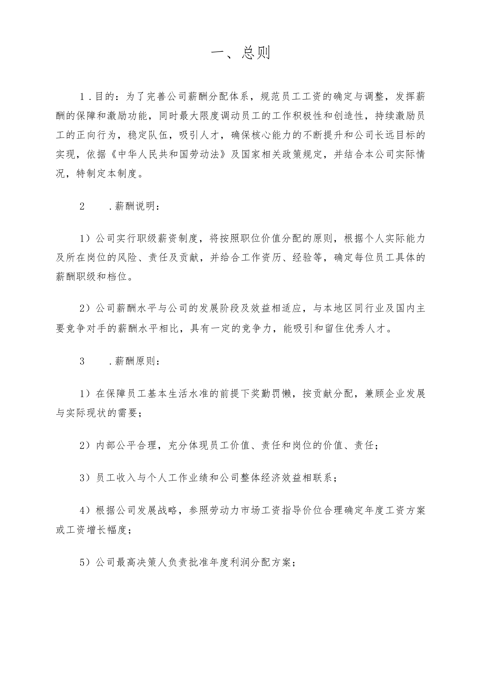 企业薪酬管理规定一.总则第一条按照公司经营理念和管理模式,遵照国家有关劳动人事管理政策和公司其它有关规章制度,特制定本制度。第二条本制度适用于公司全体员工(试用工和临时工除外)。本制度所指工资,是指每月定期发放的工资,不含奖金和风险收入。二.工资结构第三条员工工资由固定工资、绩效工资两部分组成。第四条工资包括:基本工资、岗位工资、技能工资、职务津贴、工龄工资、住房补贴、误餐补贴、交通补贴。第五条固定工资是根据员工的职务、资历、学历、技能等因素确定的、相对固定的工作报酬。固定工资在工资总额中占40%。第六条