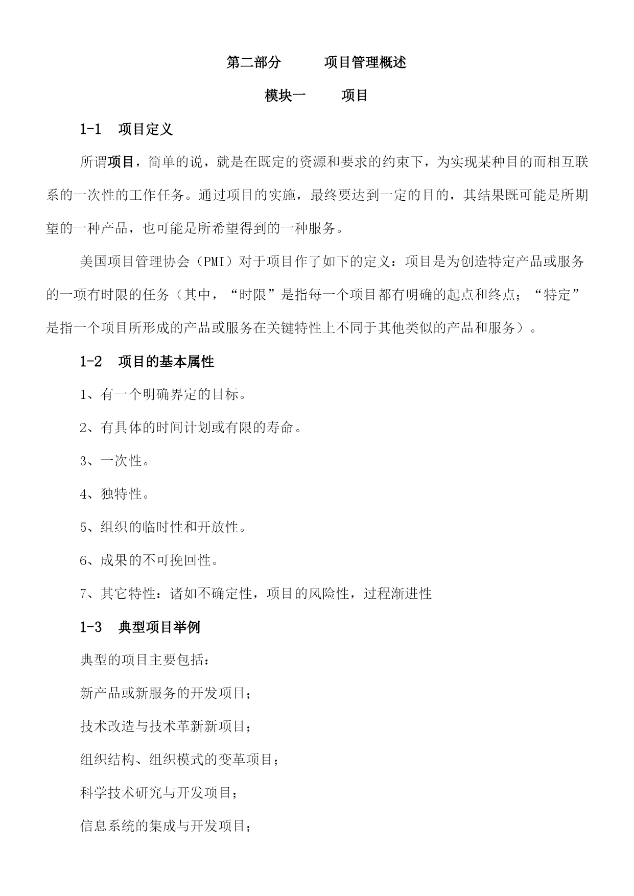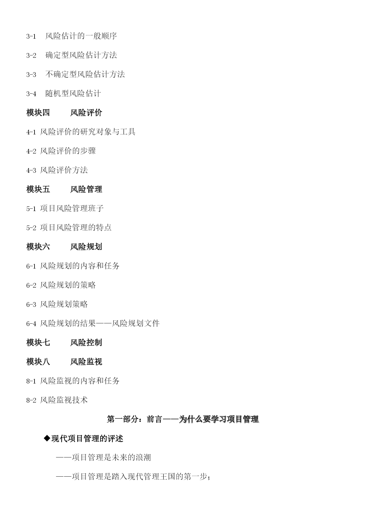 MBA核心课程成功的项目管理SUCCESSFULPROJECTMANAGEMENT2003年2月目录第一部分:前言——为什么要学习项目管理1.现代项目管理的评述2.项目管理是知识经济实现的手段3.学习项目管理的妙用4.项目管理——永不失业的技能5.什么人需要项目管理第二部分:项目管理概述模块一项目1-1项目1-2项目的基本属性1-3典型项目举例1-4项目的分类1-5项目资源1-6项目干系人和当事人1-7制约项目成功的因素1-8项目生命周期模块二项目管理2-1项目管理的定义2-2项目管理的基本特征2-3项目