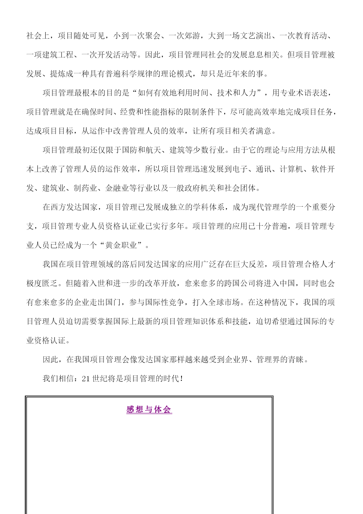 编号:时间:2021年x月x日书山有路勤为径,学海无涯苦作舟页码:第页共NUMPAGES87页第PAGE\*MERGEFORMAT87页共NUMPAGES\*MERGEFORMAT87页MBA核心课程成功的项目管理SUCCESSFULPROJECTMANAGEMENT2003年2月目录第一部分:前言——为什么要学习项目管理现代项目管理的评述项目管理是知识经济实现的手段学习项目管理的妙用项目管理——永不失业的技能5.什么人需要项目管理第二部分:项目管理概述模块一项目项目项