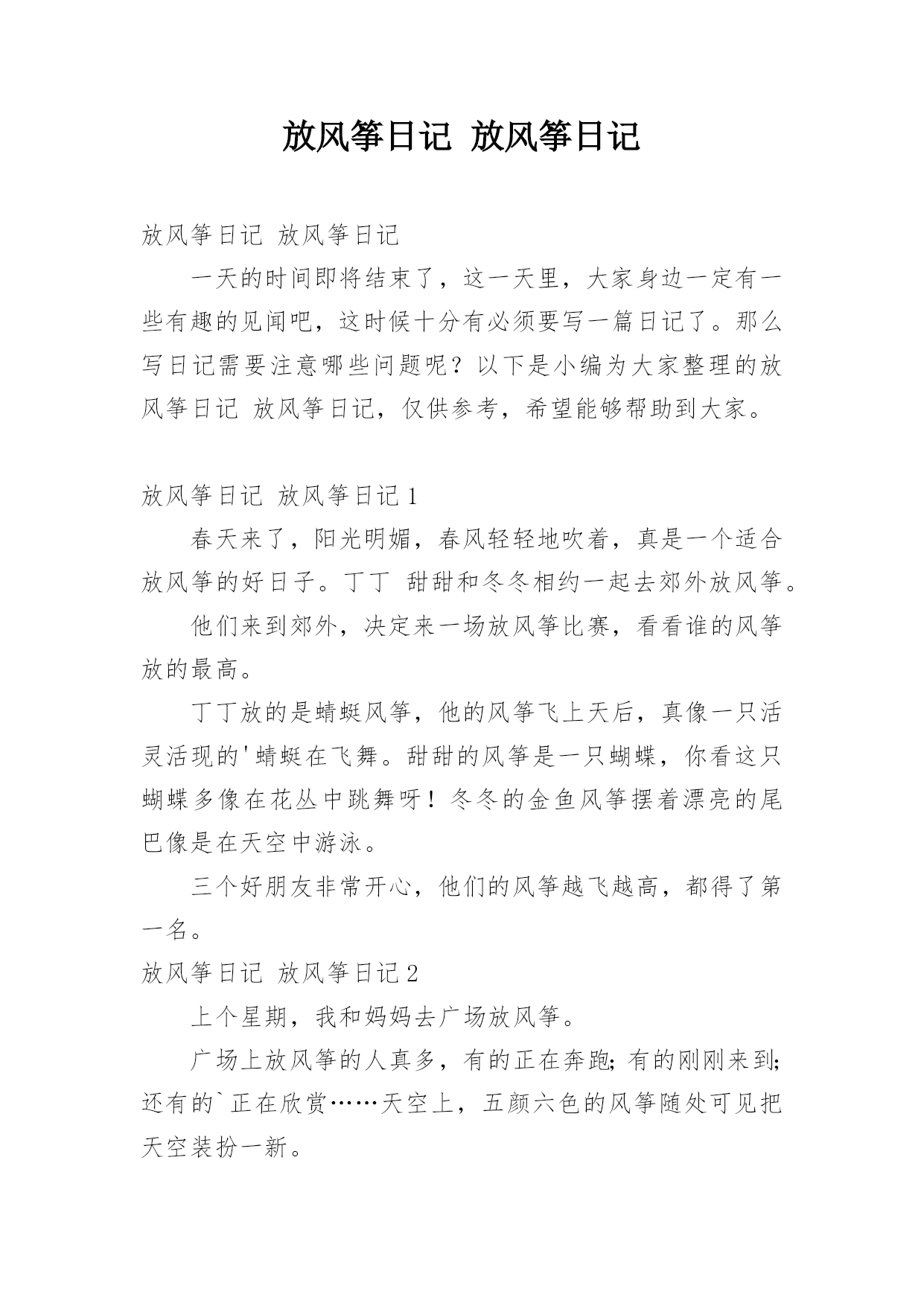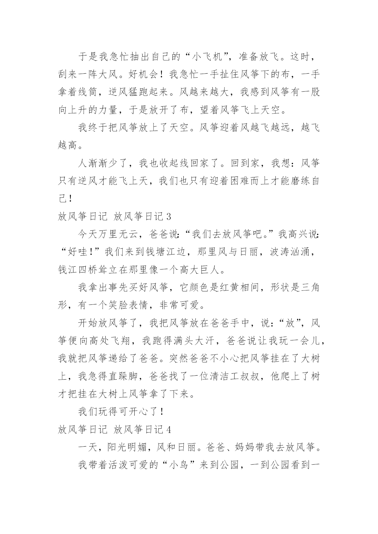 放风筝日记放风筝日记一天的时间即将结束了,这一天里,大家身边一定有一些有趣的见闻吧,这时候十分有必须要写一篇日记了。那么写日记需要注意哪些问题呢?以下是小编为大家整理的放风筝日记放风筝日记,仅供参考,希望能够帮助到大家。放风筝日记放风筝日记1春天来了,阳光明媚,春风轻轻地吹着,真是一个适合放风筝的好日子。丁丁甜甜和冬冬相约一起去郊外放风筝。他们来到郊外,决定来一场放风筝比赛,看看谁的风筝放的最高。丁丁放的是蜻蜓风筝,他的风筝飞上天后,真像一只活灵活现的'蜻蜓在飞舞。甜甜的风筝是一只蝴蝶,你看这只蝴蝶多像在