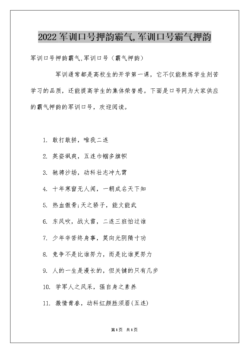 2022军训口号押韵霸气,军训口号霸气押韵.docx