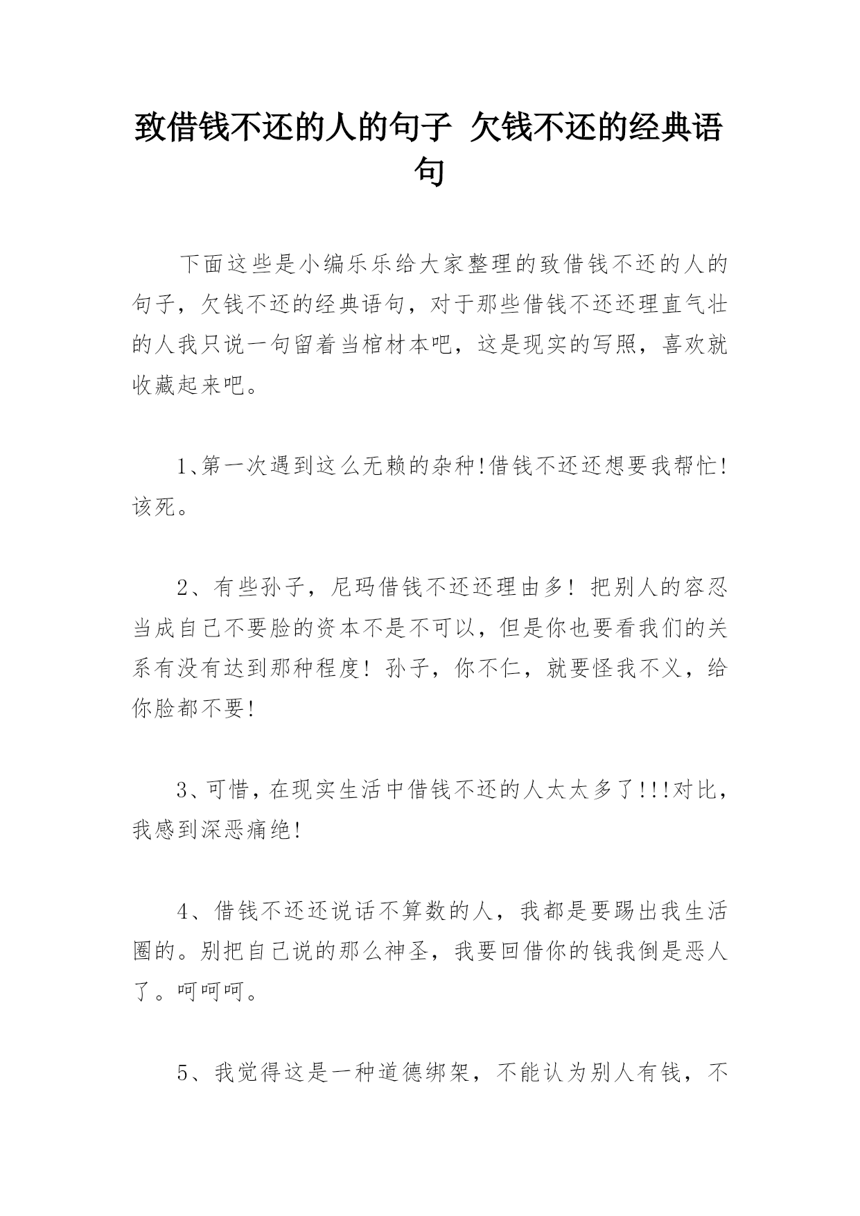 致借钱不还的人的句子 欠钱不还的经典语句.docx