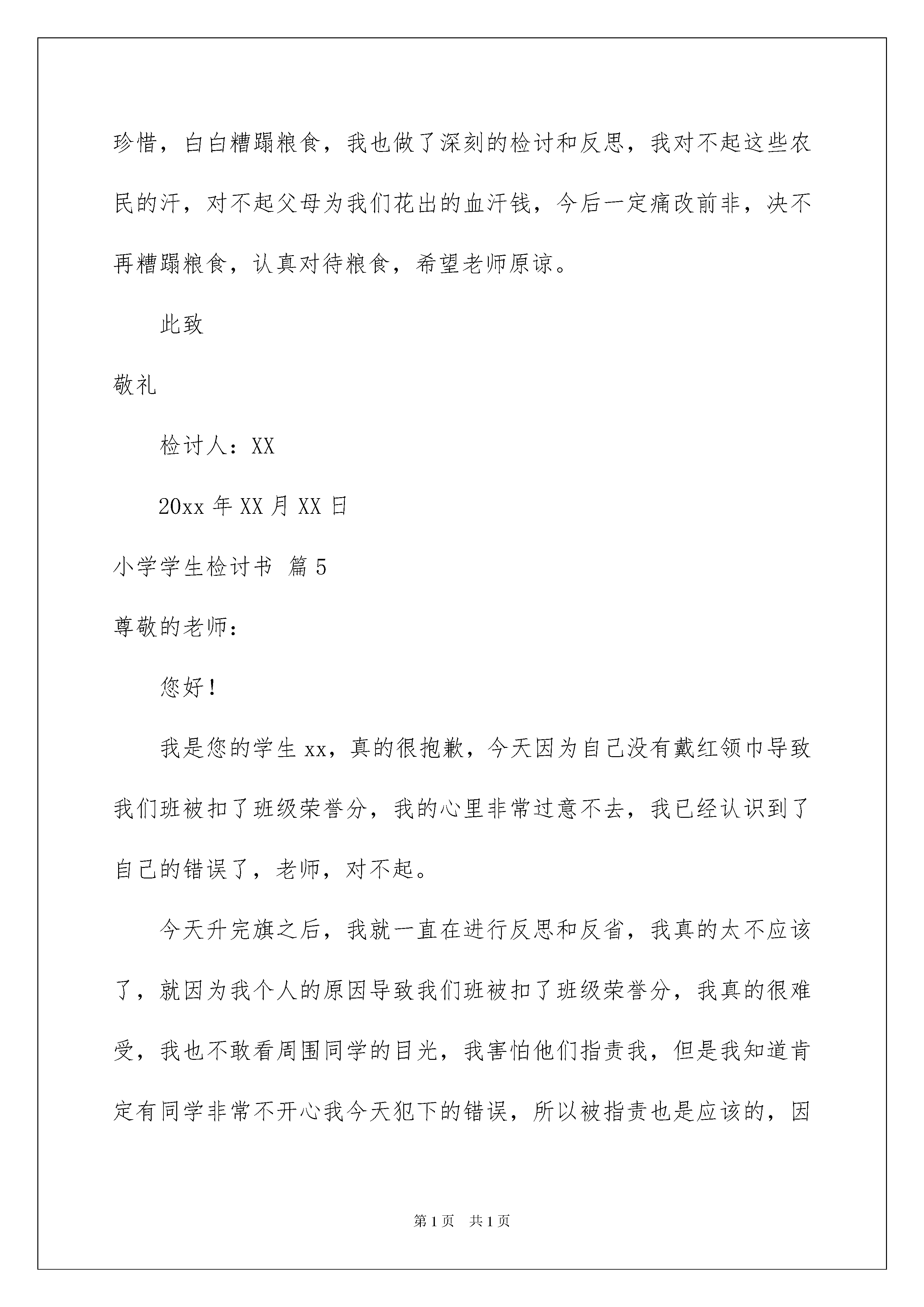 2022小学学生检讨书范文合集十篇小学学生检讨书范文合集十篇在某件事出现失误后,为了避免再次出现相同情况,就需要写一份自我检讨书好好进行自我反省,请注意写检讨要把原因讲清楚。想写检讨书却不知道该请教谁?以下是我为大家整理的小学学生检讨书10篇,仅供参考,希望能够帮助到大家。小学学生检讨书篇1亲爱的爸爸妈妈:你们好!我很抱歉,今天我没有去学校上课,我知道自己这样的行为肯定会遭到你们的批评,所以我都不敢回家,我在经过你们的一番思想工作之后,我才知道自己这样的行为是多么的不理智,多么的让老师、让你们担心,我知错了,爸爸妈妈对不起。今天是我去上小学的第二天,在经历过昨天第一天的上学之后,我突然对学校充满着恐惧,老师看起来非常的凶,说话也是非常的有威严,像极了爸爸生气之后批评我的样子,让我有点害怕。班上的同学也是,上个课都好吵的,没有一点上课的氛围,我感觉我在家看书都比在学校上课学的东西要多,特别是我同桌,上课吃定西、玩玩具,还要我跟他一起玩,我不愿意就骂我,因此我感觉同学们都十分的不好相处,我今天一想到我又要跟那个同学坐在一起,我顿时就产生了不去学校的想法,我当时都已经走到校门口了,但是我转了个弯,去了学校附近的一个公园,我就在那看书看了一个上课,后来我就被你们给找到了,我现在还忘不了妈妈你的脸上挂着泪痕,写满了紧张和害怕,我知道我让你们担心了,就因为我不考虑后果的一个决定,就导致你们全员出动来找我,我本来是打算等到放学那会再自己回家的。我回到家后也是总结了一下我不去上学的原因,我认为自身存在着以下几点:1、把同学们一概而论了,虽然说我现在的同桌是很喜欢闹腾也非常的蛮不讲理,但是并不意味着所有的同学都是这样的,我都还没有主动的去接触他们了解他们,我不能就这么给他们下了定论。2、与人交流相处能力欠佳,我在幼儿园的时候就是如此,在班上的存在感最低,但是我也有了两个很要好的朋友,回想起来好像都是他们主动的来认识我,我们才慢慢的熟识的,我也应该在小学主动去结识同学。3、不喜欢跟老师表达问题,一样的道理,我还没跟老师交流,但从表面我就认为了他是一个很不好相处的一个人,本来我在遇到这样一个同桌的时候,我完全可以跟老师提出意见,换一个座位的,但是我却只字未提,甚至都没有去找过老师。爸爸妈妈你们放心吧,我不会再出现今天这种逃学的现象了,从今天起我每天都要按时去学校上学,认真学习知识,友善的结识朋友,但凡我在学校里遇到什么事情,我一定第一时间跟你们或者跟老师汇报,绝对不会再这么独自解决了,绝对不会再让你们担心了。此致敬礼检讨人:xx20xx年x月x日小学学生检讨书篇2尊敬的老师您好我是一年级xx班的xx同学,因为我在昨天的语文课上没有带书的这件事情,所以我来给某某老师写了这篇检讨书。一是在老师对我进行思想教育后,我反省到了自己对待学习不上心和不负责任的态度。二是为了来向老师表达我在反省过后已经知错的心。希望老师能在这份检讨书中读出我的愧疚,读出我已经知错悔改的心。xx月xx日,也就是前天,我在回到家里,我在写作业的时候,我弟弟一直在我旁边拿着手机打游戏。然后我就一直被他手机里面的游戏所吸引,然后我就想着赶紧写完作业就可以玩游戏了。所以在我任务式的完成了我的作业之后,就把书本丢在一旁没有管,马上拿起手机就跟我弟一起玩起了游戏。一直玩到我们要睡觉的时候,我们才没有继续玩。因为那个时候已经很晚了,所以,我也没有记起把书桌上的书本放进书包里面,就去睡觉了。等到第2天醒来的时候,我已经睡过了头。由于赶着时间去学校,我都没有看见我,书桌上的书本还没有装进书包里,一把抓起我的书包就往学校里面赶。等到了学校,来到教室之后,我准备打开书包,拿出语文书参加语文早读的时候。我才恍然记起来,我的语文书还放在家里的书桌上,并没有带到学校里面来。当教室里响起朗朗的读书声,同学们都在拿着自己手里的语文书投入在自己背诵课文的世界里。而我只好一个人呆坐在座位上不知所措,又怕老师发现我没有带书,所以只好拿了一本数学书来代替语文早读。但是等到老师走到我旁边的时候,最后还是发现了我没有带书的这件事情。然后就在全班同学的面前,批评和教育了我一顿,并罚我站在教室后面反思一节课。通过这次没有带书的教训,我已经意识到了自己对待学习不认真的态度。在这次过后我也一定会改正过来。上课如果连最基本要用到的书本都没有带过来,那还怎么听懂老师的上课过程?所以我这种表现是对待学习极度不上心的一个表现。我以后,在家完成作业的时候,不管是身边存在着多大的诱惑,我也一定会全心全意的投入到写作业的状态中,而且在写完作业之后,我一定会养成把作业写完就放进书包的好习惯,