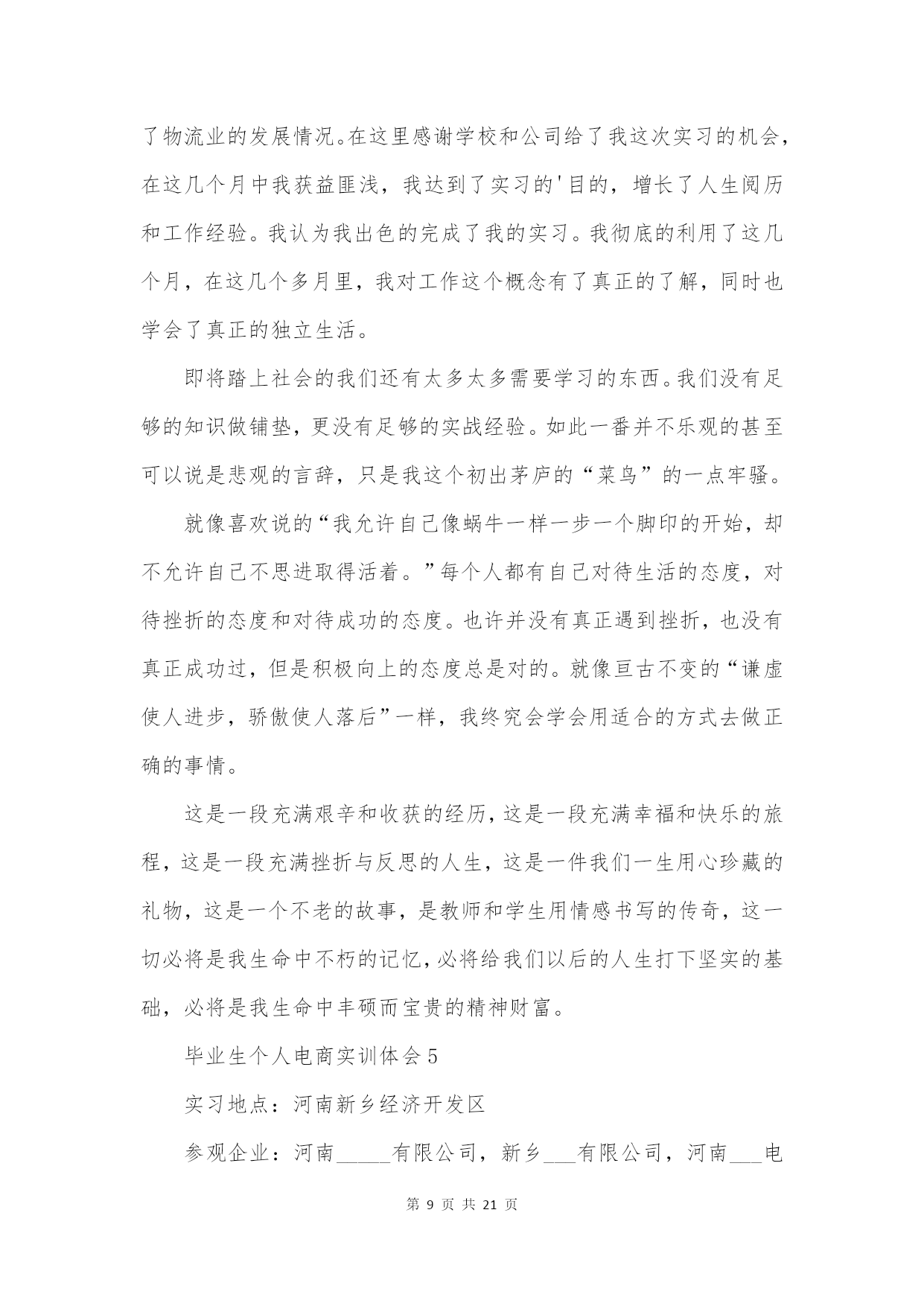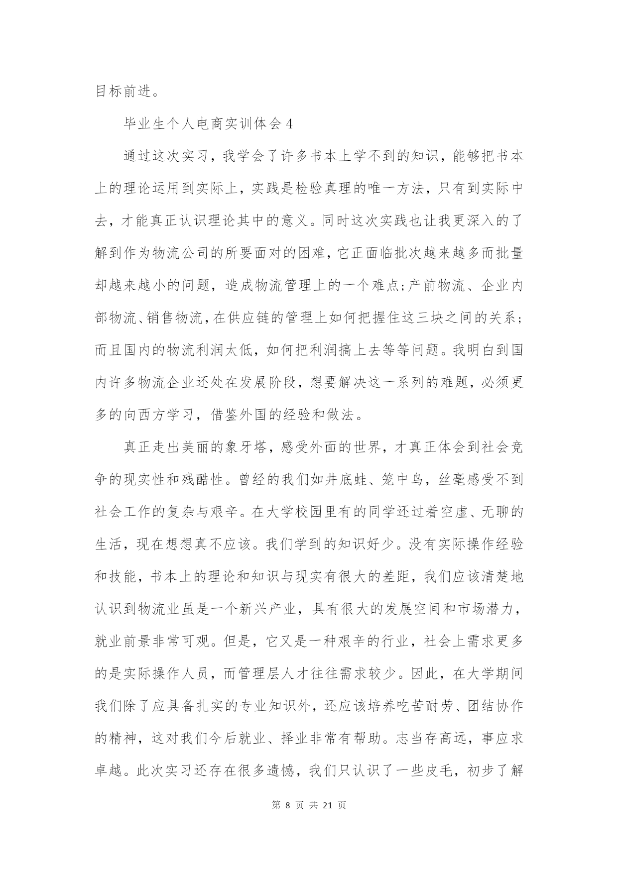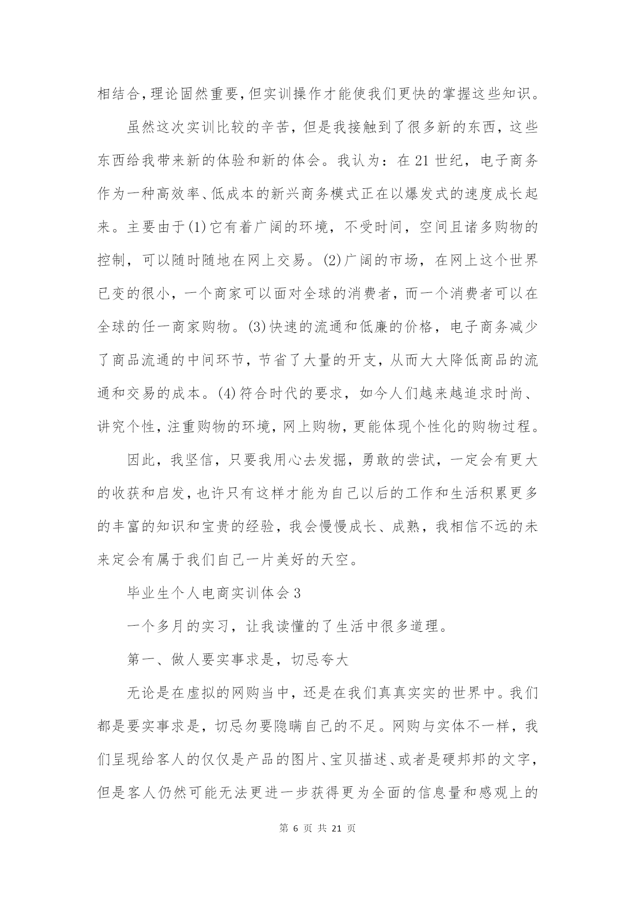 第PAGE\*MERGEFORMAT21页共NUMPAGES\*MERGEFORMAT21页毕业生个人电商实训体会10篇(实用版)编制人:__________________审核人:__________________审批人:__________________编制单位:__________________编制时间:____年____月____日序言下载提示:该文档是本店铺精心编制而成的,希望大家下载后,能够帮助大家解决实际问题。文档下载后可定制修改,请根据实际需要进行调整和使用,谢谢!并且,
