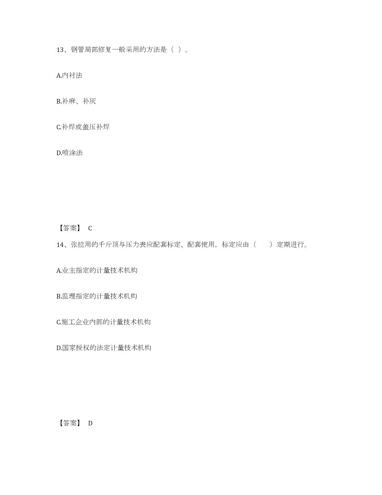 2023年度四川省二级建造师之二建市政工程实务过关检测试卷B卷附答案一单选题(共60题)1、施工技术资料应有()签署的意见或监理单位对认证项目的认证记录。A.项目部B.设计单位C.建设单位D.质量监督部门【答案】C2、关于工程降水说法正确的是()。A.集水明排降水深度<2m,适用于粉土、粉砂B.可以采用轻型井点法来降承压水C.滤水管要埋入含水层内,并且比挖基坑底深0.5mD.管井的滤管可采用无砂混凝土滤管、钢筋笼、钢管或铸铁管【答案】D3、当水泥土强度没有充分形成时,表面遇水会软化导致沥青面层()。A.横