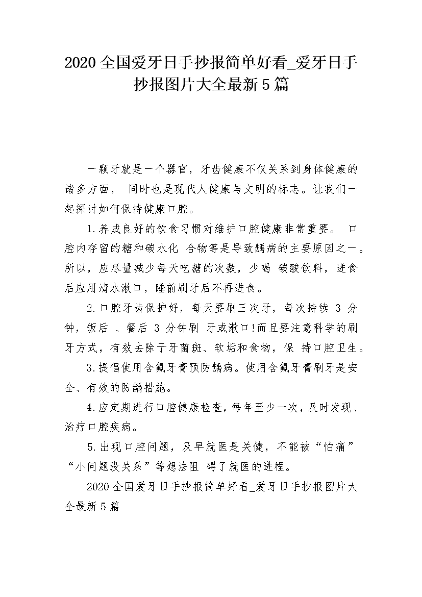 2020全国爱牙日手抄报简单好看_爱牙日手抄报图片大全最新5篇.docx