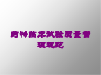 药物临床试验质量管理规范(GCP)主要内容:1、药品临床研究的监管规范2、药品临床试验的分期3、GCP的核心和基本原则4、与临床试验相关的部门及其职责5、临床试验中存在的主要问题6、临床试验流程图药品临床研究的监管规范《中华人民共和国药品管理法》《药品临床试验质量管理规范》(GCP)《药品非临床研究质量管理规范》(GLP)《药品研究实验记录暂行规定》《药品研究和申报注册违规处理办法》《药品研究机构登记备案管理办法》(现备案2000家)《药品临床研究若干规定》《药物临床试验机构资格认定办法》(待发布)《药品