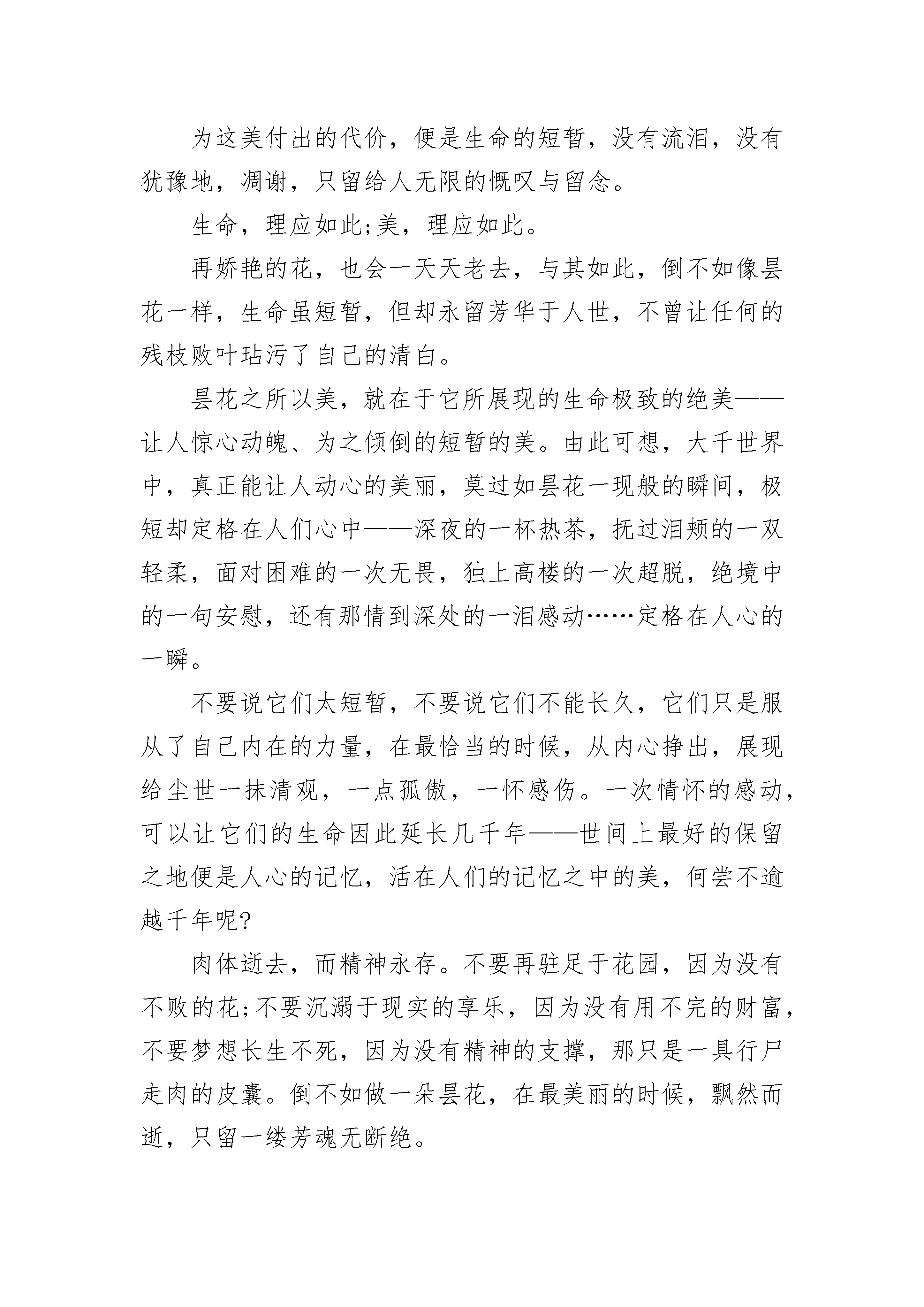 关于遗憾也美话题作文人生一世,草木一秋。人生有着许许多多的美与好,火热的青春,能激发无穷的力量,刷新出美丽的图景。欣欣的绿草,能为大地增添活力,能给生活带来希望,然而,青春终究是要逝去的,绿草最终也会凋零,人生在许许多多的美丽背后,也毫不例外地存在着遗憾。然而遗憾又何尝不是美呢当青春不再,年老力衰之时,为往昔的美好感到甜蜜,不正是美之所在吗倘若永远青春,试问那回味甘甜的美还会存在吗因而,人生中,遗憾也是一种美。记得某位哲人说过:没有遗憾的人生才最遗憾。《老人与海》中,尽管老人最后只能拖回鱼骨,可正是这没拖