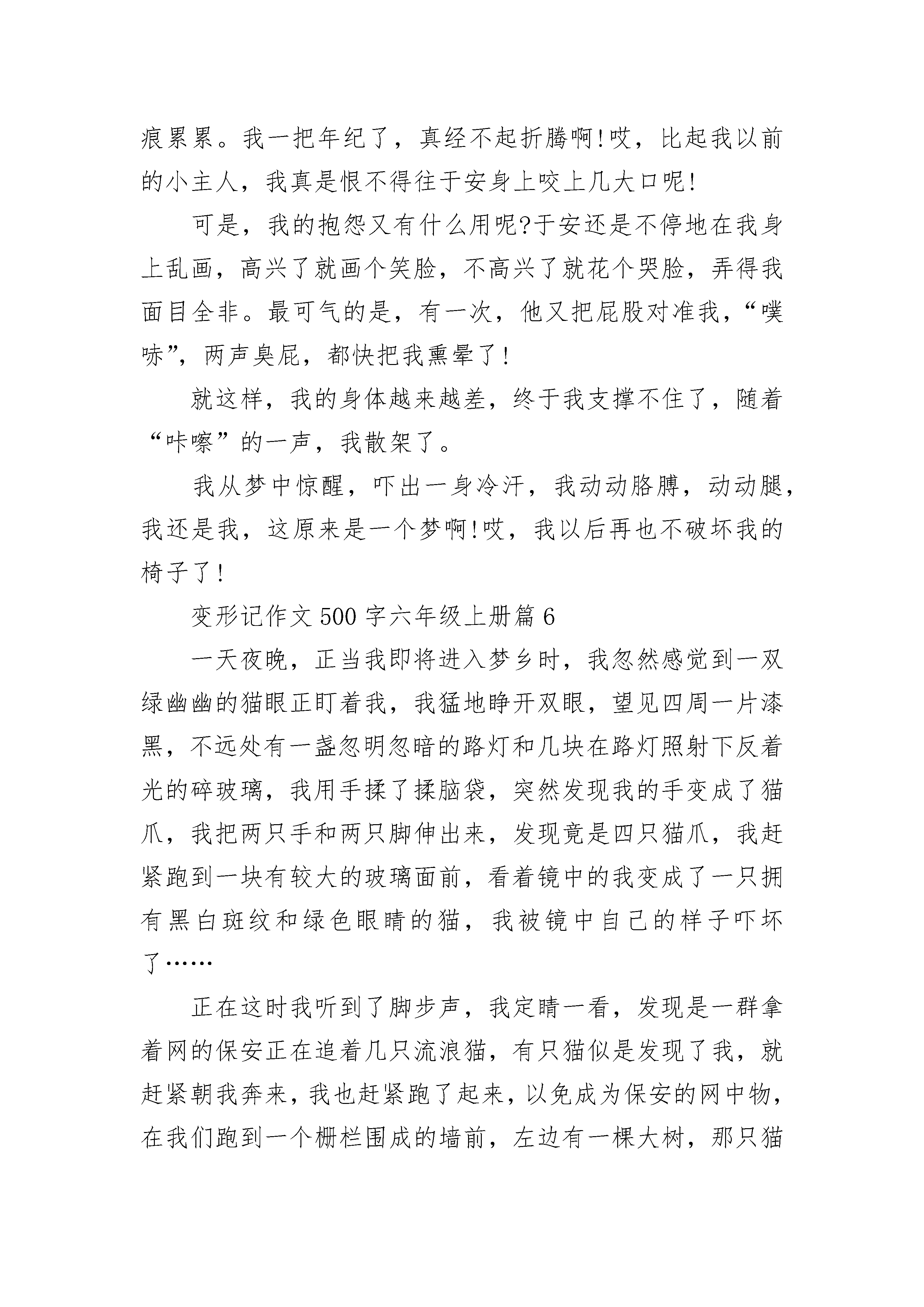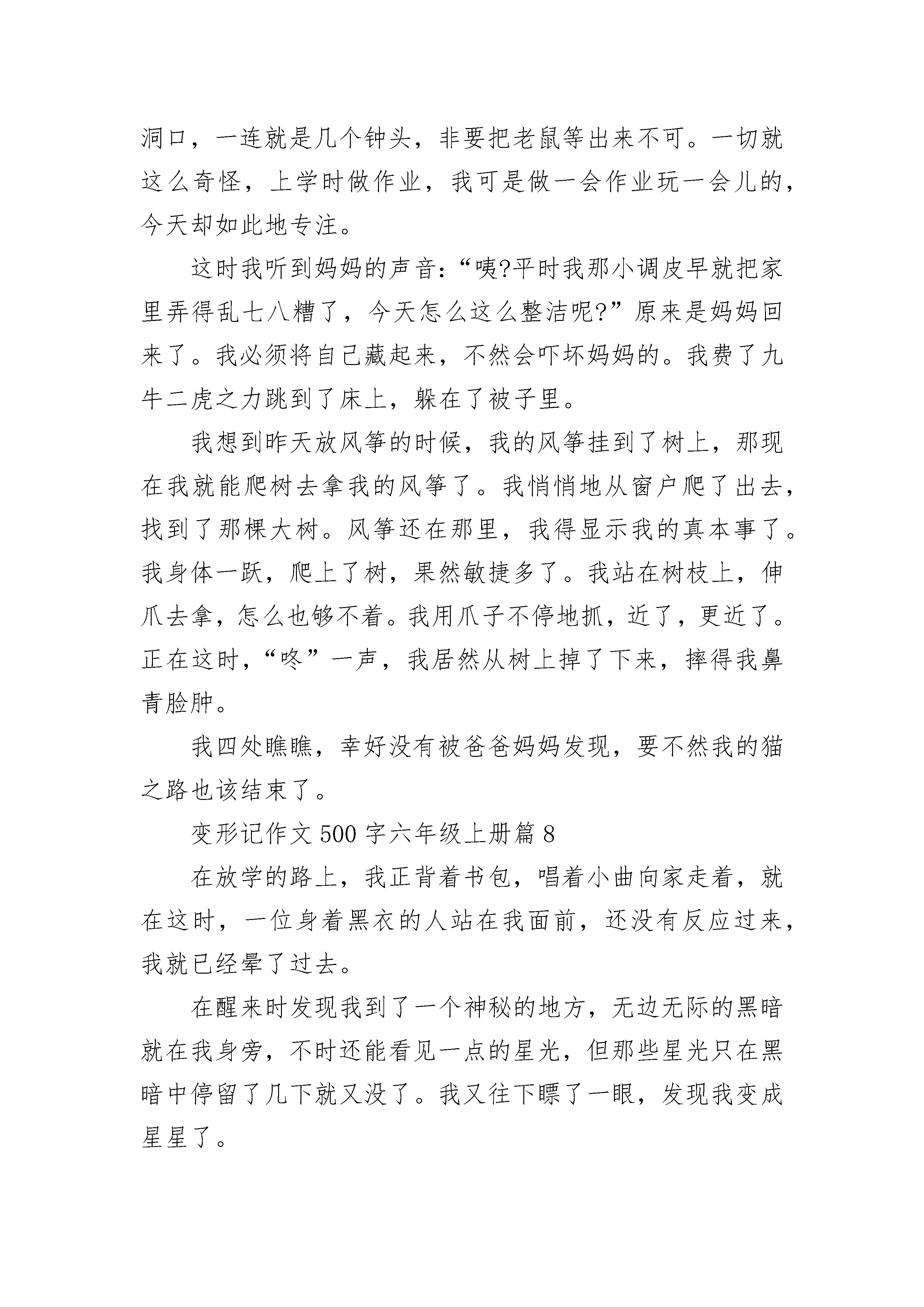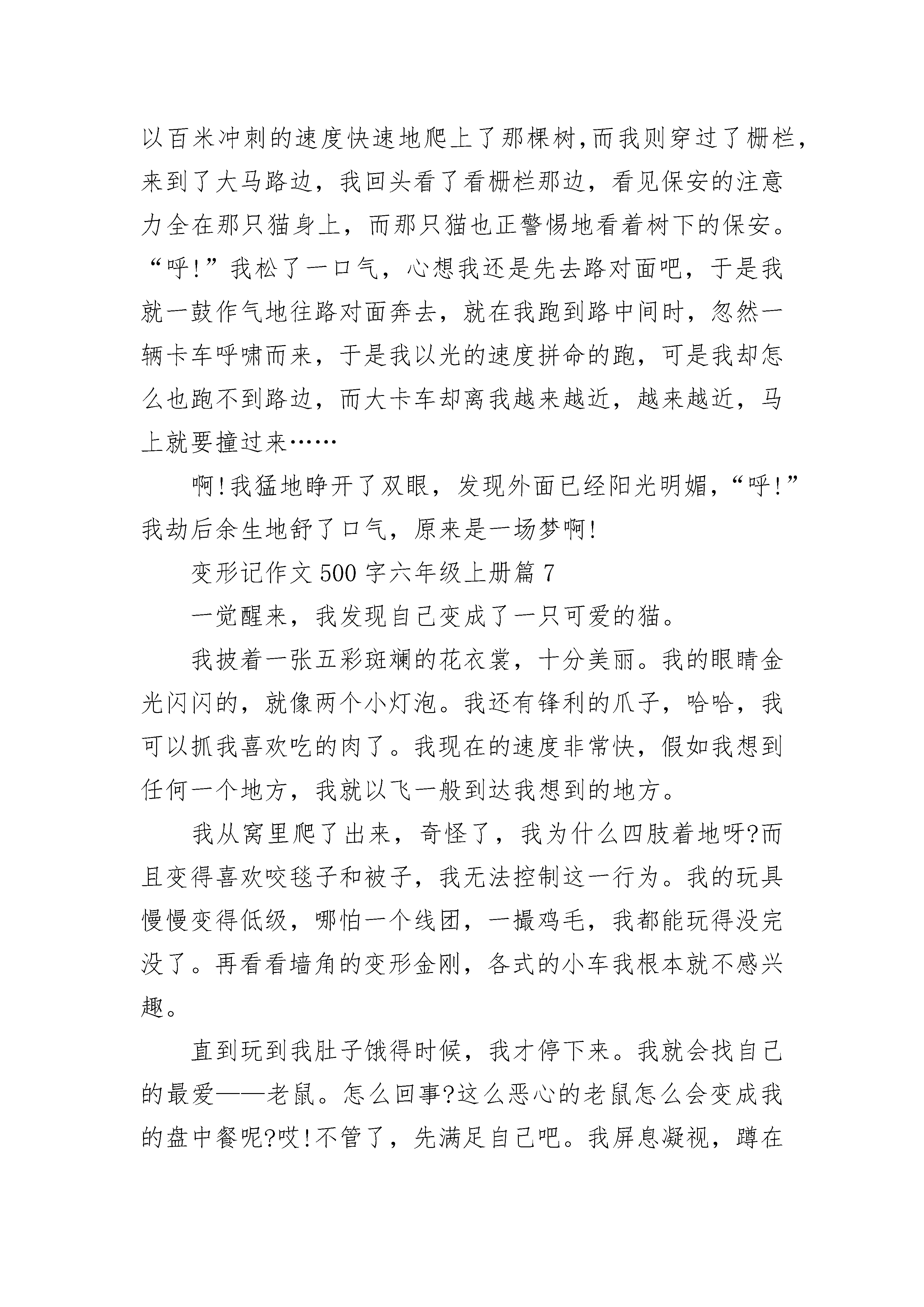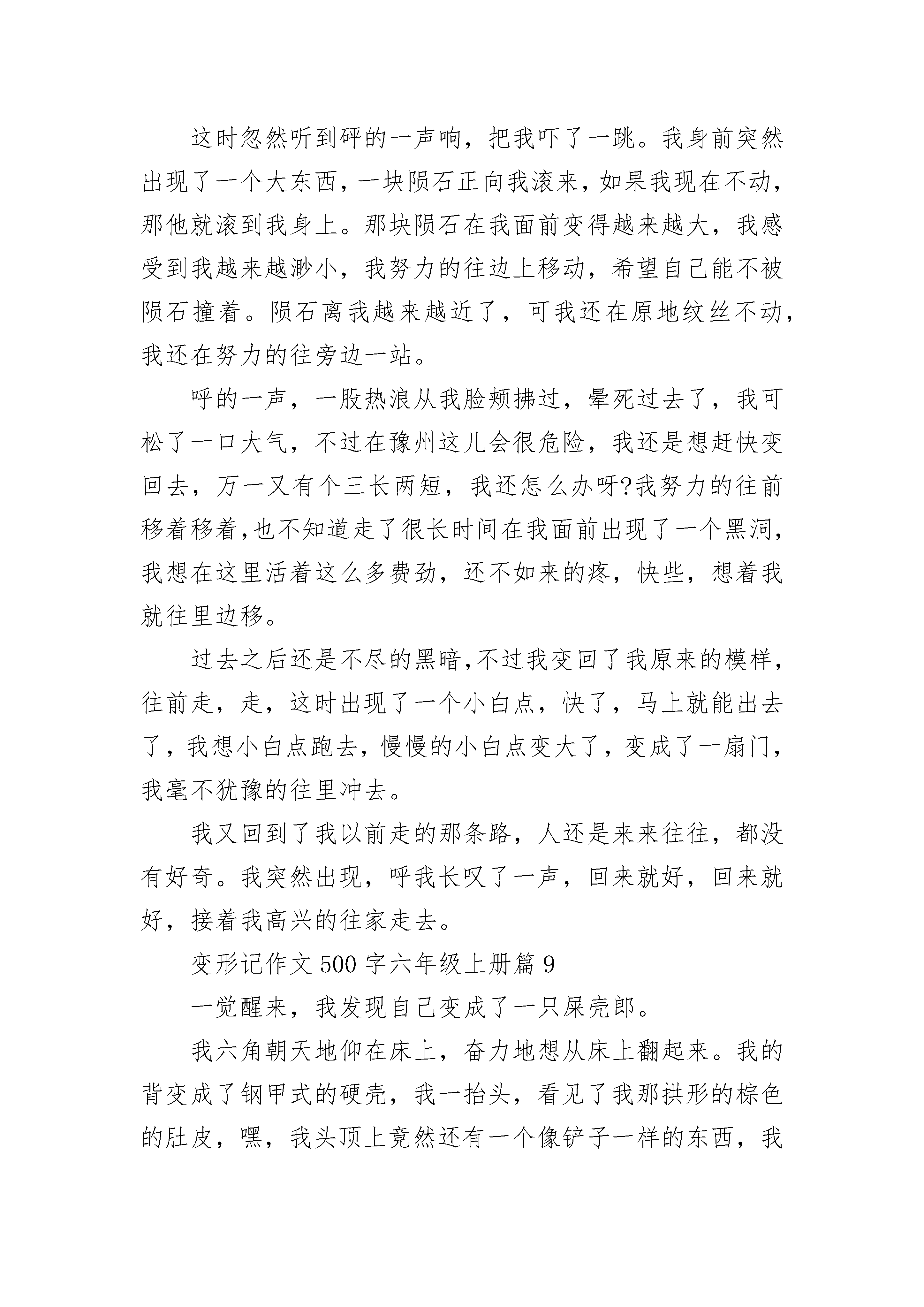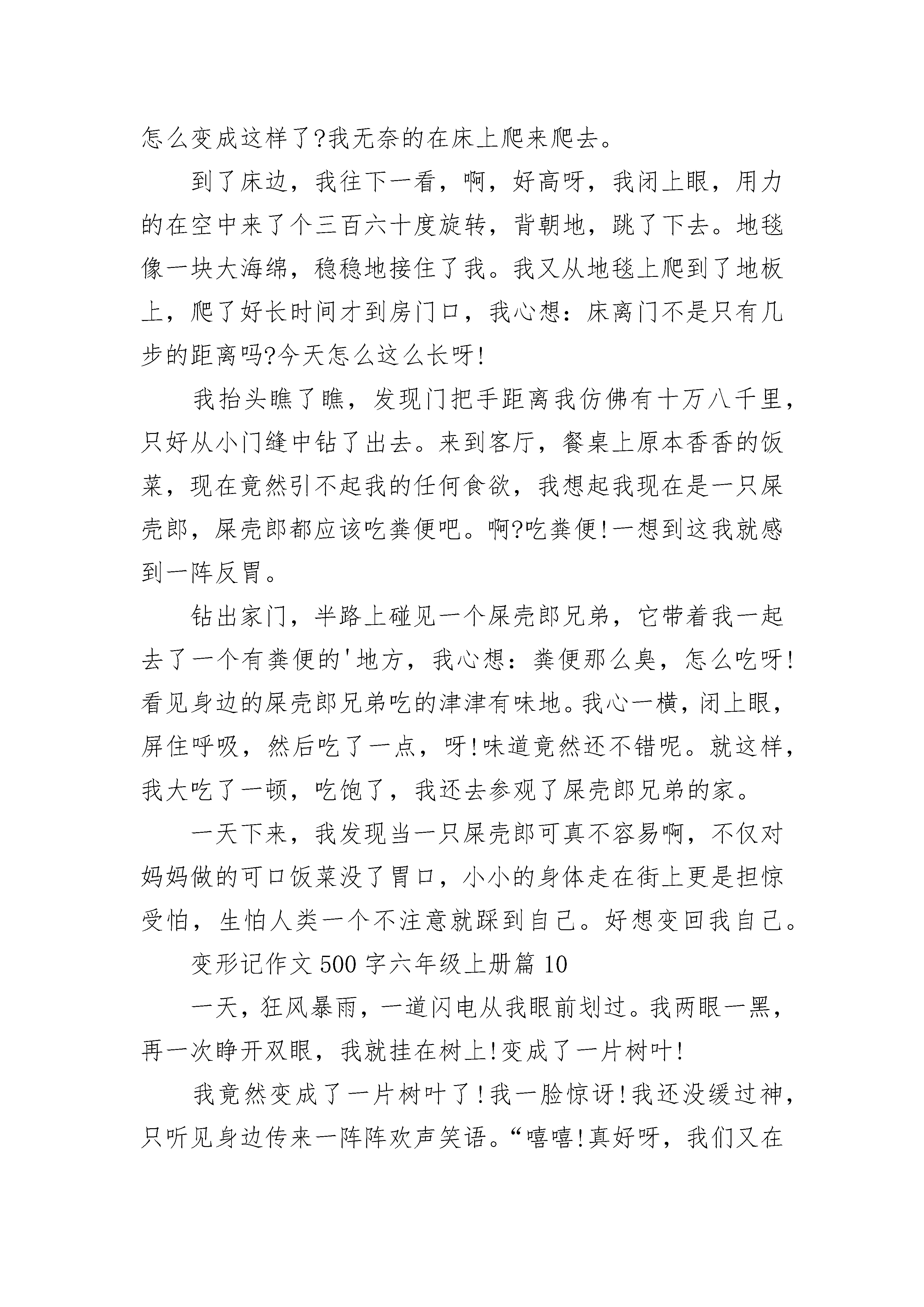 变形记六年级上册作文范文作文是经过人的思想考虑和语言组织,通过文字来表达一个主题意义的记叙方法。那么你知道变形记的作文怎么写吗?以下是小编整理的变形记六年级上册作文范文,希望可以提供给大家进行参考和借鉴。变形记六年级上册作文范文篇1一天,天上突然下起了大雨,雷声阵阵,我两眼一花,当我再次睁开眼睛的时候,世界改变了,我变成了一只猪,我很是意外。我因为变成猪而欣喜万分,可以像电影里的猪一样整天自由自在的任意玩耍了。我开开心心地吃着那猪圈里的美味猪食,和喝那甘甜的山泉水,吃饱了就去睡觉了。很是自在。正在我开心地