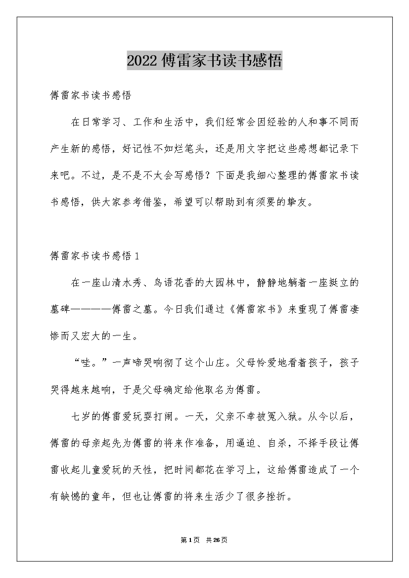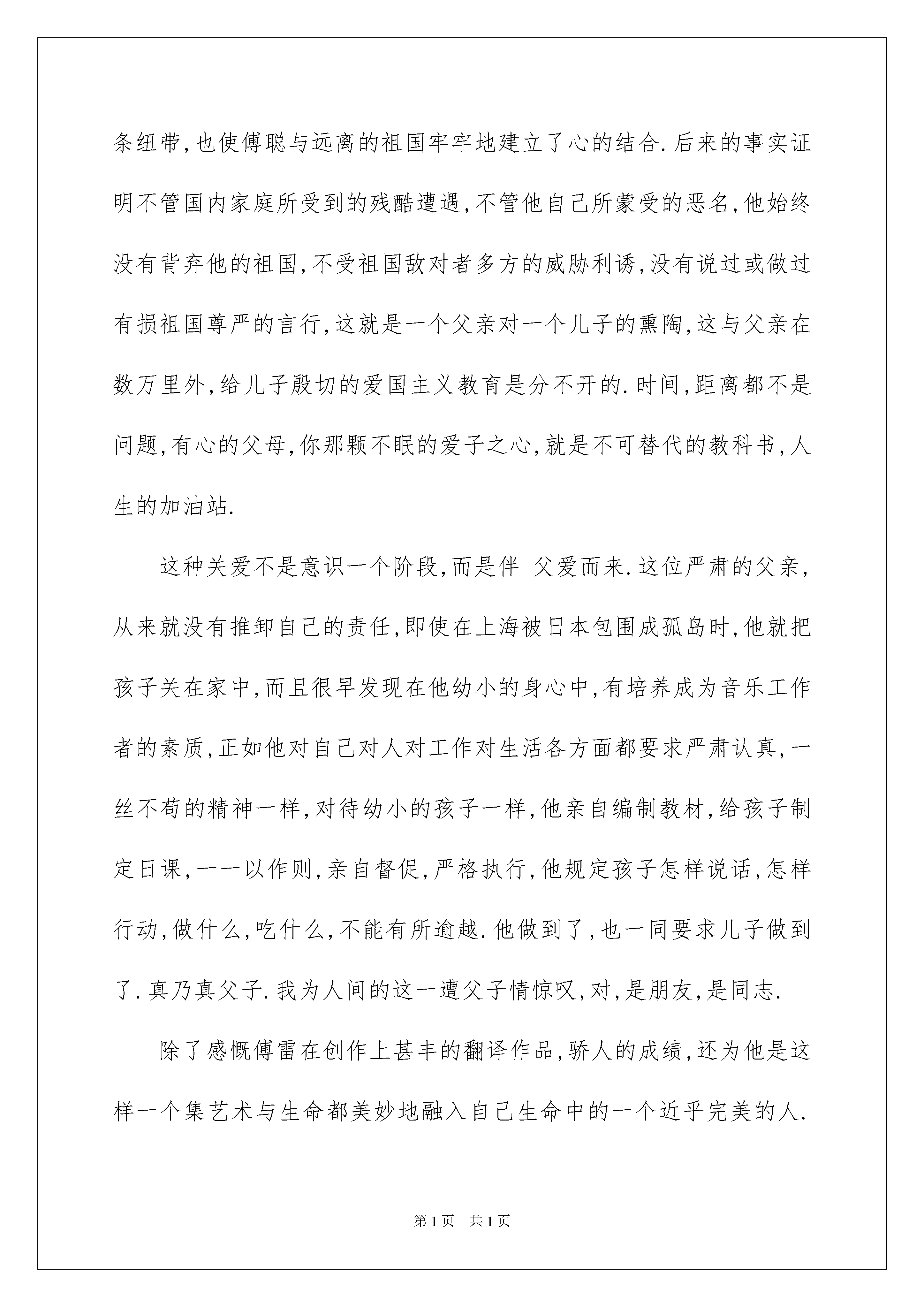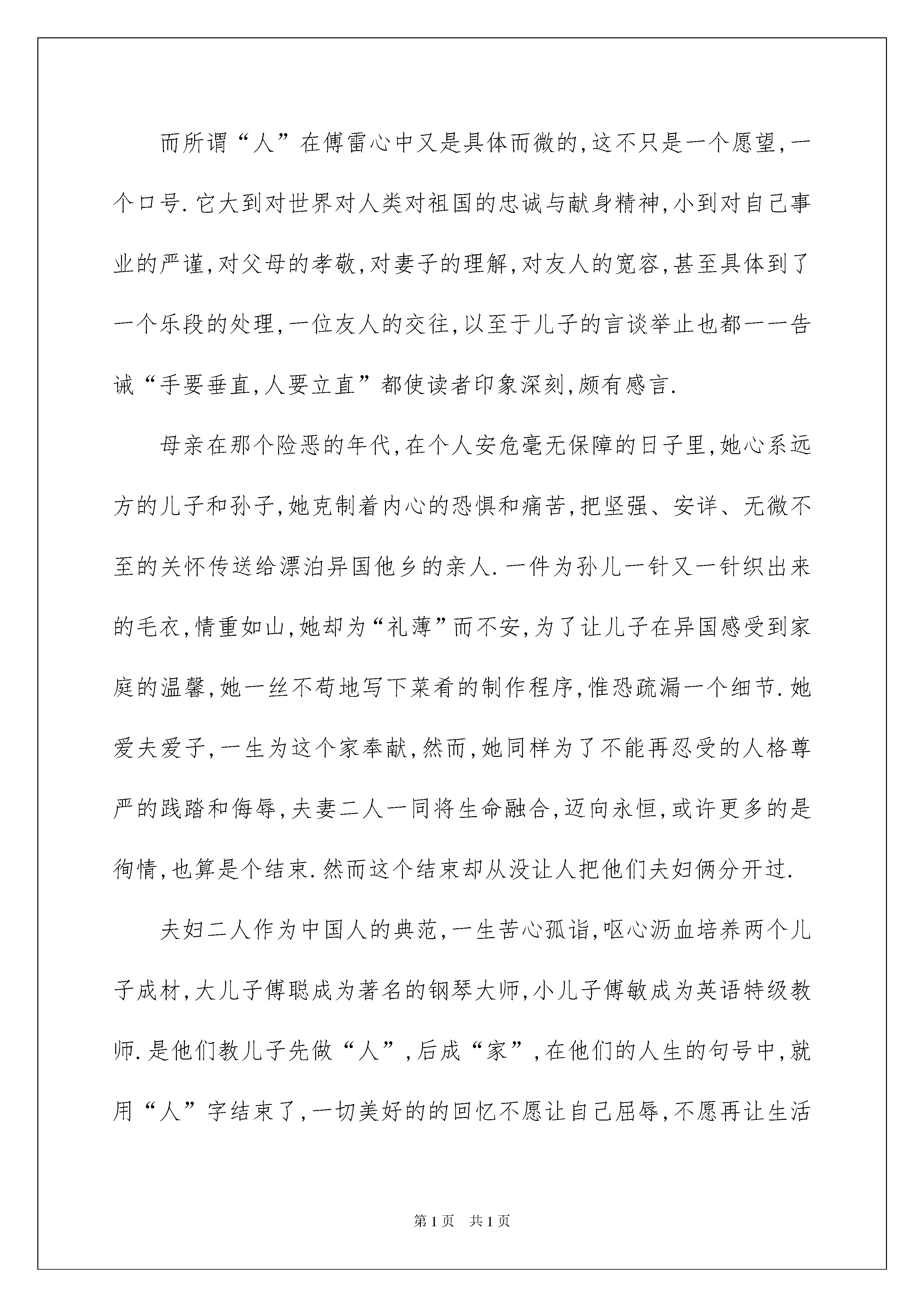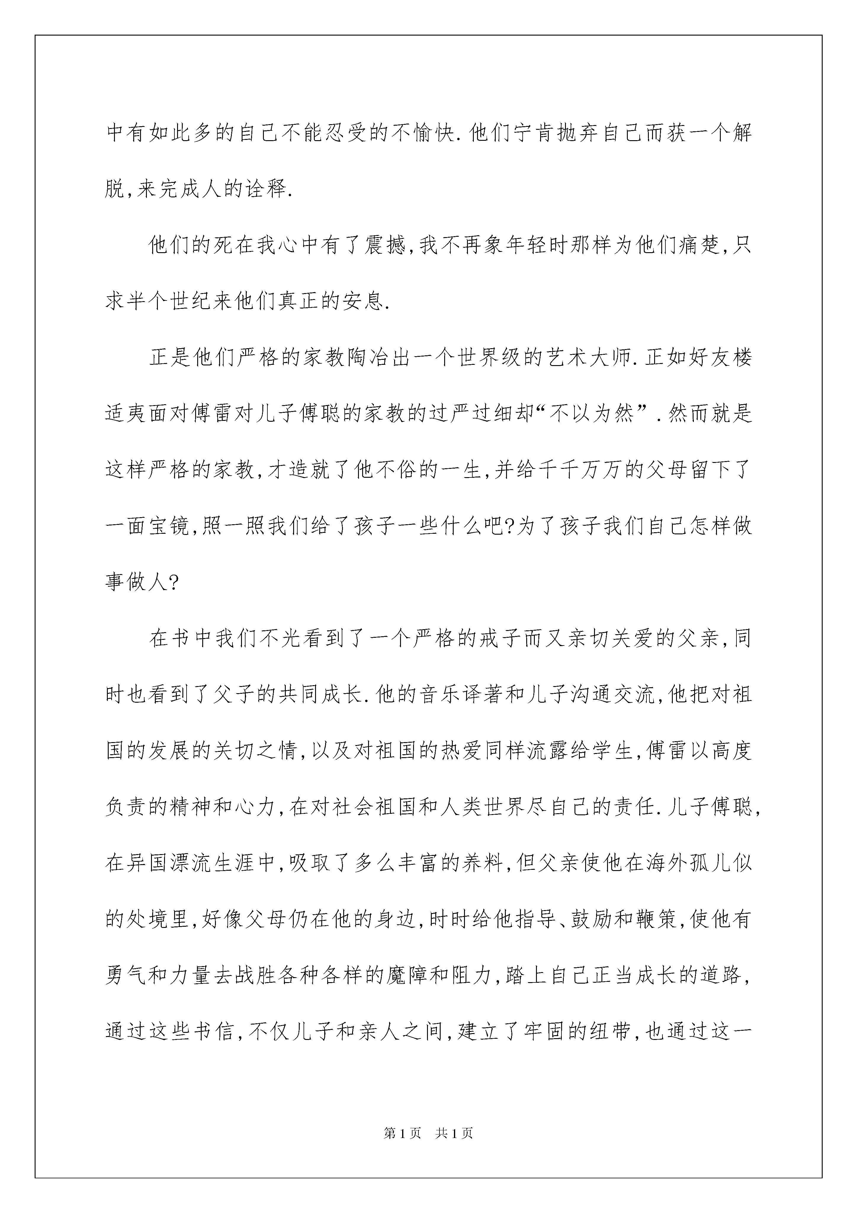 2022傅雷家书读书感悟傅雷家书读书感悟在日常学习、工作和生活中,我们经常会因经验的人和事不同而产生新的感悟,好记性不如烂笔头,还是用文字把这些感想都记录下来吧。不过,是不是不太会写感悟?下面是我细心整理的傅雷家书读书感悟,供大家参考借鉴,希望可以帮助到有须要的挚友。傅雷家书读书感悟1在一座山清水秀、鸟语花香的大园林中,静静地躺着一座挺立的墓碑——