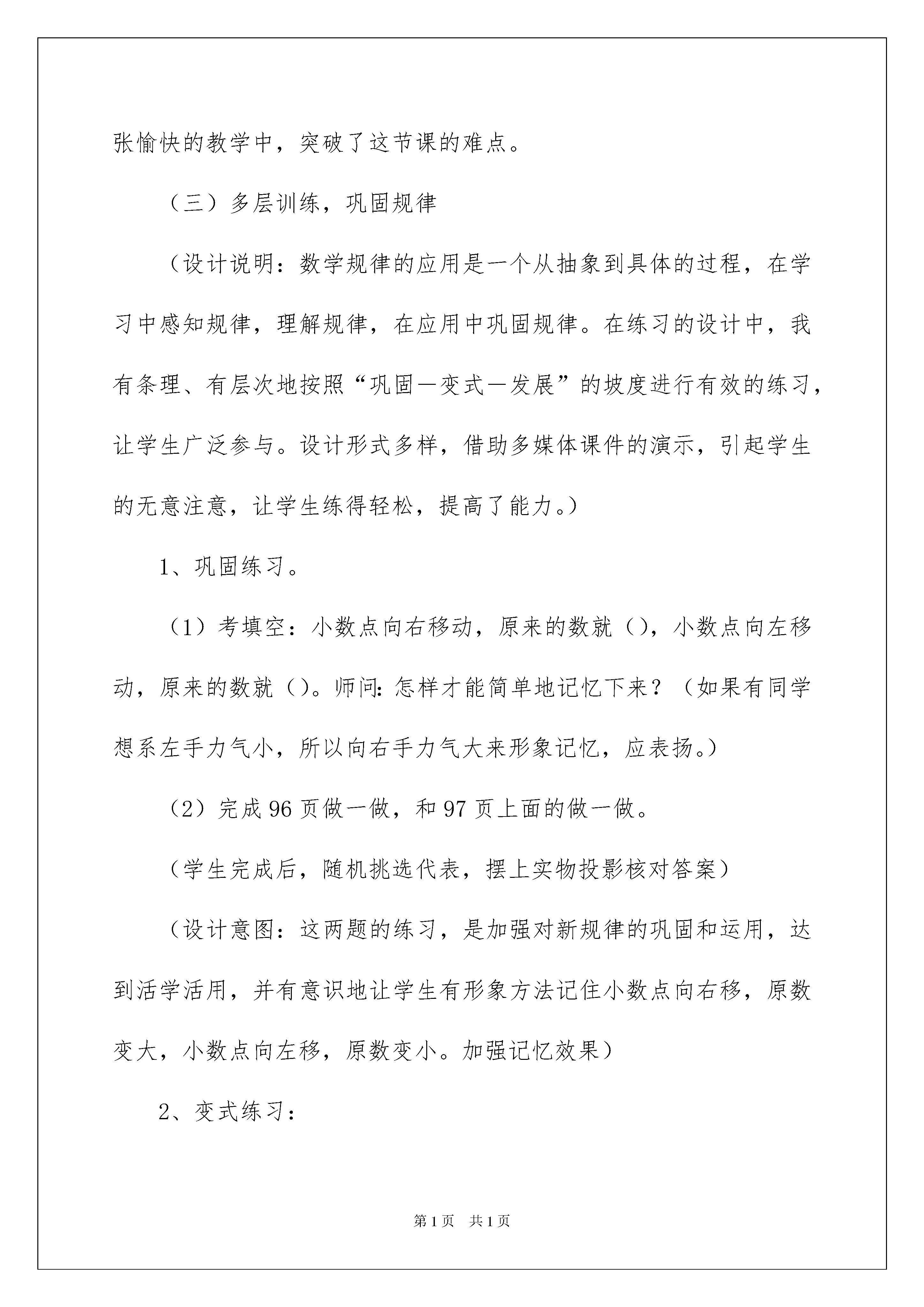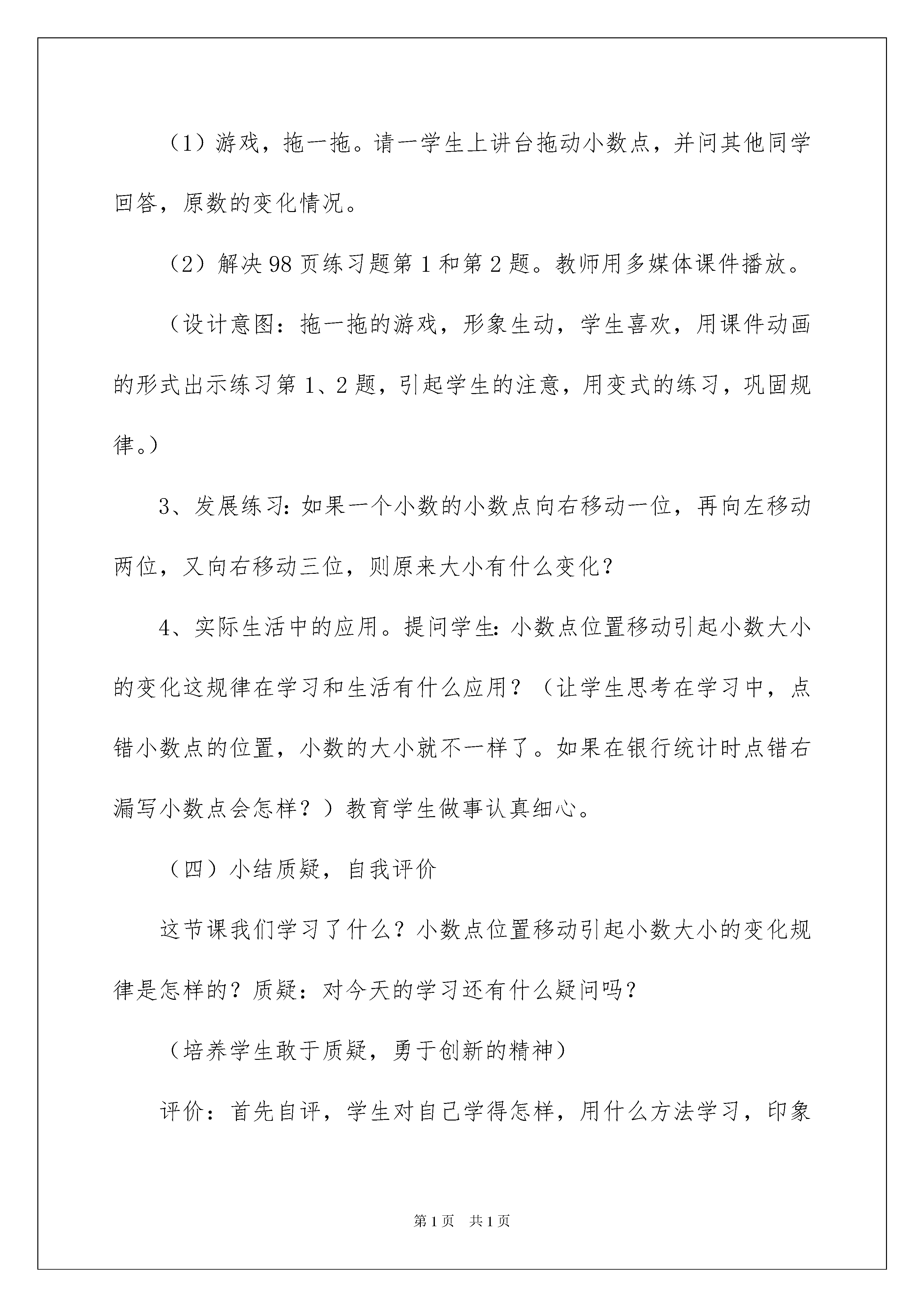2022小数点位置的移动说课稿小数点位置的移动说课稿作为一名教职工经常要依据教学须要编写说课稿说课稿有助于提高老师理论素养和驾驭教材的实力。那么写说课稿须要留意哪些问题呢?下面是我收集整理的小数点位置的移动说课稿供大家参考借鉴