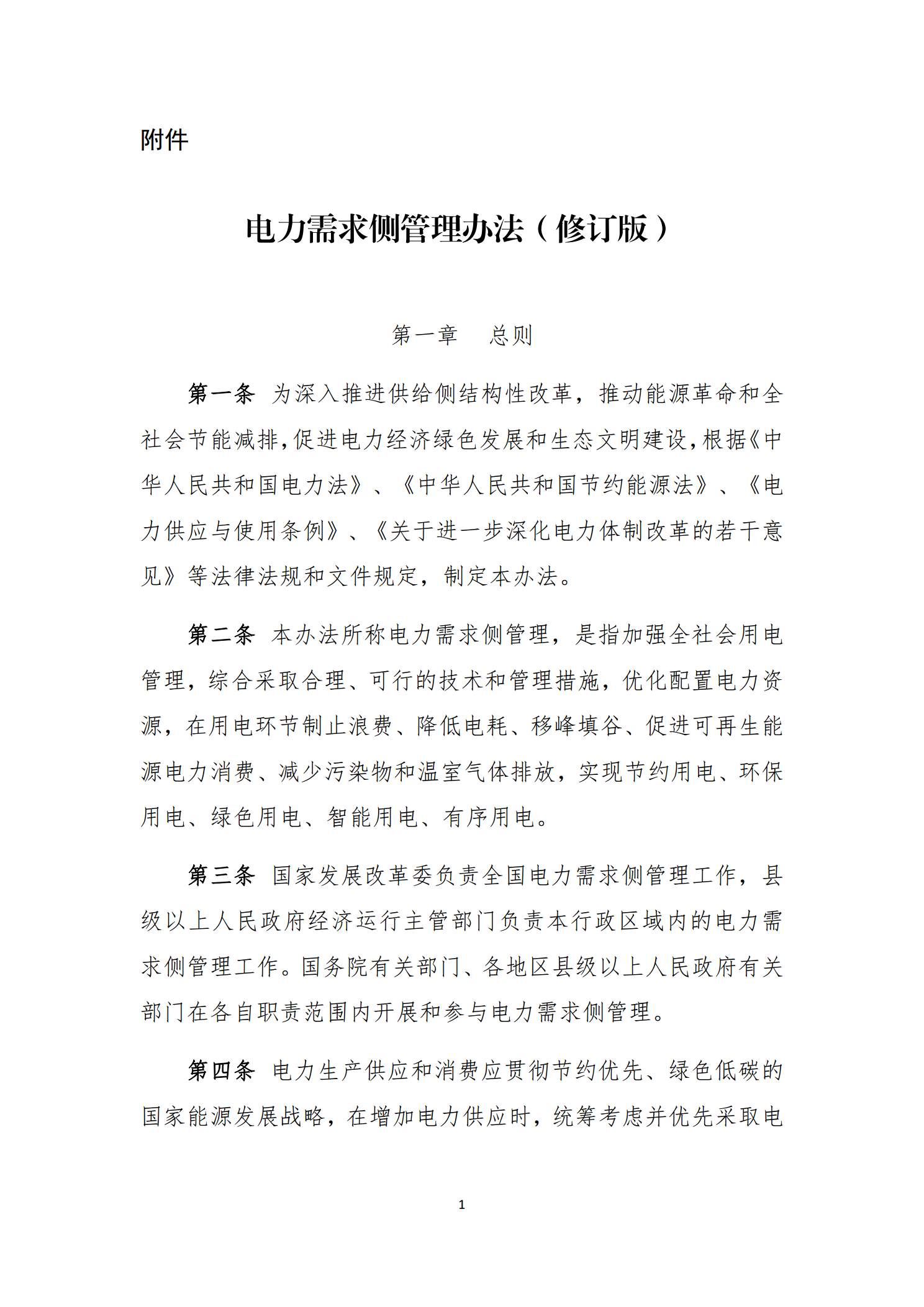 附件电力需求侧管理办法(修订版)第一章总则第一条为深入推进供给侧结构性改革推动能源革命和全社会节能减排促进电力经济绿色发展和生态文明建设根据《中华人民共和国电力法》、《中华人民共和国节约能源法》、《电力供应与使用条例》、《关于进一步深化电力体制改革的若干意见》等法律法规和文件规定制定本办法。第二条本办法所称电力需求侧管理是指加强全社会用电管理综合采取合理、可行的技术和管理措施优化配置电力资源在用电环节制止