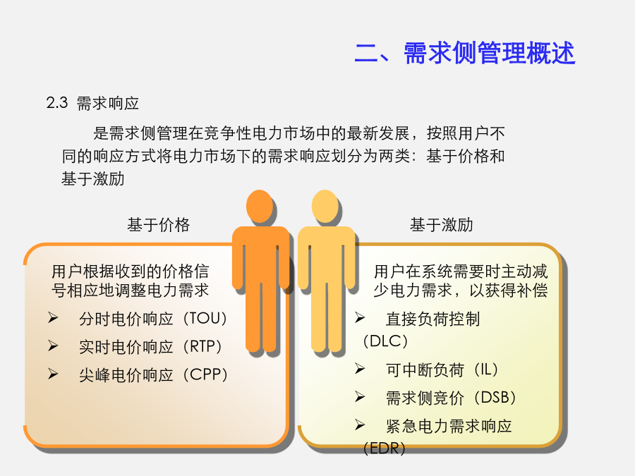 需求侧管理办法的分析与解读1一、汇报来源与过程1提出需求响应,及需求侧竞价技术手段是需求侧管理在竞争性电力市场中的最新发展,按照用户不同的响应方式将电力市场下的需求响应划分为两类:基于价格和基于激励1三、需求侧管理相关规定回顾与分析三、需求侧管理相关规定回顾与分析三、需求侧管理相关规定回顾与分析三、需求侧管理相关规定回顾与分析三、需求侧管理相关规定回顾与分析三、需求侧管理相关规定回顾与分析1四、合同能源管理与节能服务公司分析四、合同能源管理与节能服务公司分析四、合同能源管理与节能服务公司分析四、合同能源管