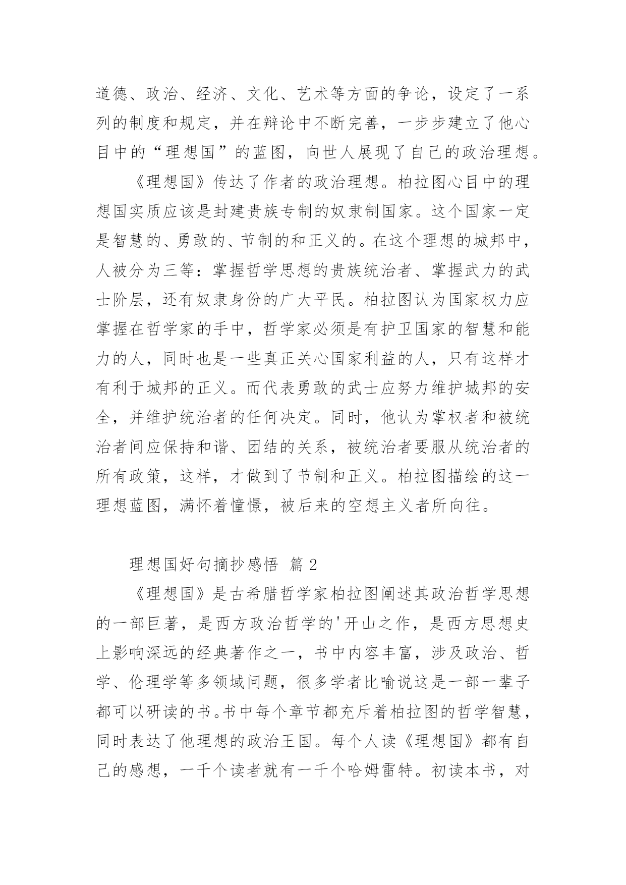 理想国读书笔记摘抄及感悟理想国读书笔记摘抄及感悟看完一本名著后,大家对人生或者事物一定产生了许多感想,现在就让我们写一篇走心的读书笔记吧。那么我们如何去写读书笔记呢?以下是小编收集整理的理想国读书笔记摘抄及感悟(通用6篇),欢迎大家借鉴与参考,希望对大家有所帮助。理想国读书笔记摘抄及感悟1好句摘抄:1、如果你真想知道正义是什么,你就不应该只是提出问题,还要对别人的问题进行解答,而且,你不能仅仅靠驳倒他们而邀功请赏,你需要有自己的见解,因为有些人只能提出问题而没有回答问题的能力。P132、别人问你的问题,你