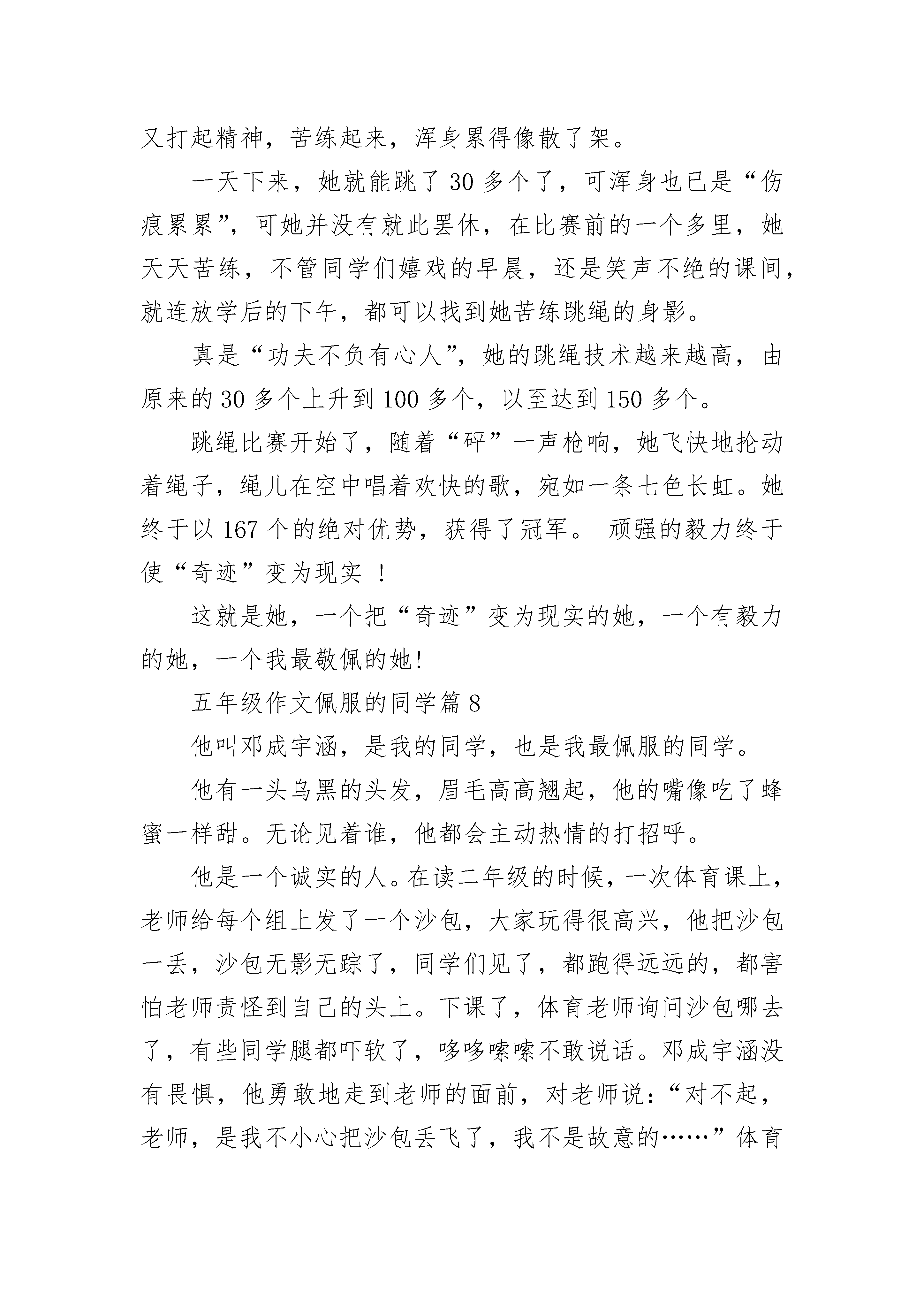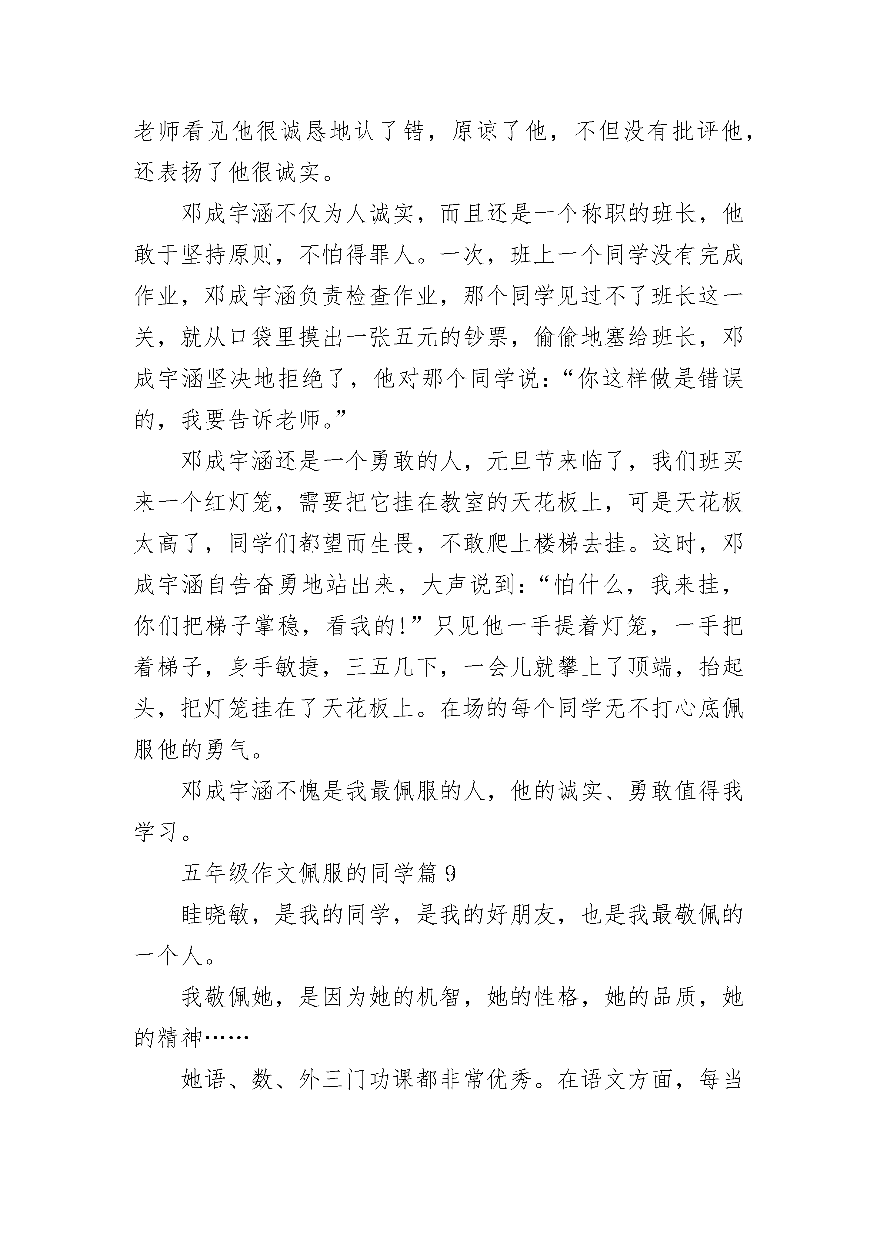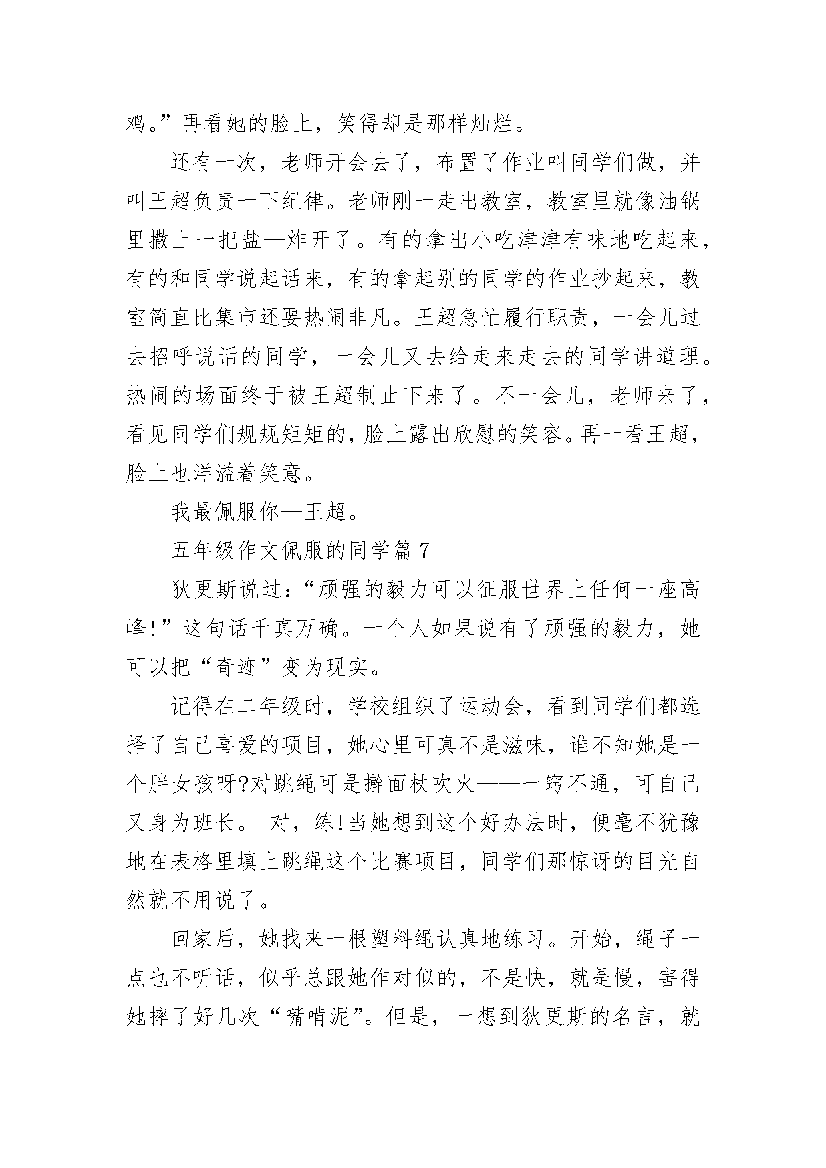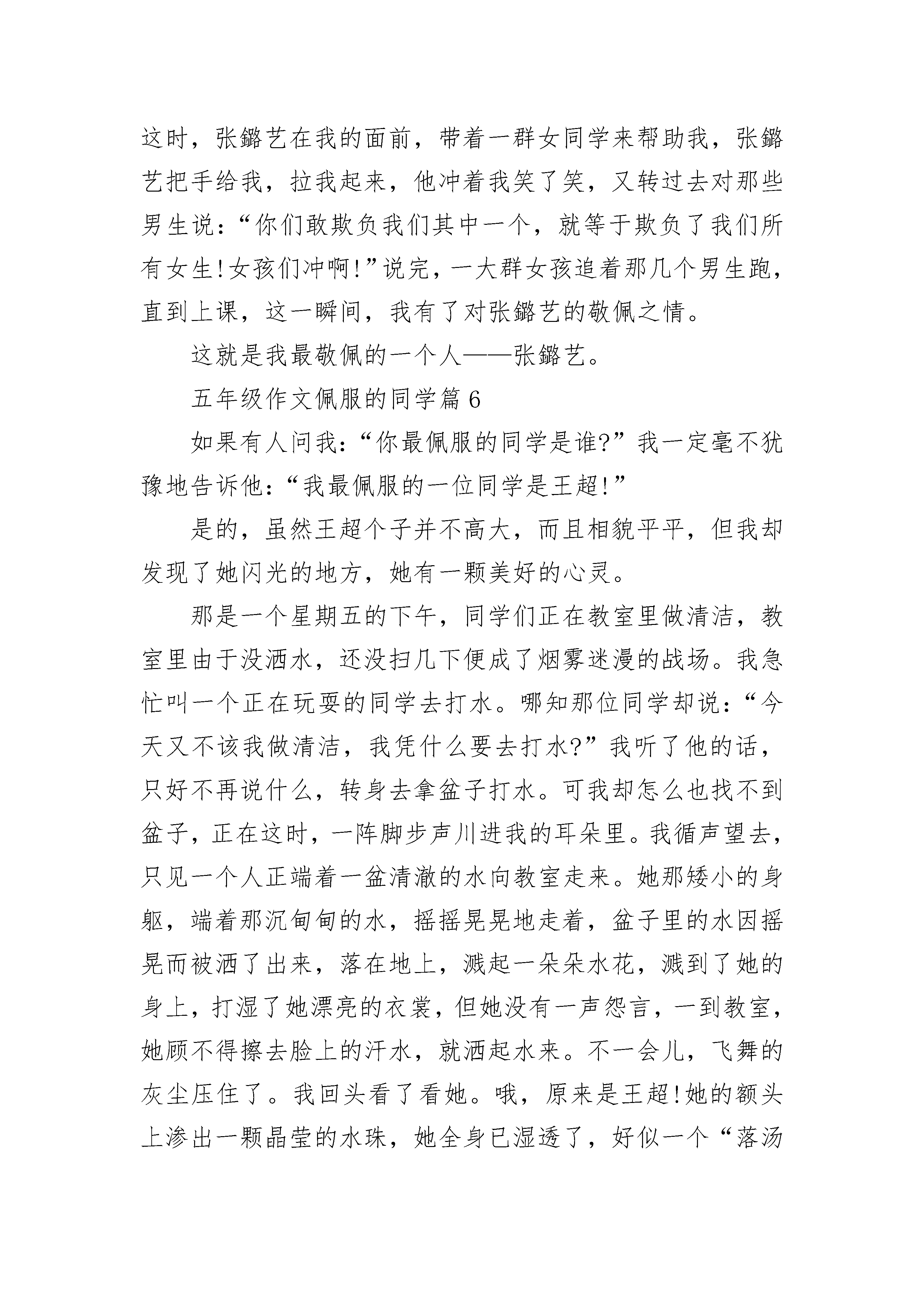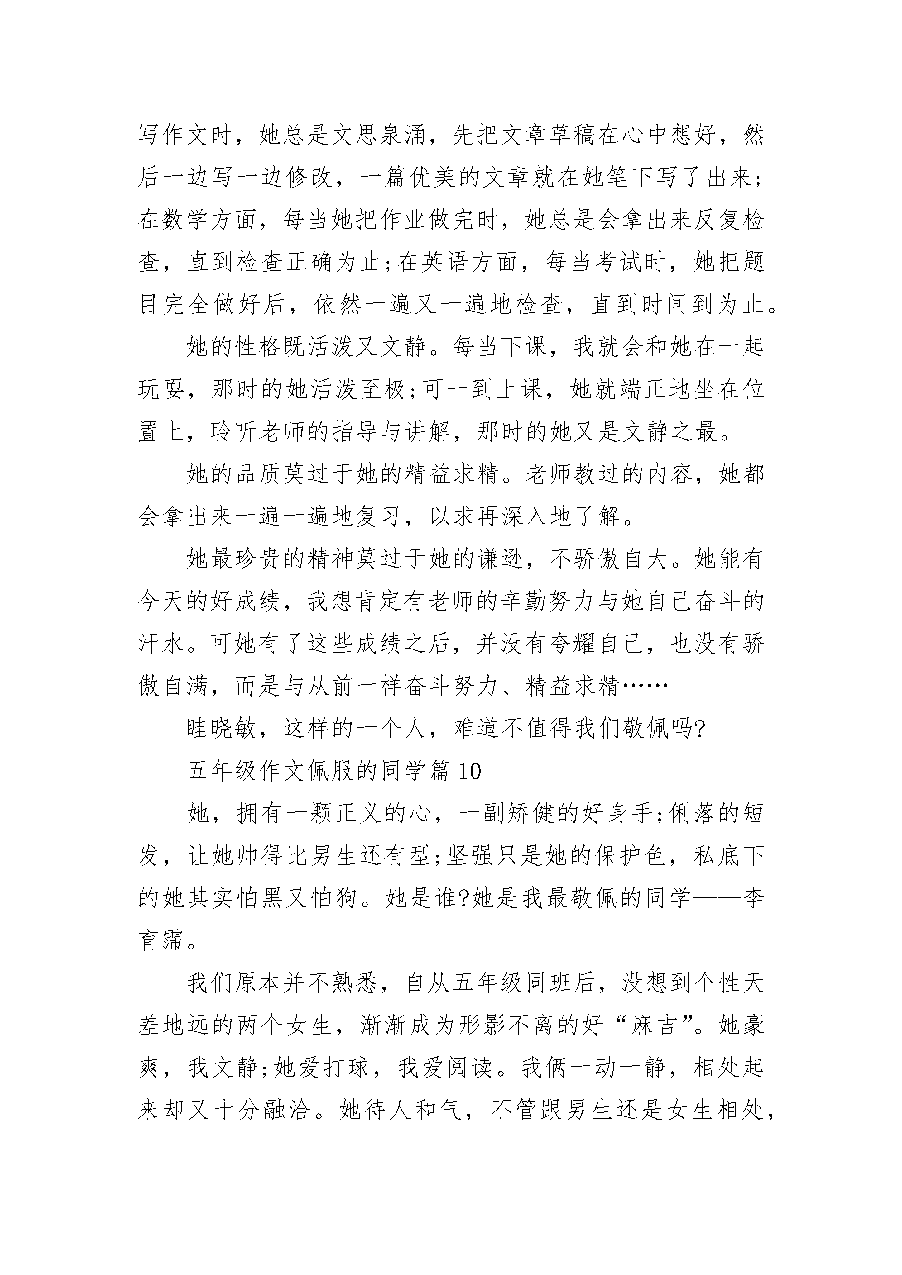 五年级作文佩服的同学(精选10篇).docx
