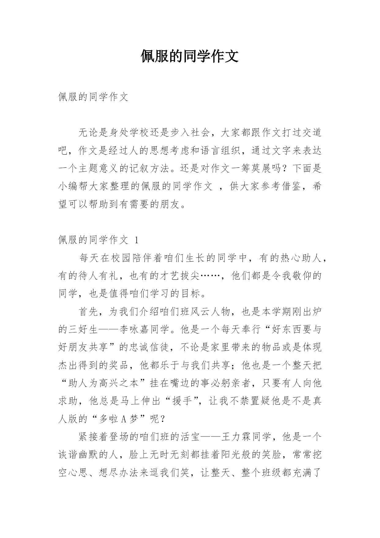佩服的同学作文佩服的同学作文无论是身处学校还是步入社会,大家都跟作文打过交道吧,作文是经过人的思想考虑和语言组织,通过文字来表达一个主题意义的记叙方法。还是对作文一筹莫展吗?下面是小编帮大家整理的佩服的同学作文,供大家参考借鉴,希望可以帮助到有需要的朋友。佩服的同学作文1每天在校园陪伴着咱们生长的同学中,有的热心助人,有的待人有礼,也有的才艺拔尖……,他们都是令我敬仰的同学,也是值得咱们学习的目标。首先,为我们介绍咱们班风云人物,也是本学期刚出炉的三好生——李咏嘉同学。他是一个每天奉行“好东西要与好朋友共
