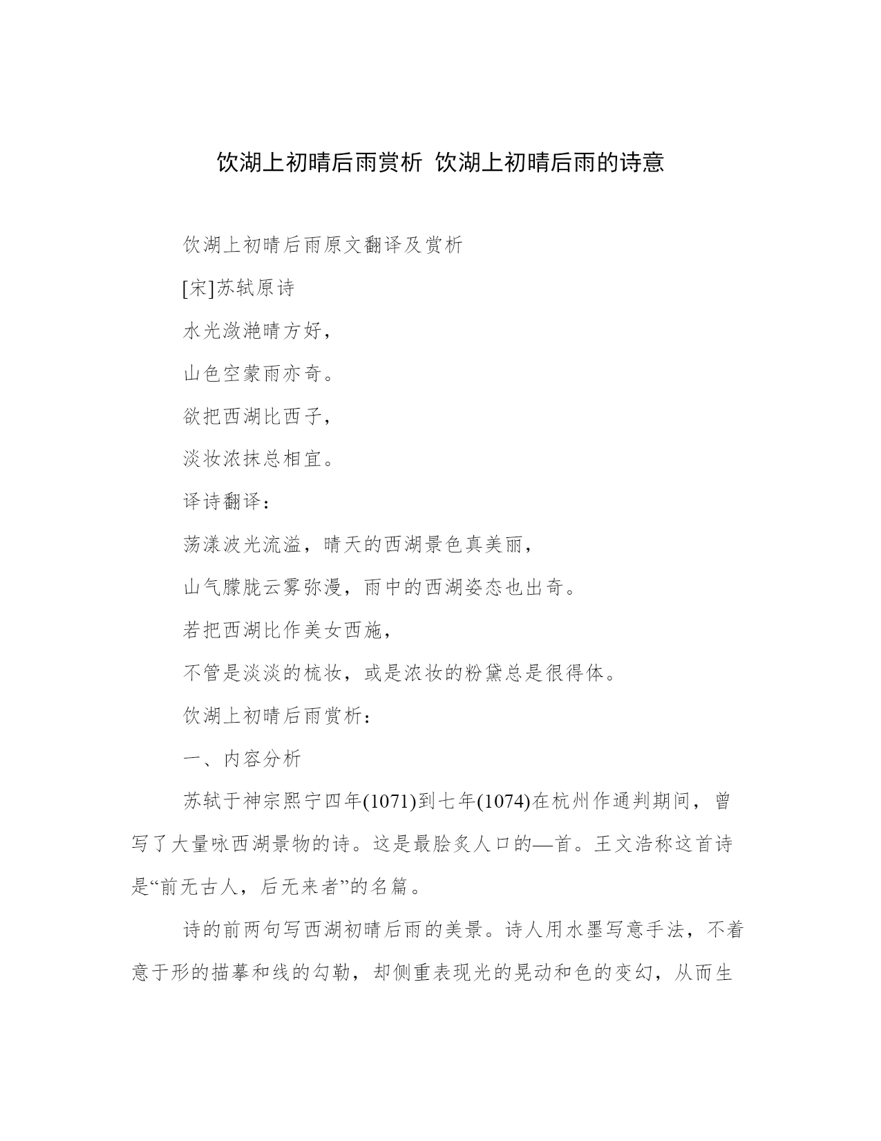 饮湖上初晴后雨 苏轼-饮湖上初晴后雨的诗意.docx