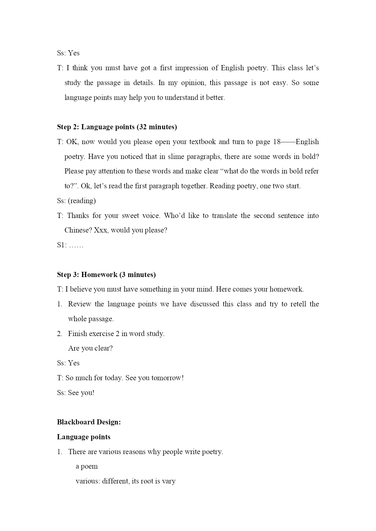 Unit2PoemsPeriod3——Reading(Languagepoints)Teacher:HuangLikuiTeachingmaterial:NSEFCBook6——Unit2Lessontype:readingTeachingaids:ataperecorderaprojectorslidesTeachingObjectives:Tolearnsomenewwordsandphrases.Tomasterthemainideaofeachparagraph.Tolearnsomecompli