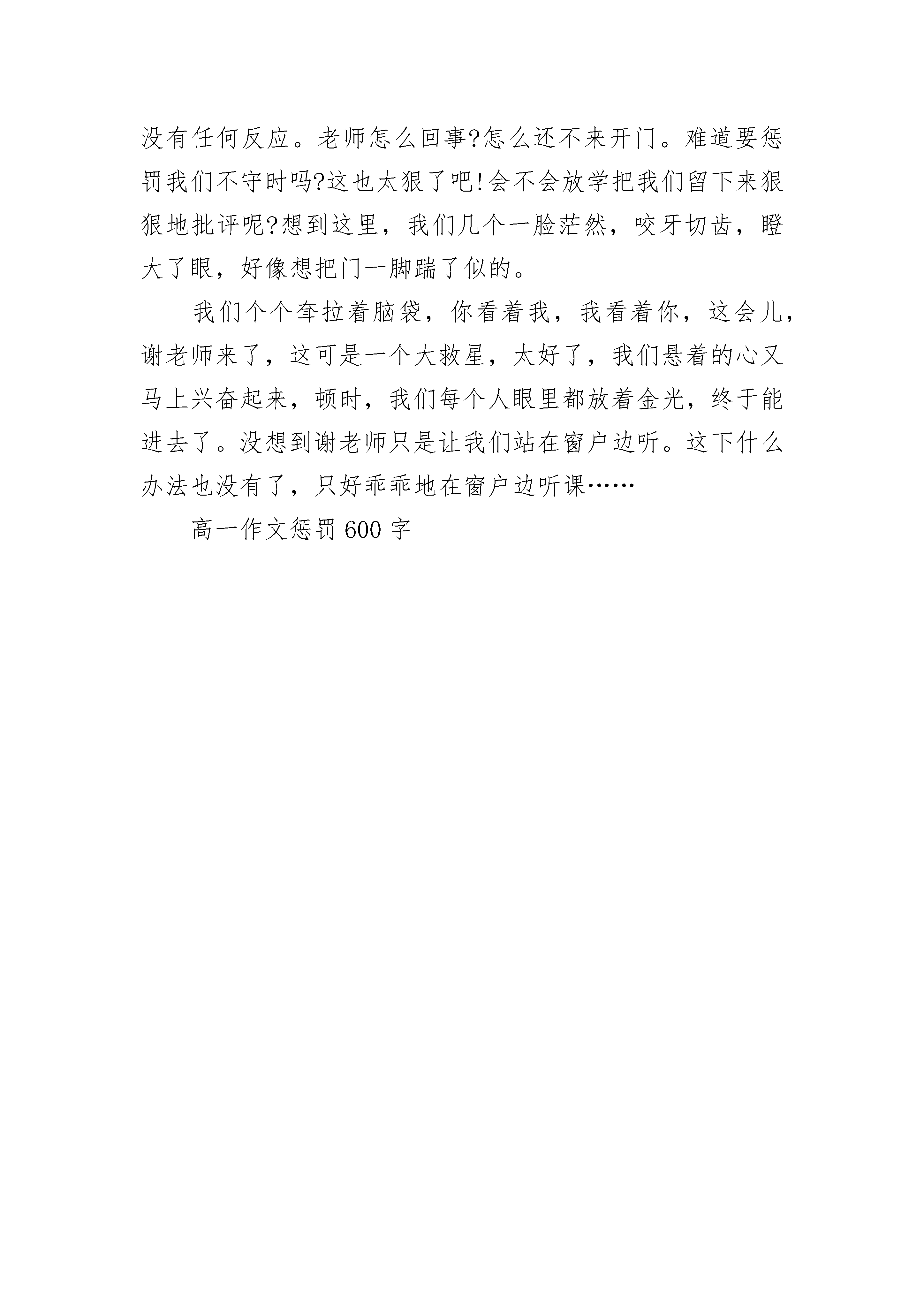 高一作文惩罚600字5篇高一作文惩罚600字1今天值日后又累又渴,惦记着我的游戏,放学后马不停蹄的跑回家。回到家后随手把书包往沙发上一扔,就拖着疲惫的身子玩电脑去了。跑到电脑面前启动电脑,电脑显示屏却是显示输入密码的界面,界面上还有一句话,写着“玩电脑损害身体”我一头雾水,记得自己并没有设置密码,为什么会有密码界面。我抱着试探的心里输入123456,结果电脑居然打开了。我迫不及待的打开穿越火线这款游戏,点击好多次都没有打开。正想着这是怎么回事,突然,电脑上出现了一张嘴,把我下了一跳。我颤着声音问道:“