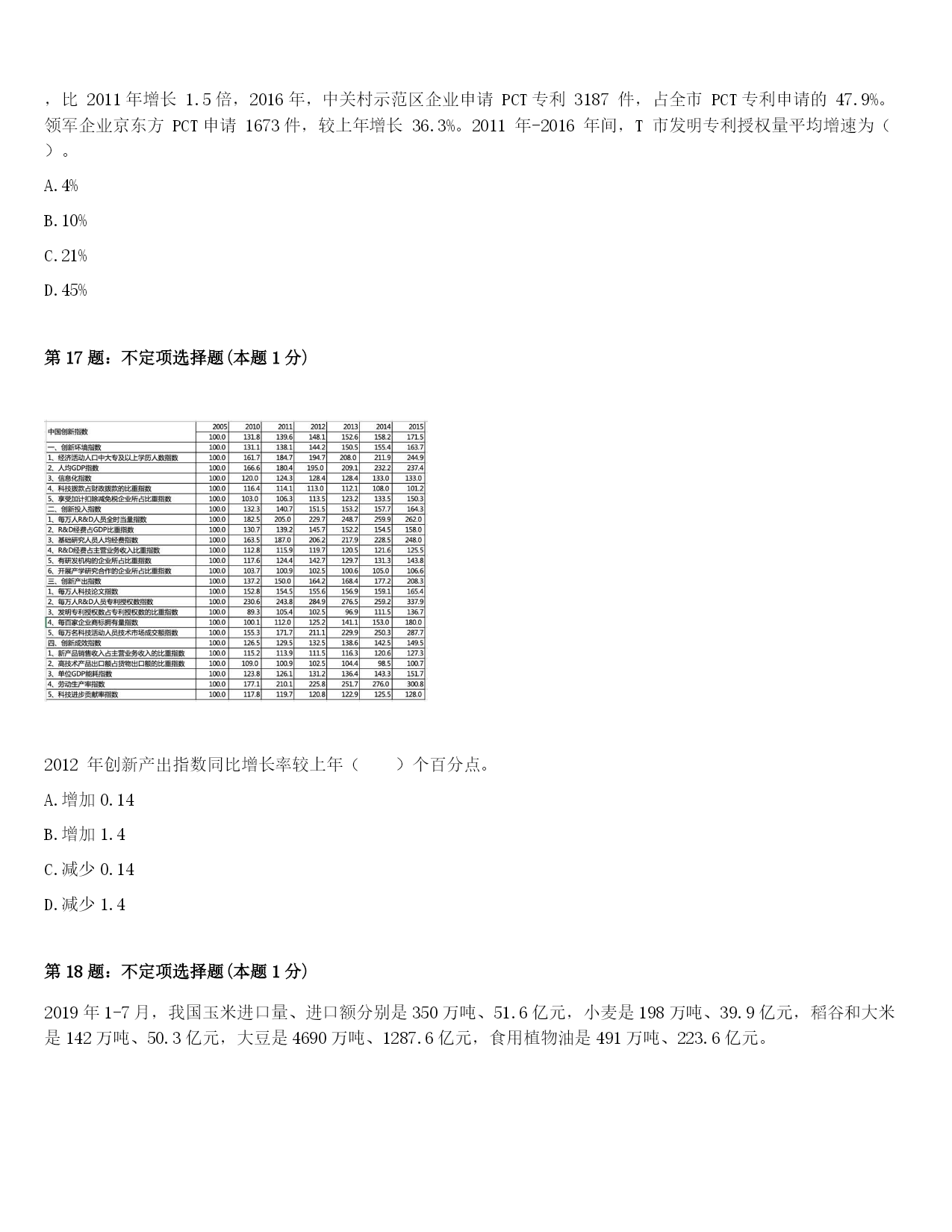 2024年贵州省黔东南南苗族侗族自治州黄平县事业单位《综合基础知识》点睛提分卷含解析第1题:不定项选择题(本题1分)统计表:根据下面的统计表,回答它后面的题目。请开始答题:根据上表,下列说法不正确的是()。A.2016年下半年,该地区当月完成社会消费品零售总额最多的月份是10月B.2017年三季度,该地区当月完成社会消费品零售总额环比增幅最大的月份是7月C.2016-2018年,该地区当年完成社会消费品零售总额同比增速呈放缓趋势D.若2019年该地区社会消费品零售总额达822.2亿元,则其可继续保持2位数