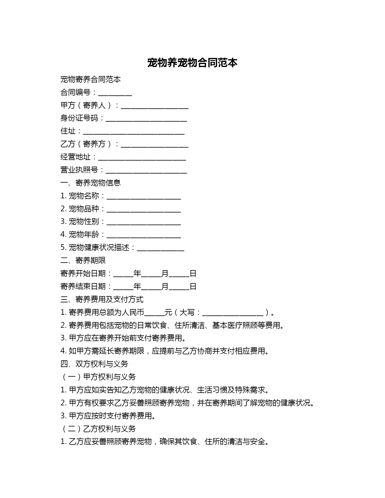 养宠物合同范本.doc