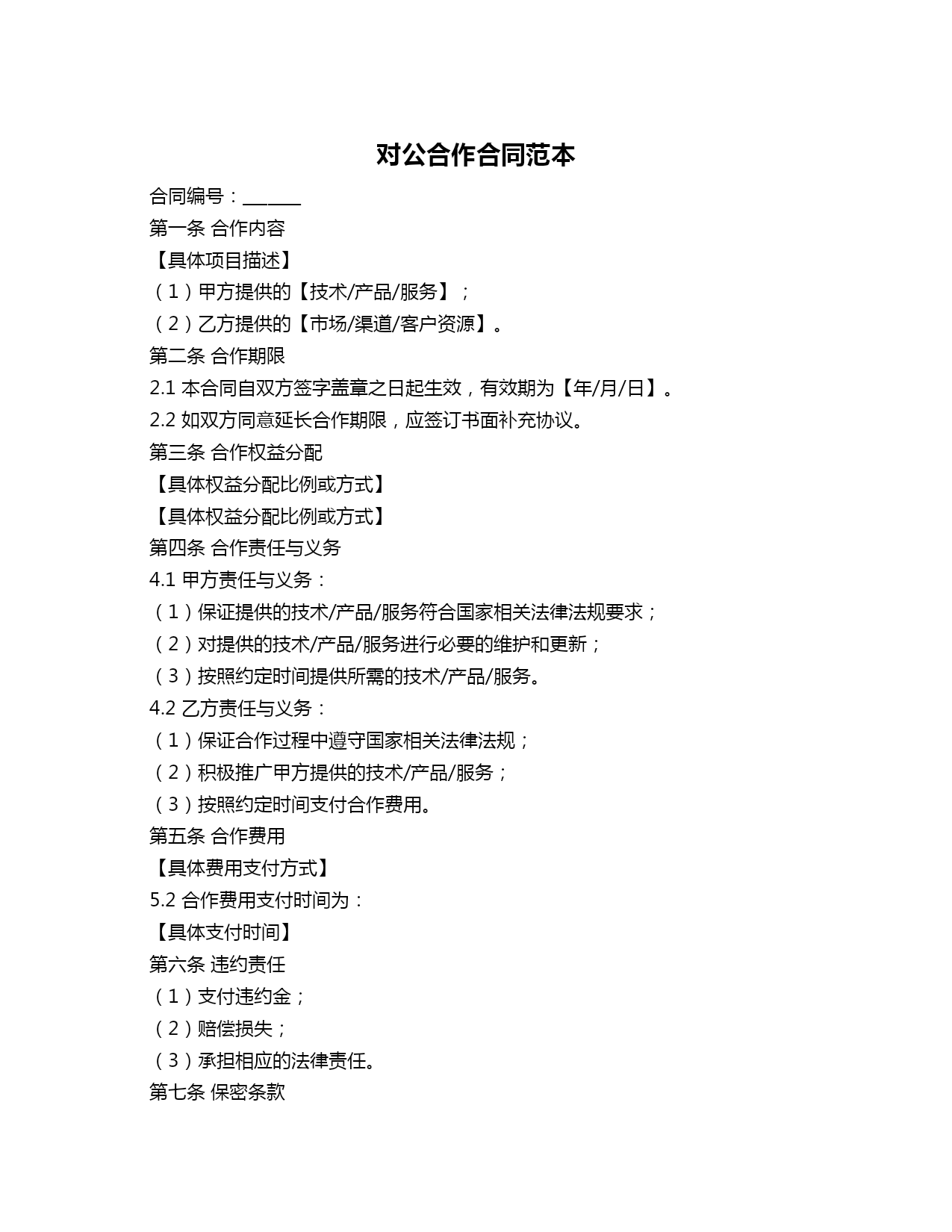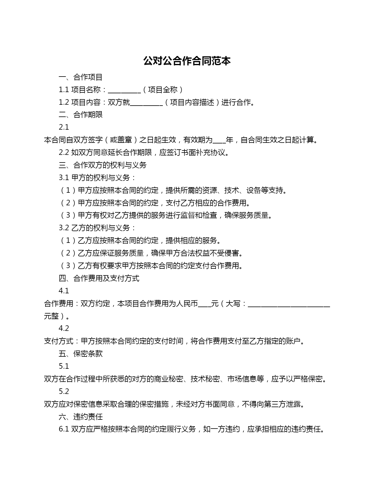 对公合作合同范本.doc