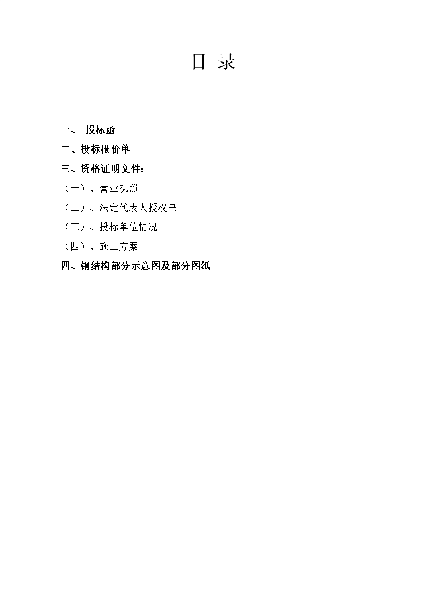 -47-目录一、投标函二、投标报价单三、资格证明文件:(一)、营业执照(二)、法定代表人授权书(三)、投标单位情况(四)、施工方案四、钢结构部分示意图及部分图纸一、投标函致驻马店农村商业银行股份有限公司:驻马店金螳螂装饰工程有限公司授权娄鹏为全权代表参加贵方组织的驻马店农村商业银行股份有限公司--橡林支行楼顶招牌发光字体拆除及安装项目招标的有关活动并对驻马店农村商业银行股份有限公司--橡林支行楼顶招牌发光字体拆除及安装项目。为此:1、提供投标书正本1份副本4份;2、投标项目的总投标价为