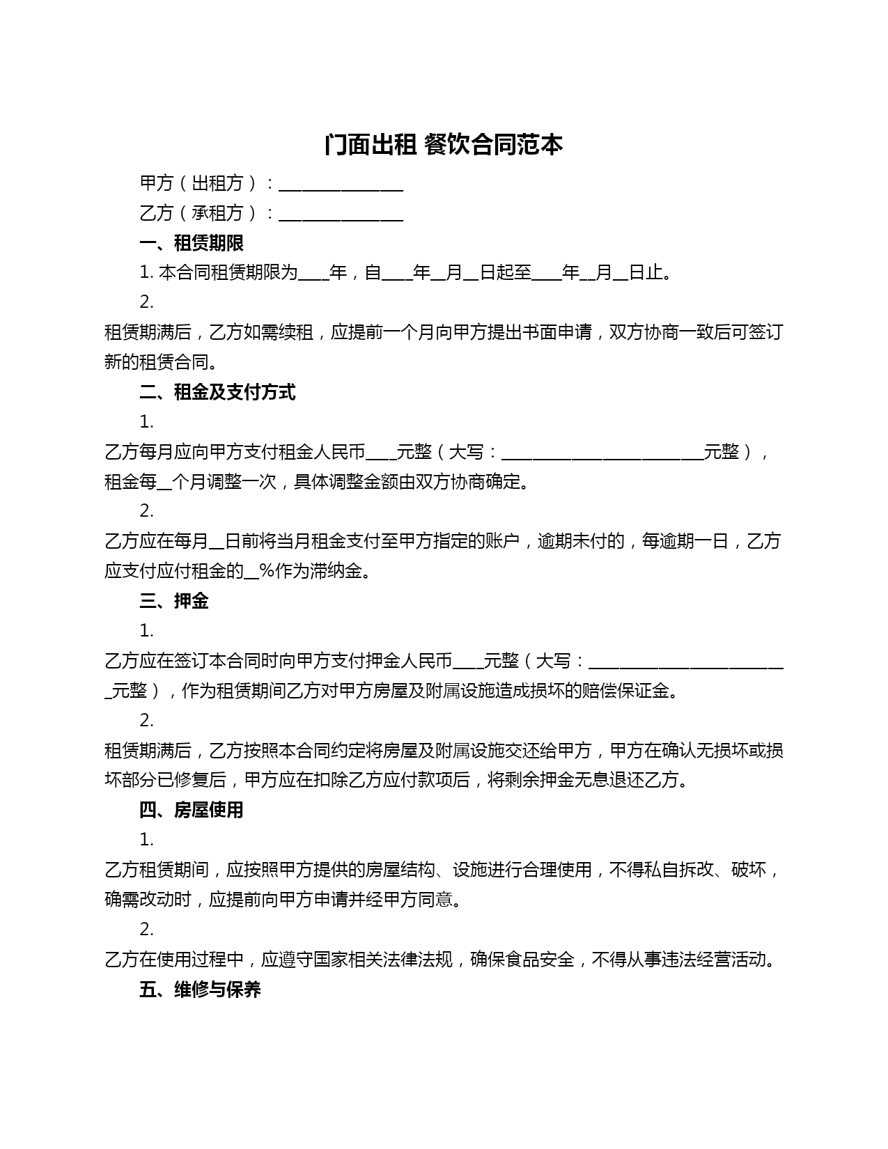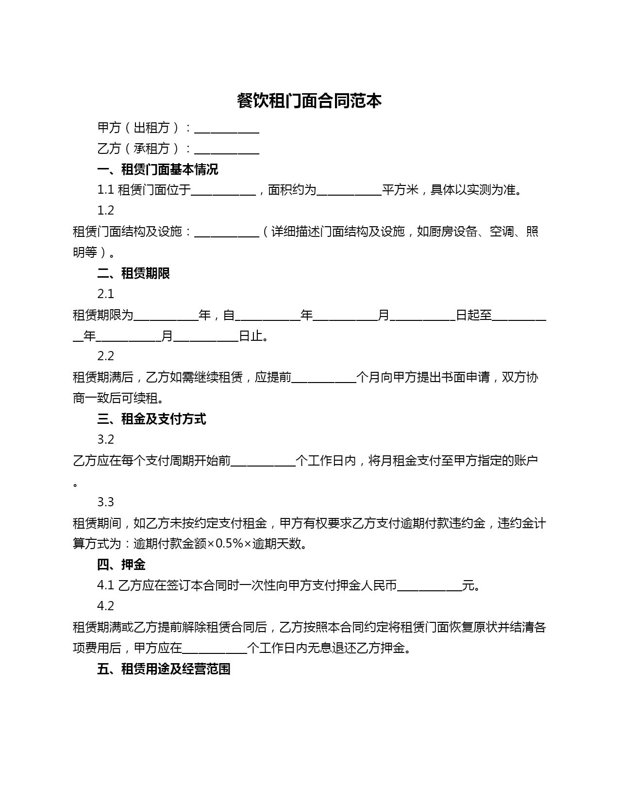 门面出租 餐饮合同范本.doc