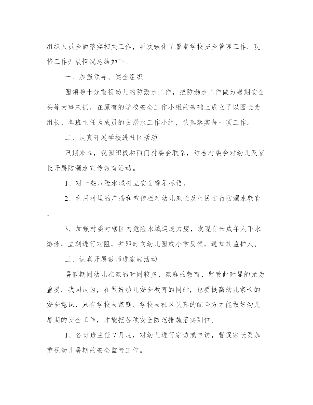 学校防溺水安全工作汇报学校防溺水安全工作方案以构建和谐校园,以人为本、关注生命的教育方针,坚持对人民对学生对社会高度负责的原则,那么下边就是小编收集的一些学校防溺水安全工作汇报学校防溺水安全工作方案相关内容,一起来看看吧!学校防溺水安全工作汇报1为认真贯彻落实市局教育局关于加强我县中小学生防溺水安全教育的通知精神,切实做好学生防溺水工作,保障学生生命安全,我校认真组织开展学生防溺水安全教育活动,现把活动开展情况总结如下:一、领导重视,组织到位为进一步做好安全教育工作,成立防溺水安全工作领导小组,在例会上对